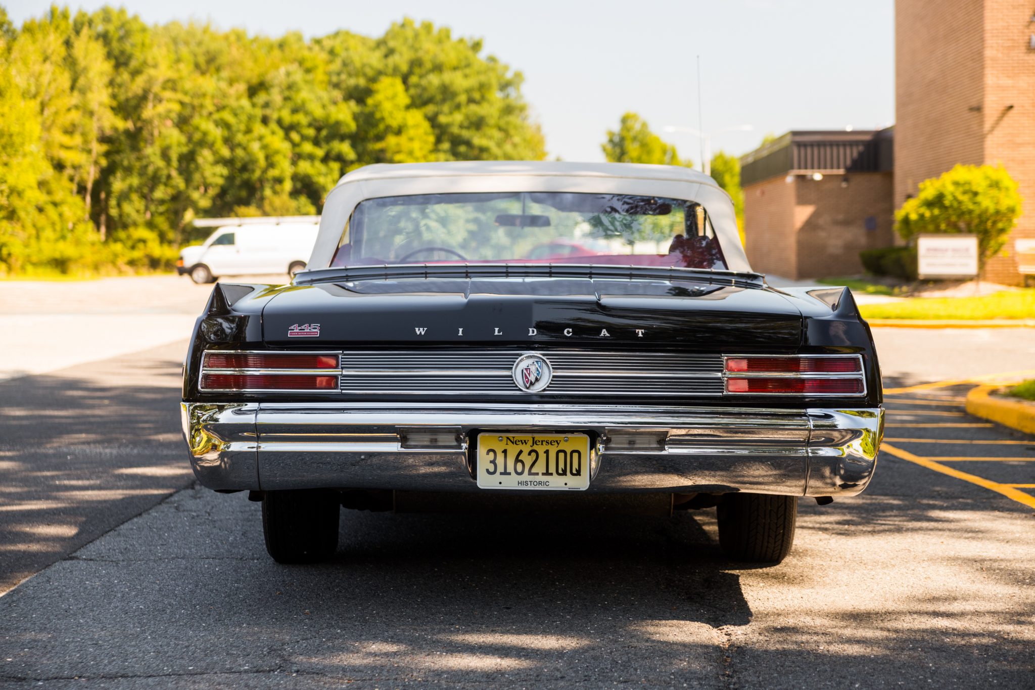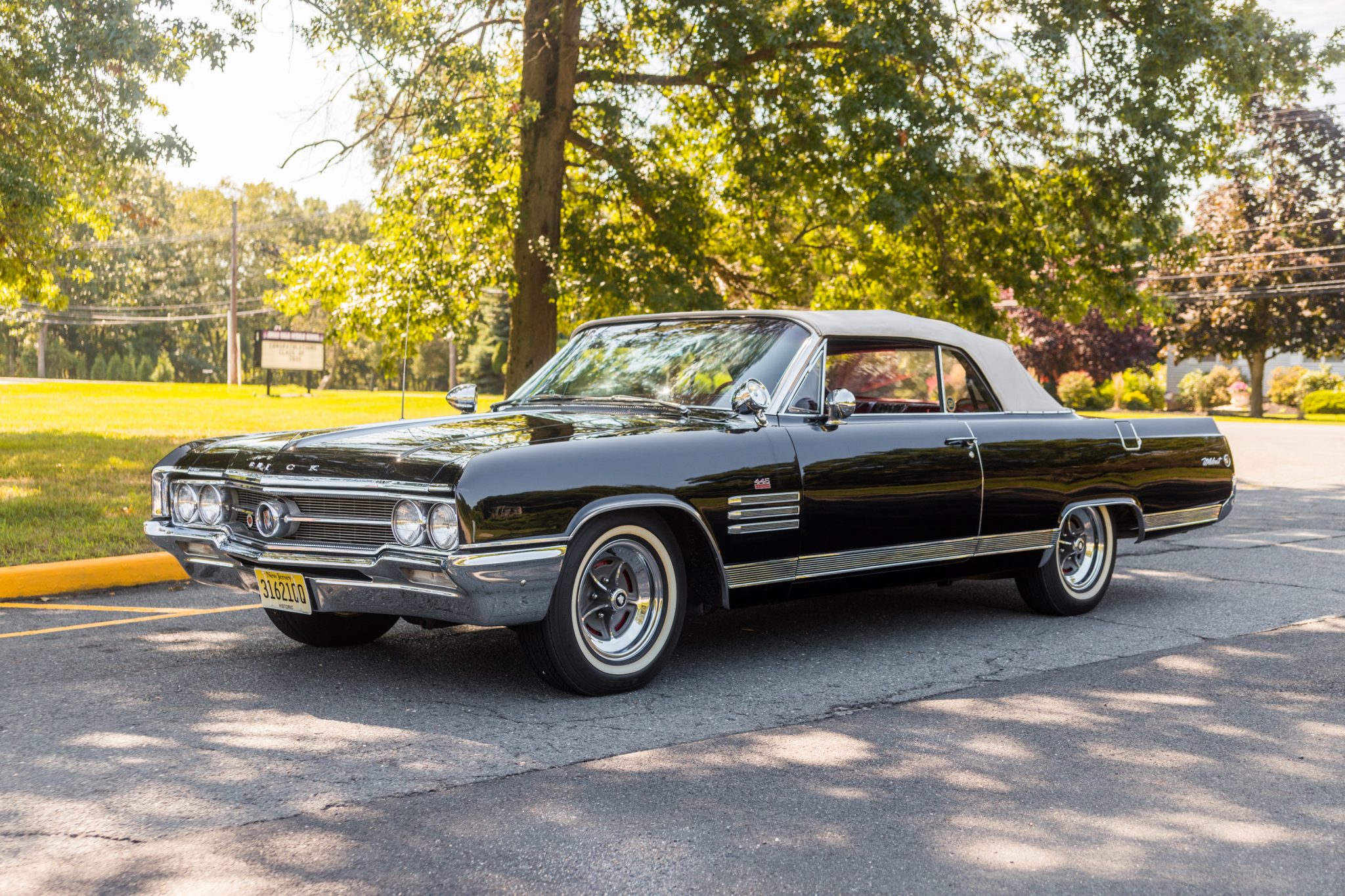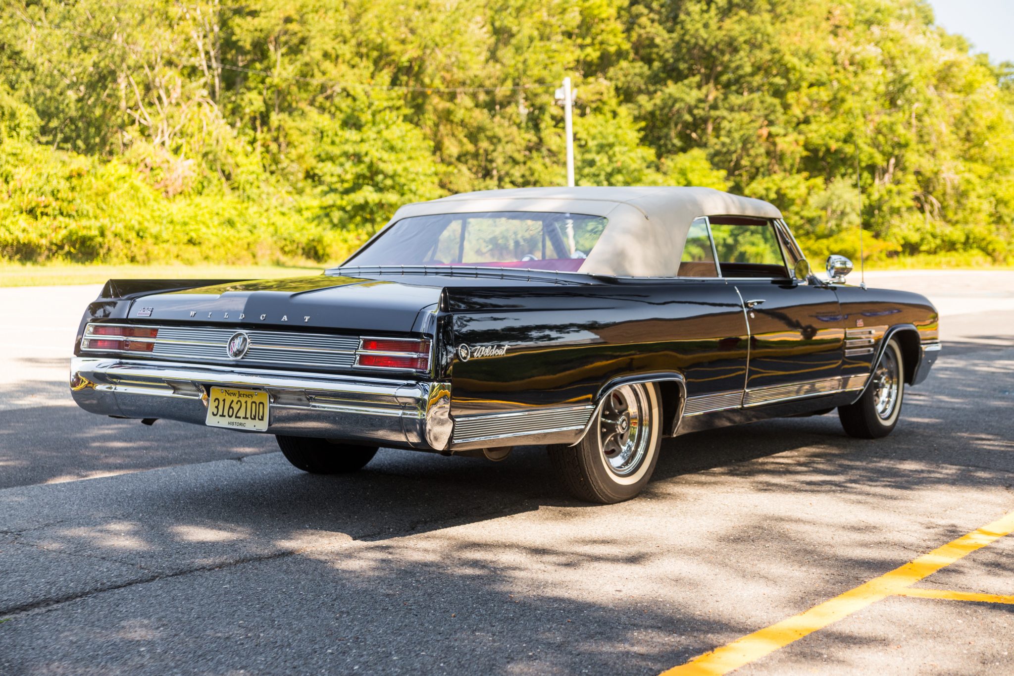 15″ Buick Rallye wheels with Wildcat center logos are wrapped in 225/75 USA Classic radial whitewall tires. Red-painted drum brakes were reportedly refurbished within the past two years.