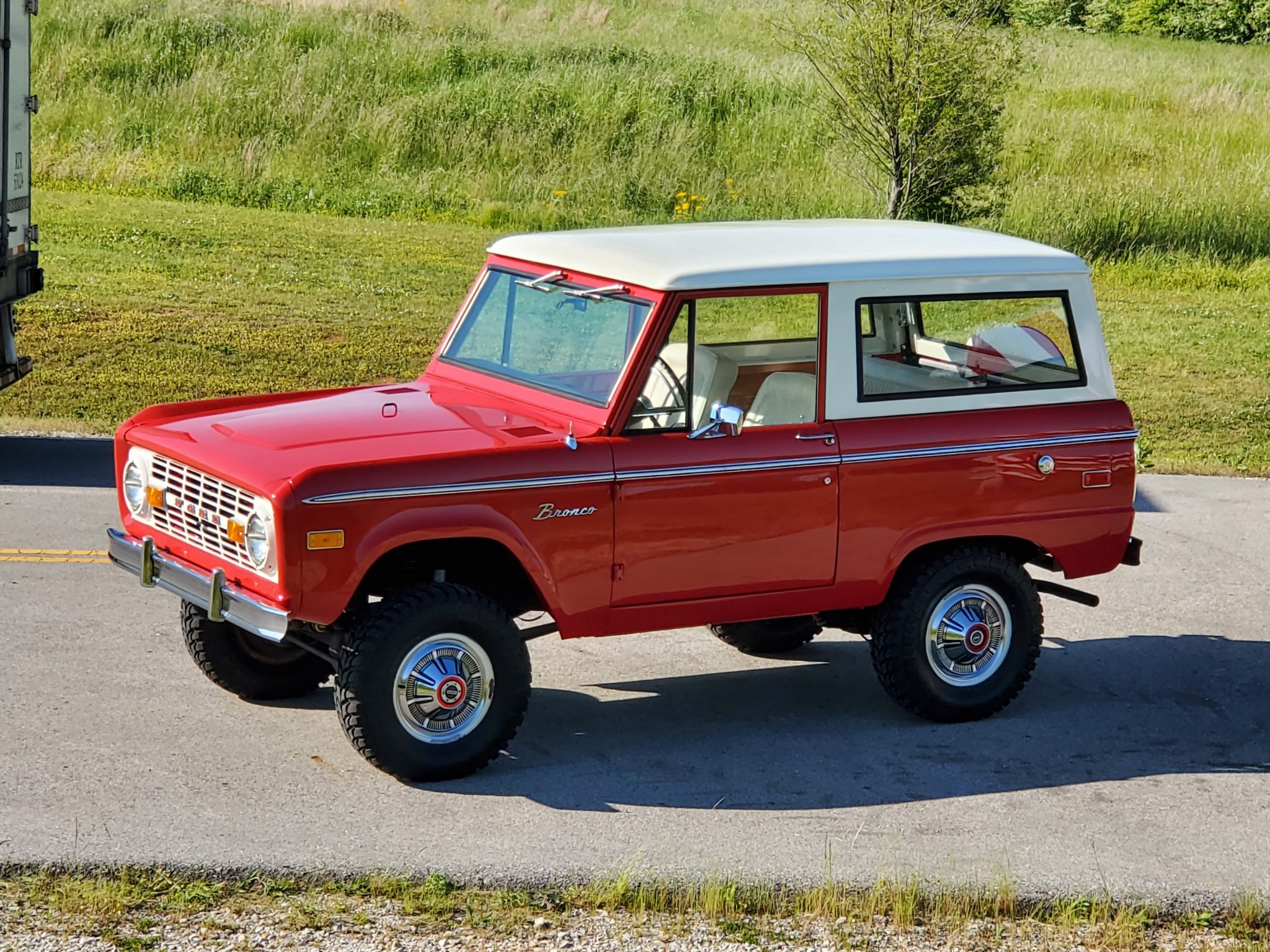 The truck features a Tom’s Broncos 2″ suspension lift with TBP NitroX shocks, and the 15″ wheels were fitted with new 30×9.50″ Crosswind M/T tires by the seller. Additional work is said to have included new brake componentry in addition to a wheel alignment. A spare tire is mounted to a swing-away carrier at the rear.