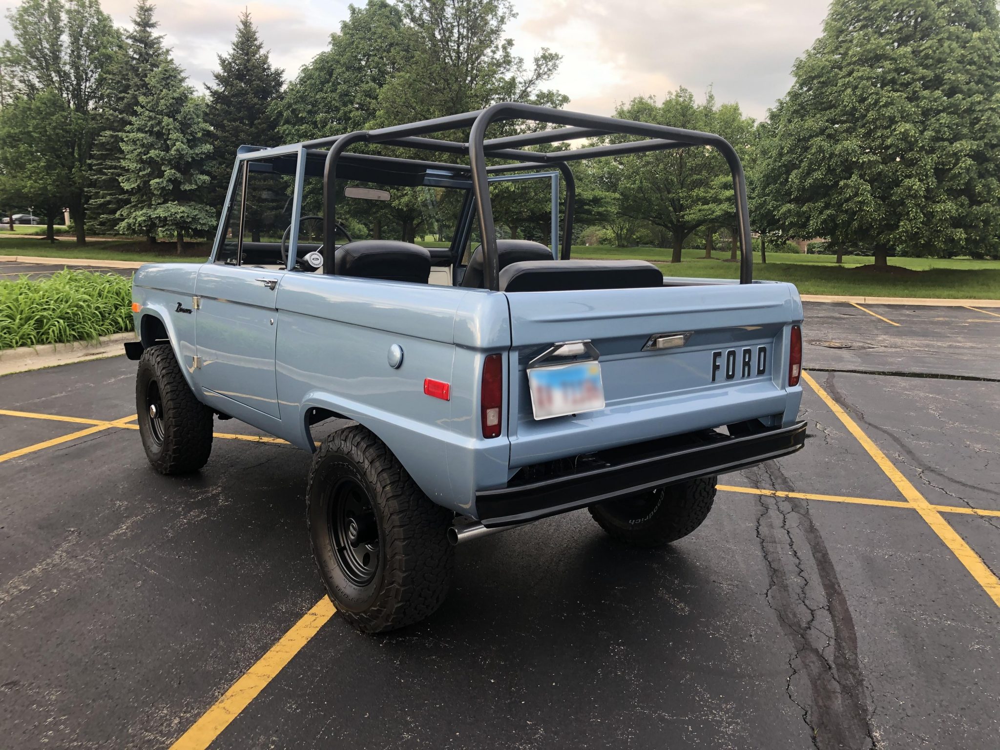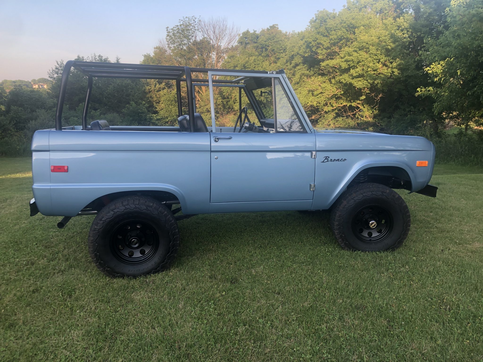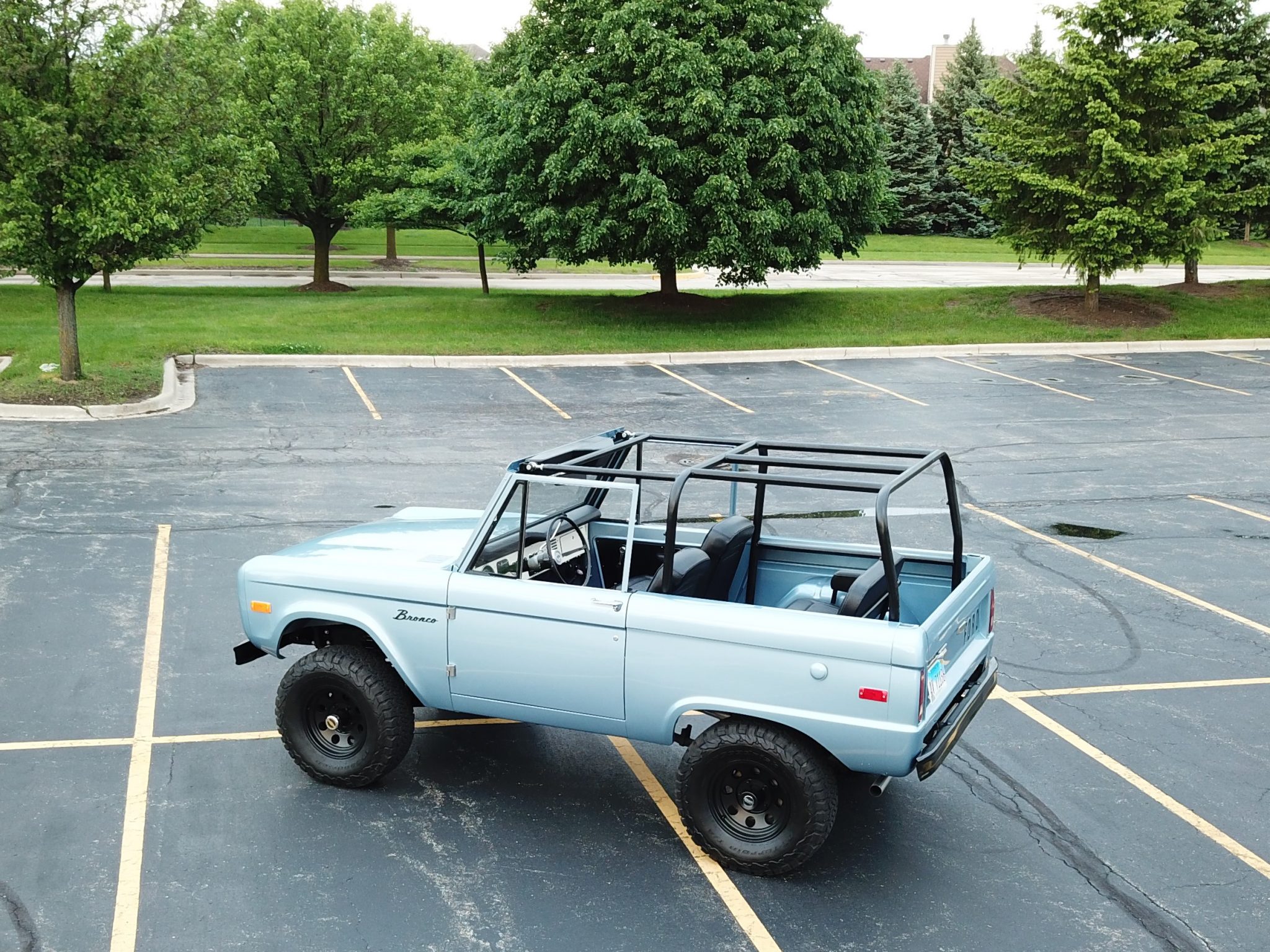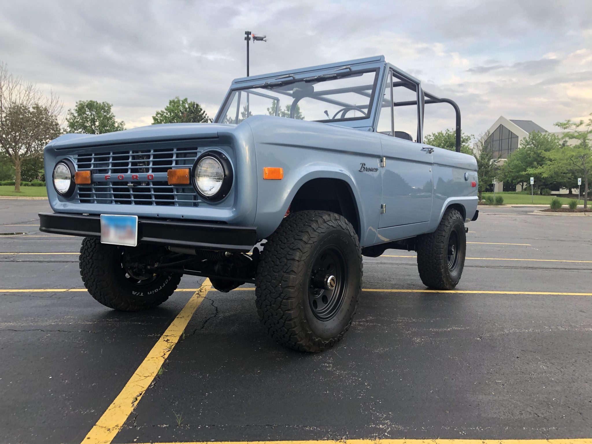 Black 15″ American Racing Baja wheels are wrapped in 31″ BFGoodrich All-Terrain T/A KO2 tires with 2011 date codes. Braking is handled by power-assisted discs at each corner, and the truck is equipped with a 2.5″ lift kit featuring Rancho adjustable shocks. A Borgeson steering box and power steering pump have reportedly been fitted in addition to replacement ball joints and suspension bushings.