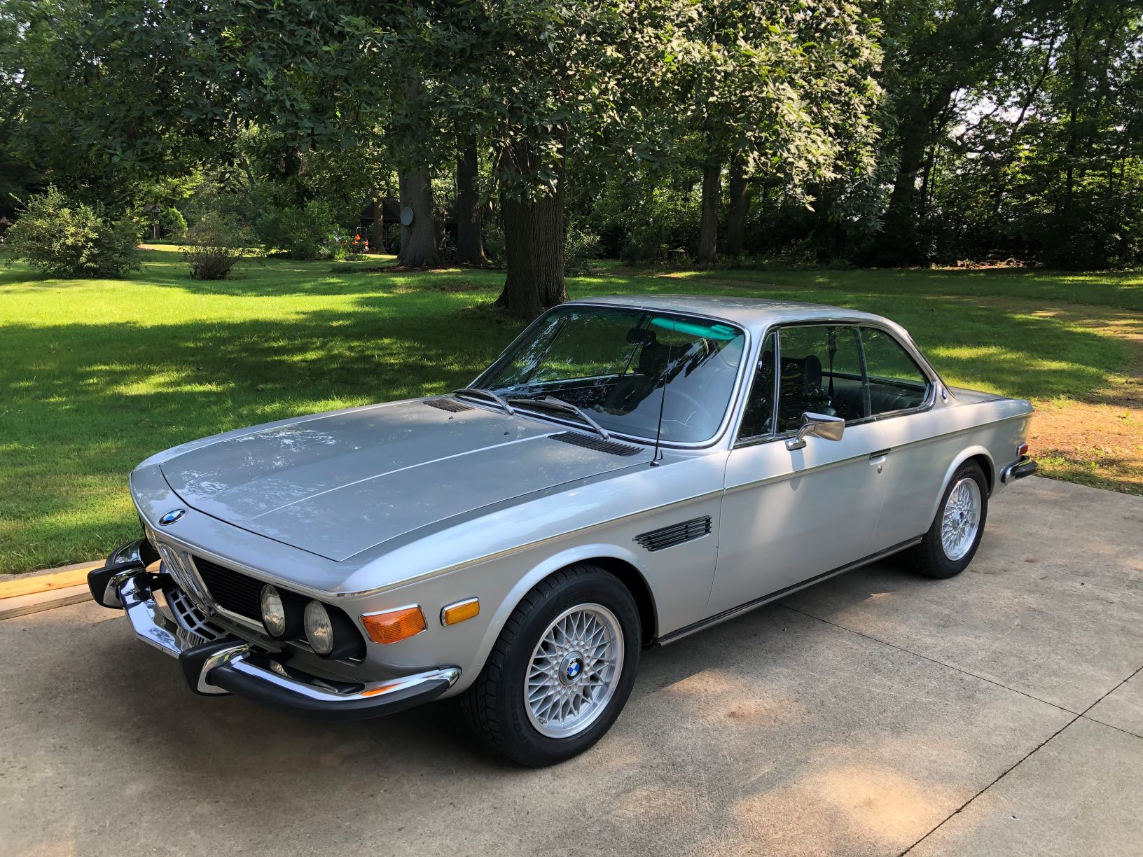 BBS 15” basketweave wheels have been added by the seller and wear BFGoodrich g-Force tires. A set of four factory 14” alloy wheels with polished covers is also included, in addition to a factory wheel serving as a spare. The suspension system has been updated with Korman components, and the tie rods and center link were replaced in 2016.