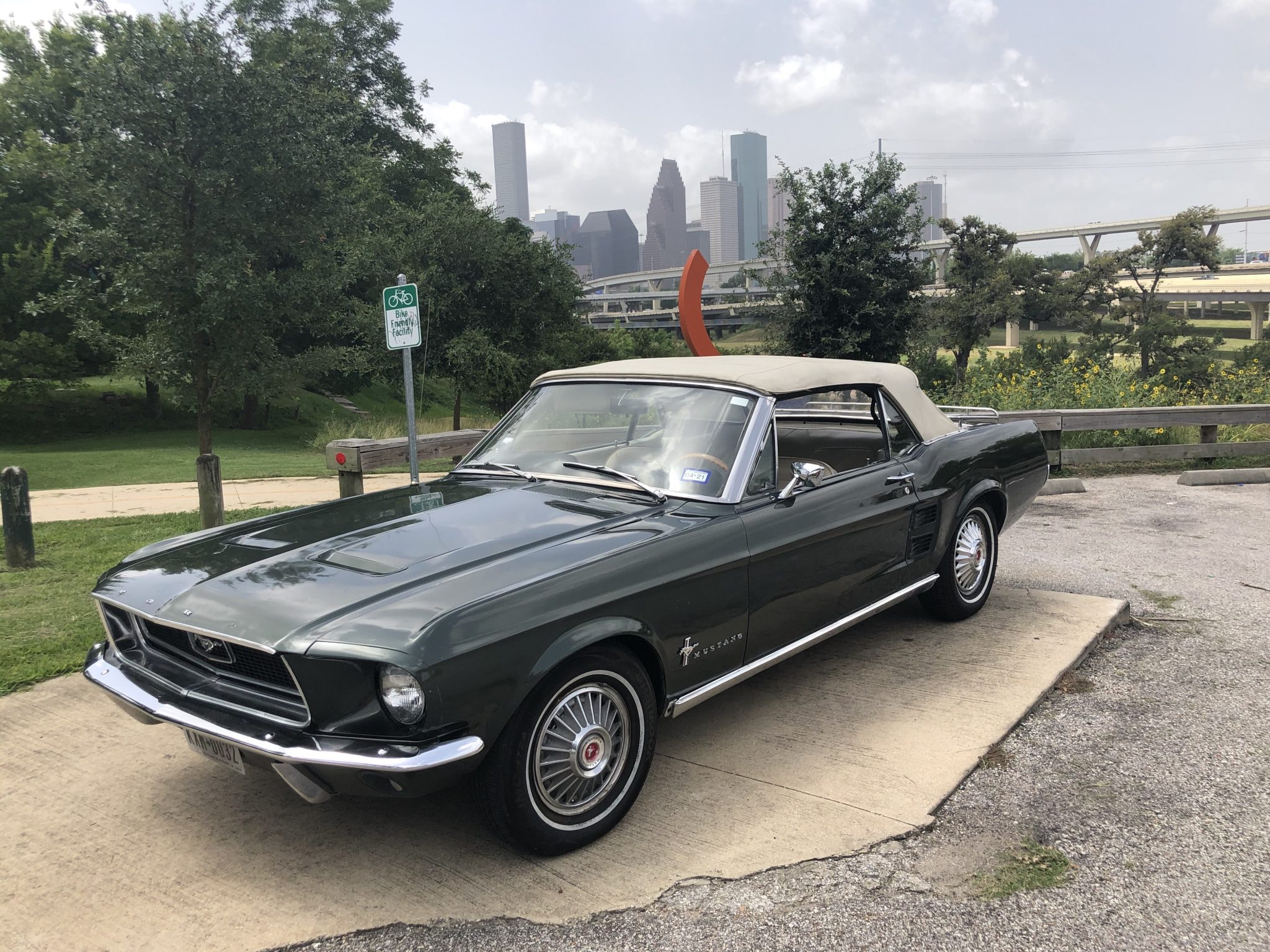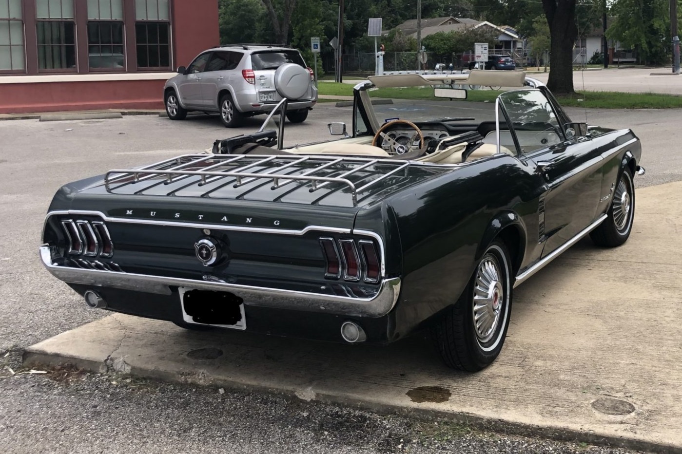 The motorized white convertible top features a clear vinyl backlight and is shown both raised and lowered. Steel wheels are fitted with stock covers and 14″ Hankook Optimo whitewall tires.