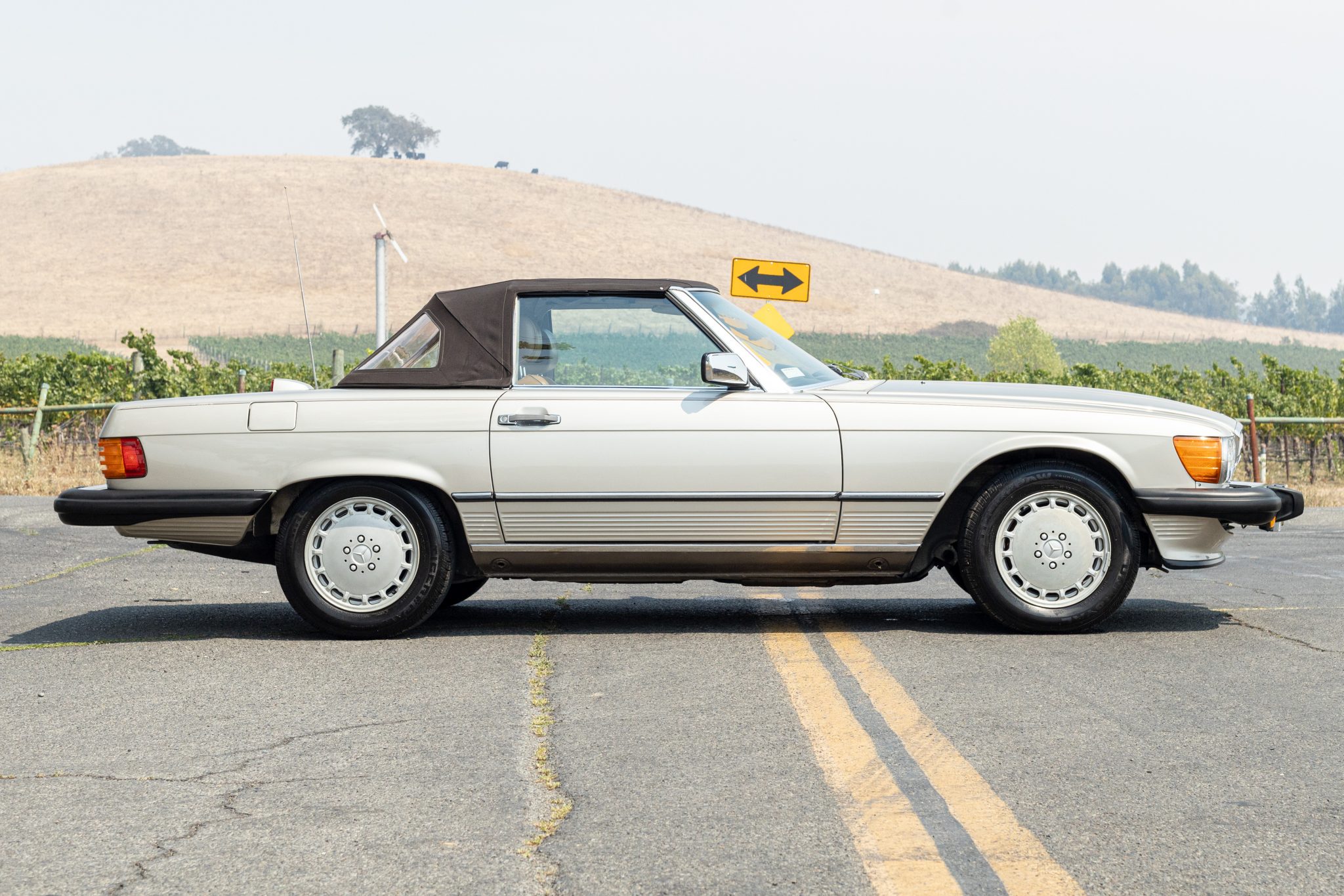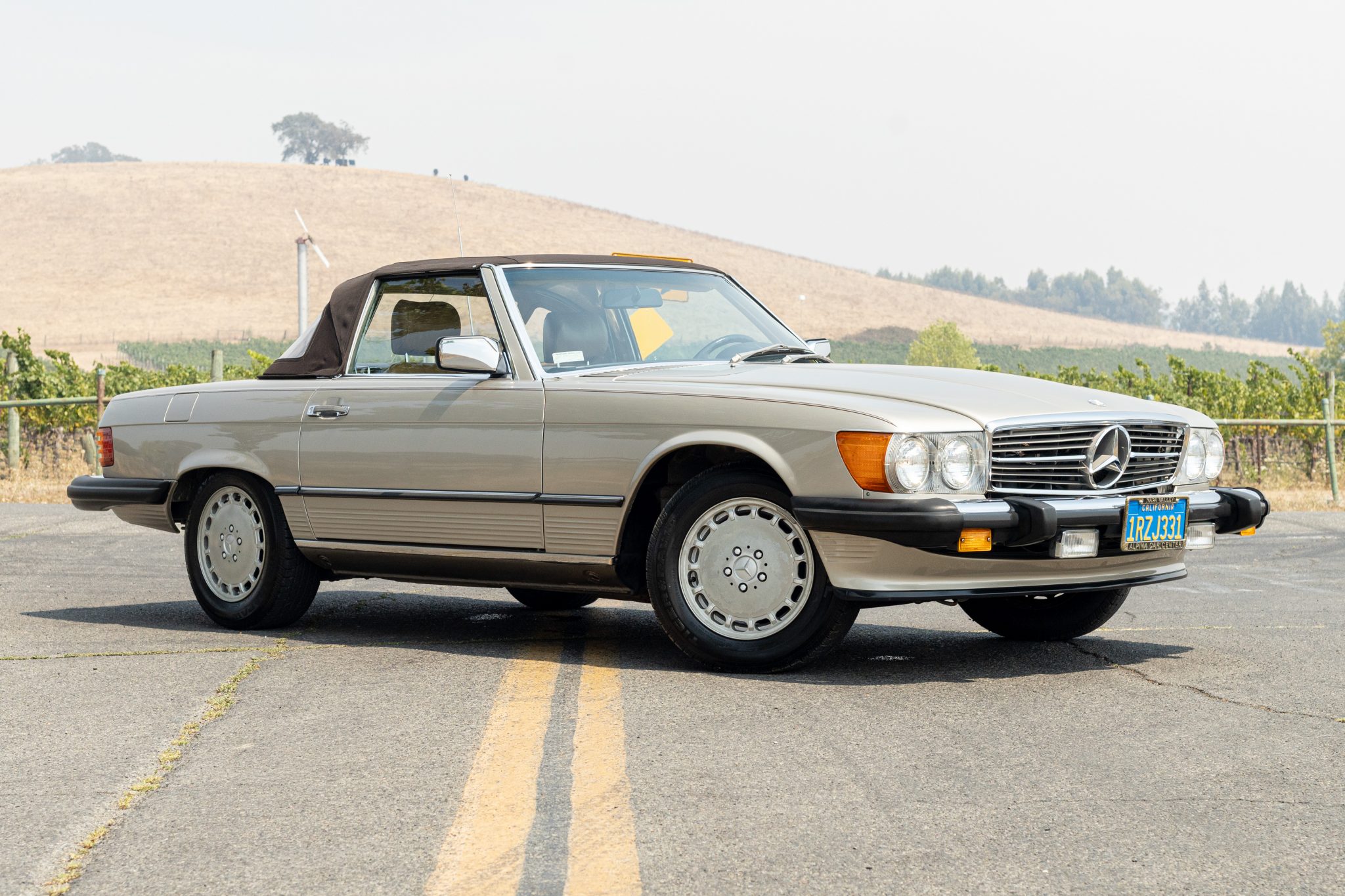 Factory 15″ Gullideckel wheels are fitted with 205/65 Uniroyal Tiger Paw tires. A color-matched removable hardtop, a stand, and a cover are included in the sale.