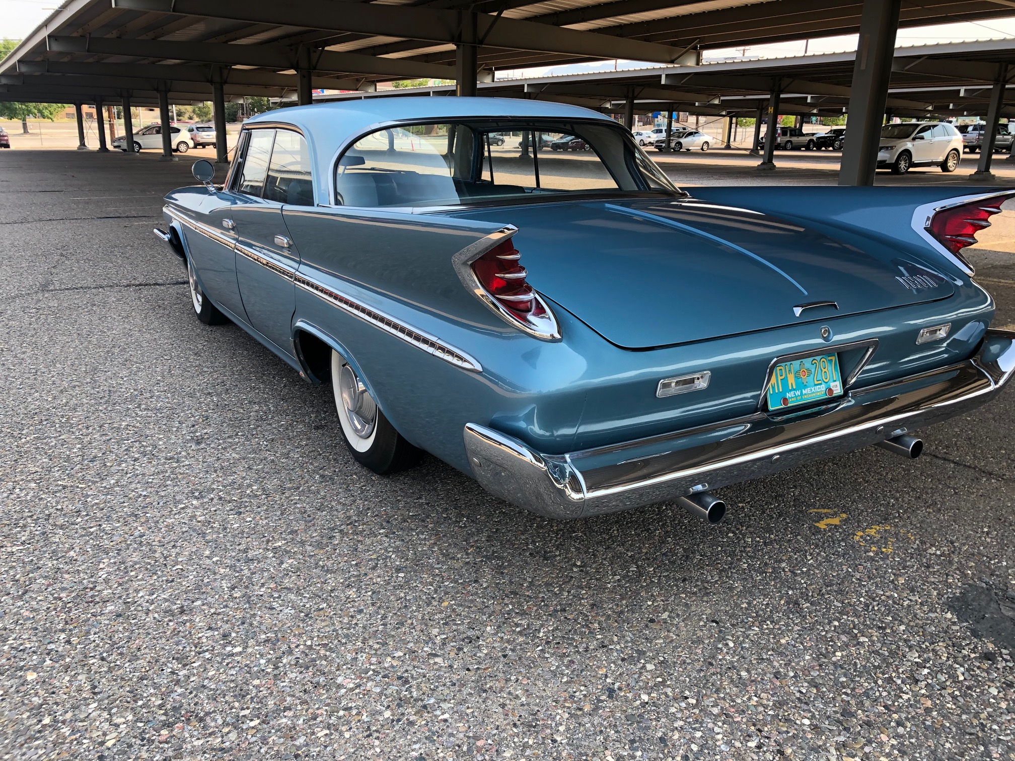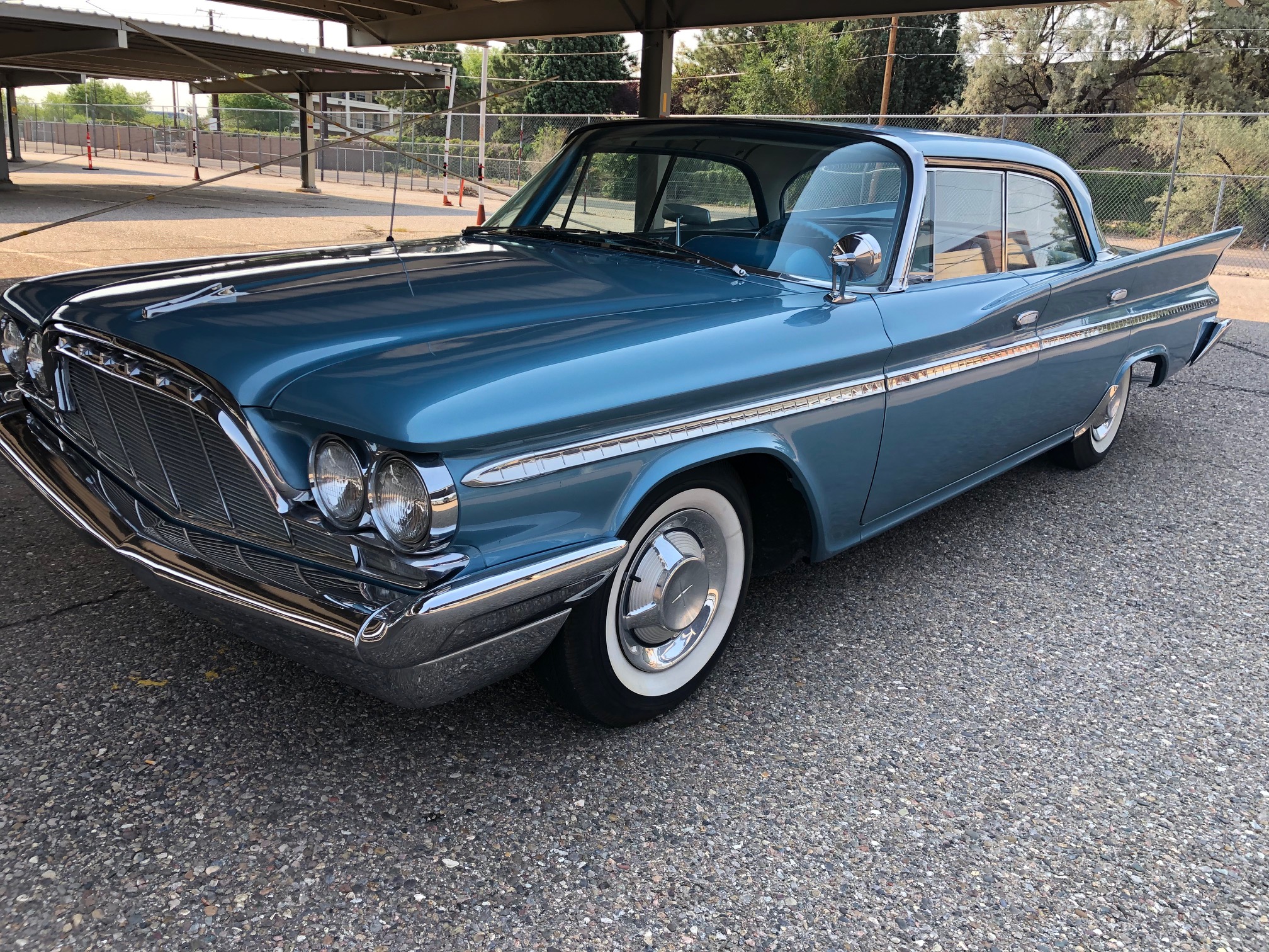 This example is four-door pillarless hardtop that is said to have been repainted in its current metallic blue circa 2005. Steel wheels wear chrome covers and pie-crust whitewall tires. The car is equipped with power-assisted steering and brakes. A walk-around video is provided by the seller.