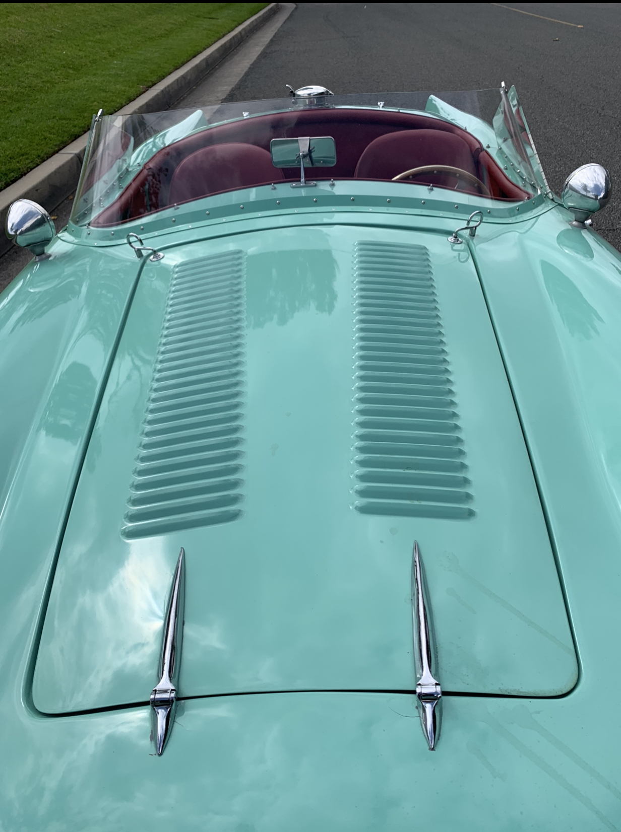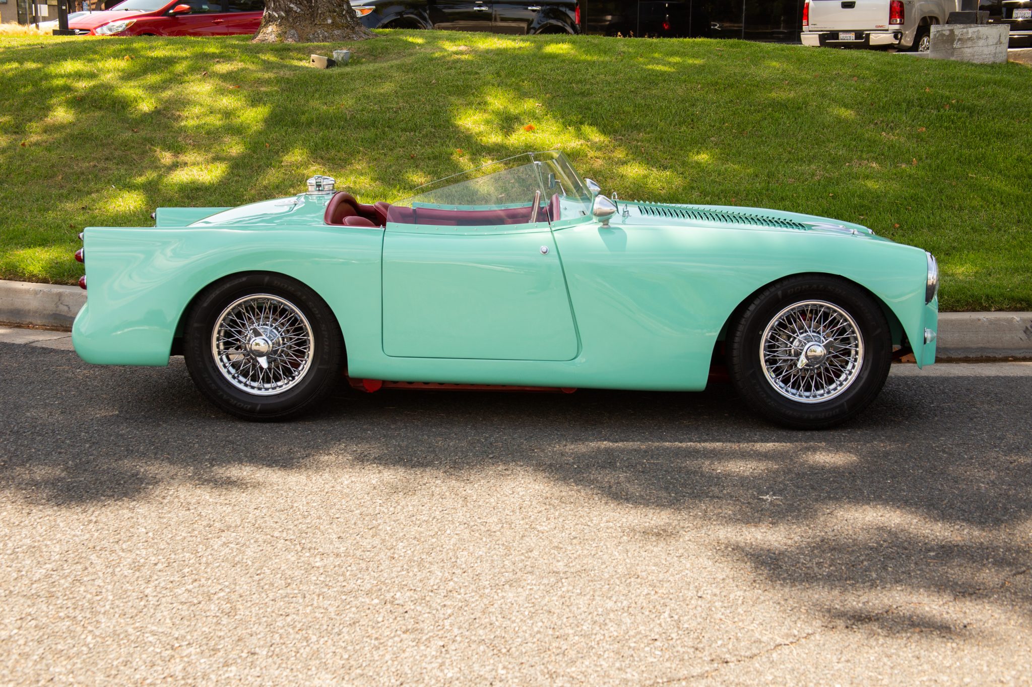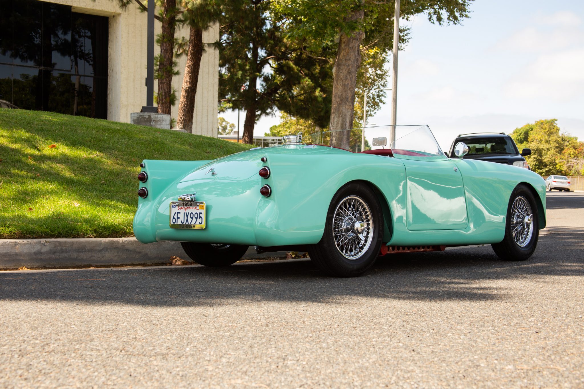 Factory front and rear bumperettes have been removed. Chrome 14″ knock-off wire wheels were mounted with new Doral SDL-Sport tires in 2020. Braking is handled by front discs and rear drums, with new pads installed under the seller’s ownership.