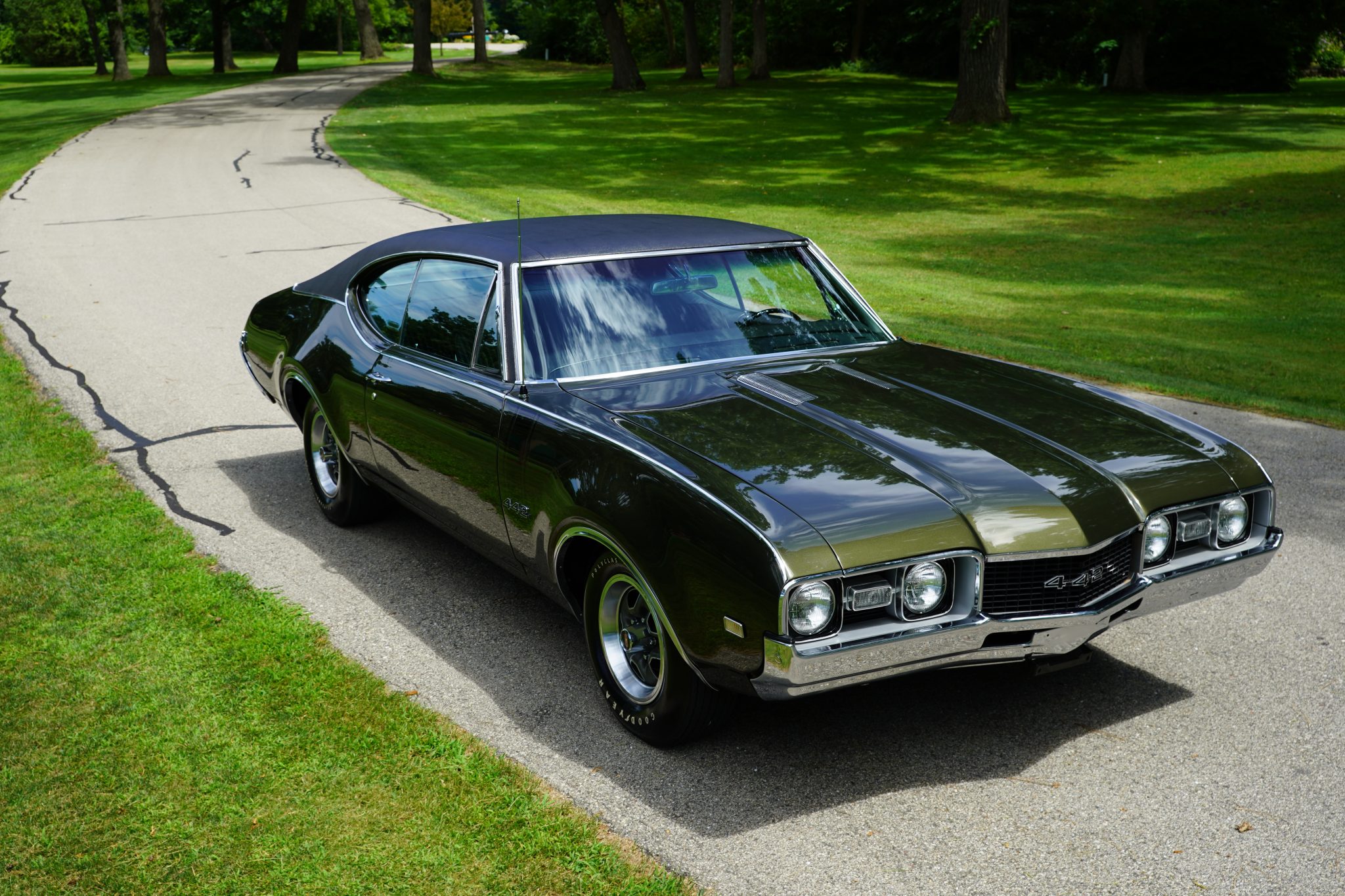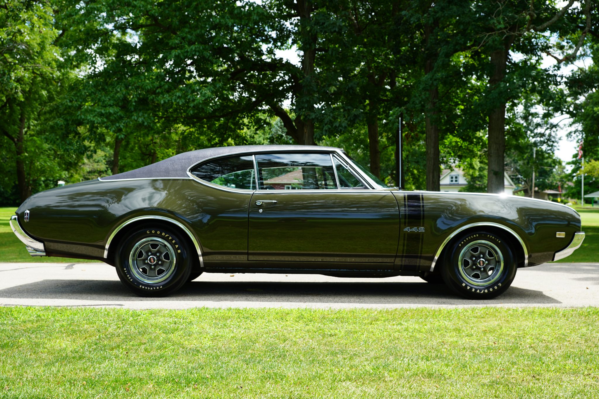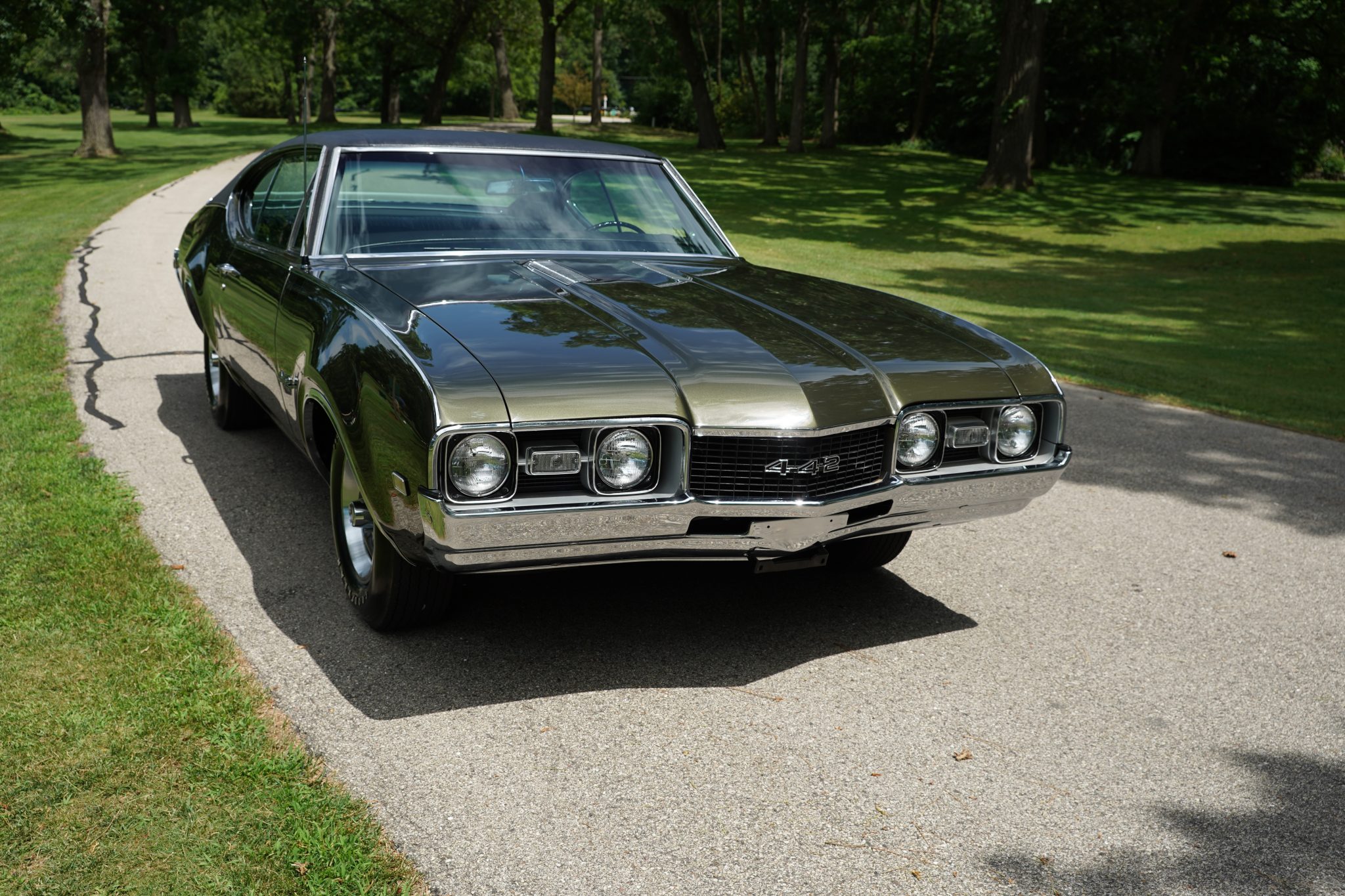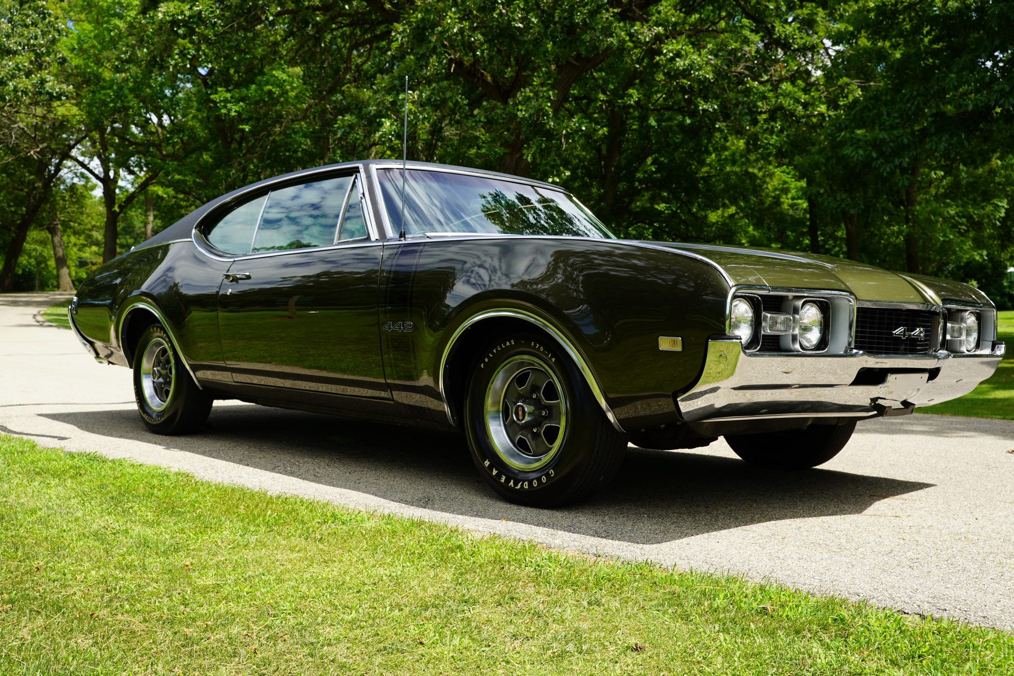 Super Stock 14″ wheels were finished in silver from the factory and retain stainless-steel trim rings said by the seller to be original to the car. A set of Goodyear Polyglas tires are fitted, and a matching spare fitted with an OEM-style trim ring is stored in the trunk.