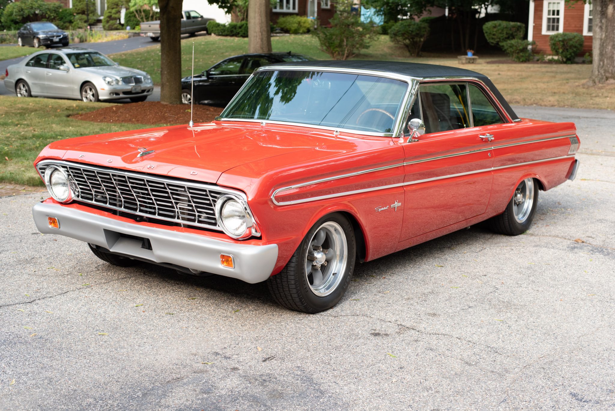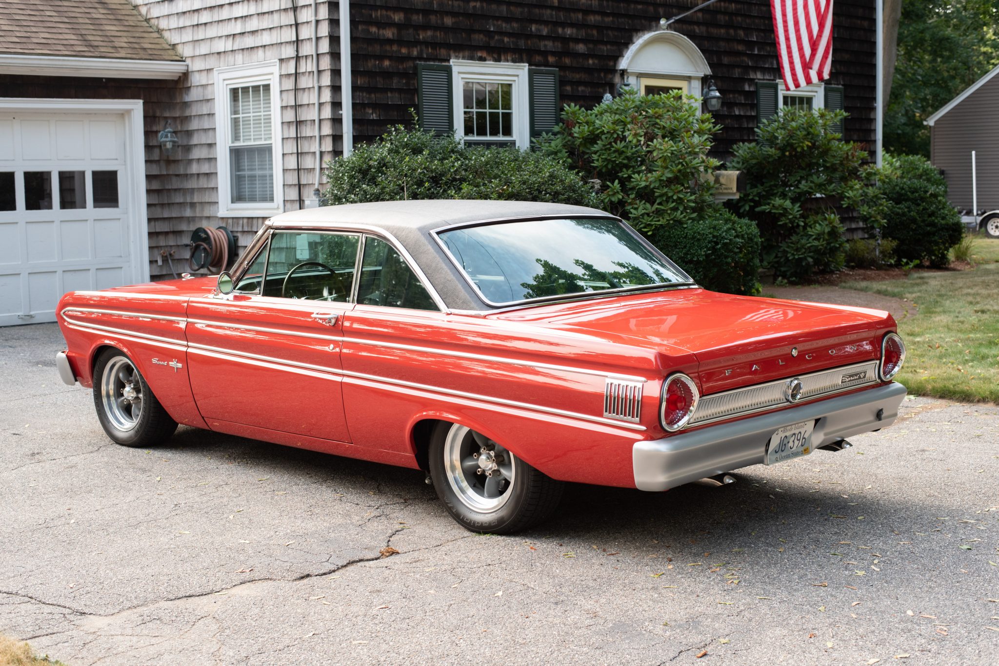 15″ American Racing Torq Thrust D wheels feature gray centers and polished lips and are wrapped in 215/60 BFGoodrich Radial T/A tires. Modifications include adjustable front strut rods, front coilovers, CalTracs adjustable traction bars, and four-wheel disc brakes.