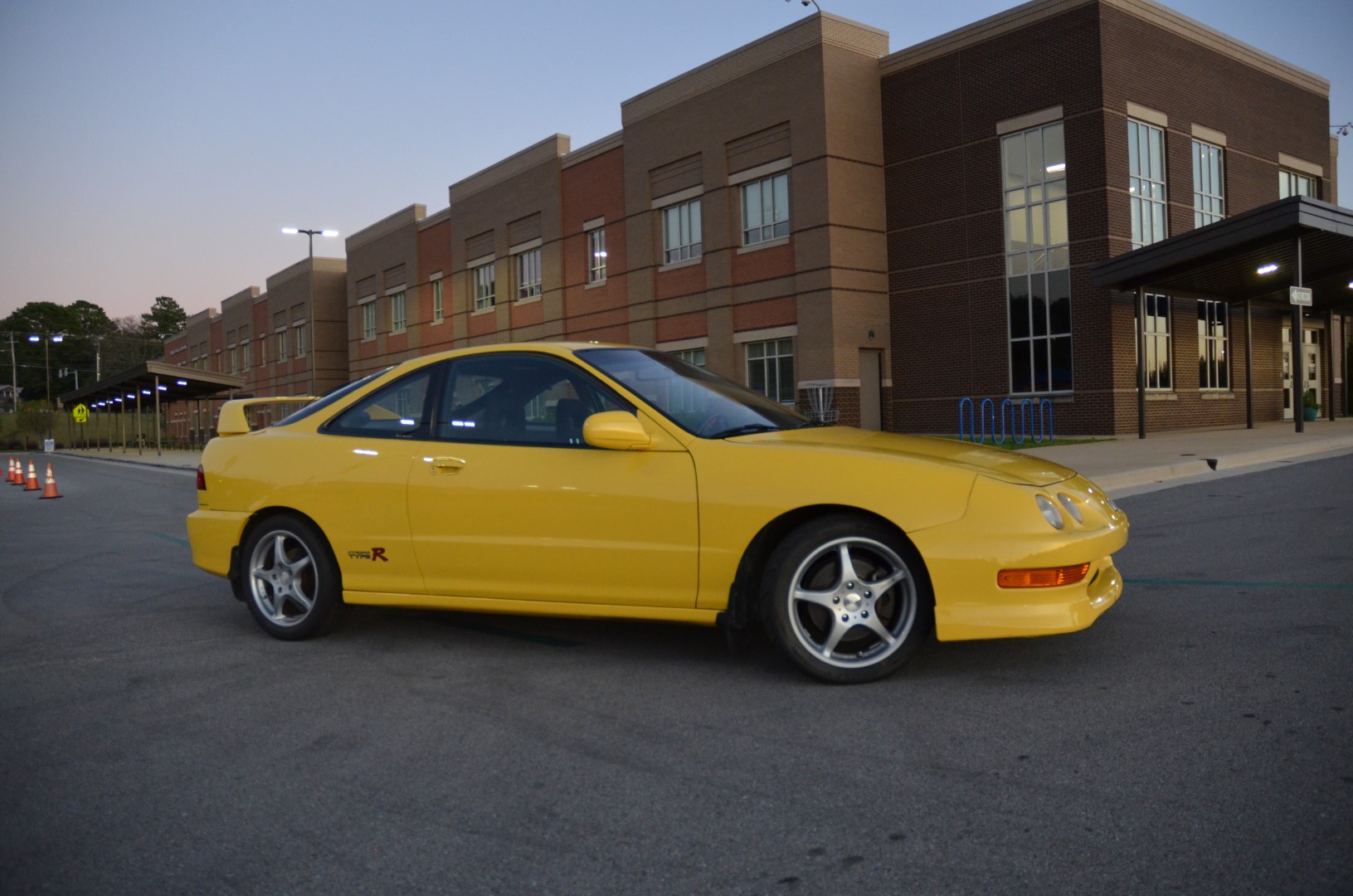 Forged 16″ SSR Integral A2 wheels are mounted with 205/45 Toyo Proxes R888R tires showing 2017 date codes. The factory grey-finished 15″ alloy wheels are included in the sale and shown in the photo gallery below.