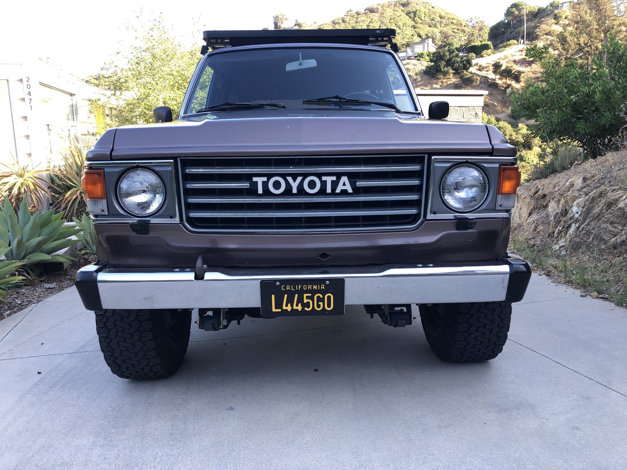 The suspension has been modified with additional leaf springs and extended shackles to clear 32 x 11.5″ BFGoodrich All-Terrain T/A KO2 tires that are mounted on aftermarket black wheels. The truck rides on Old Man Emu shocks and is equipped with manually-locking front hubs. Work performed during current ownership has included replacement of the tie rods, steering stabilizer, and front brake rotors in 2018, adjustment of the rear drums and parking brake in November 2019, and an alignment.