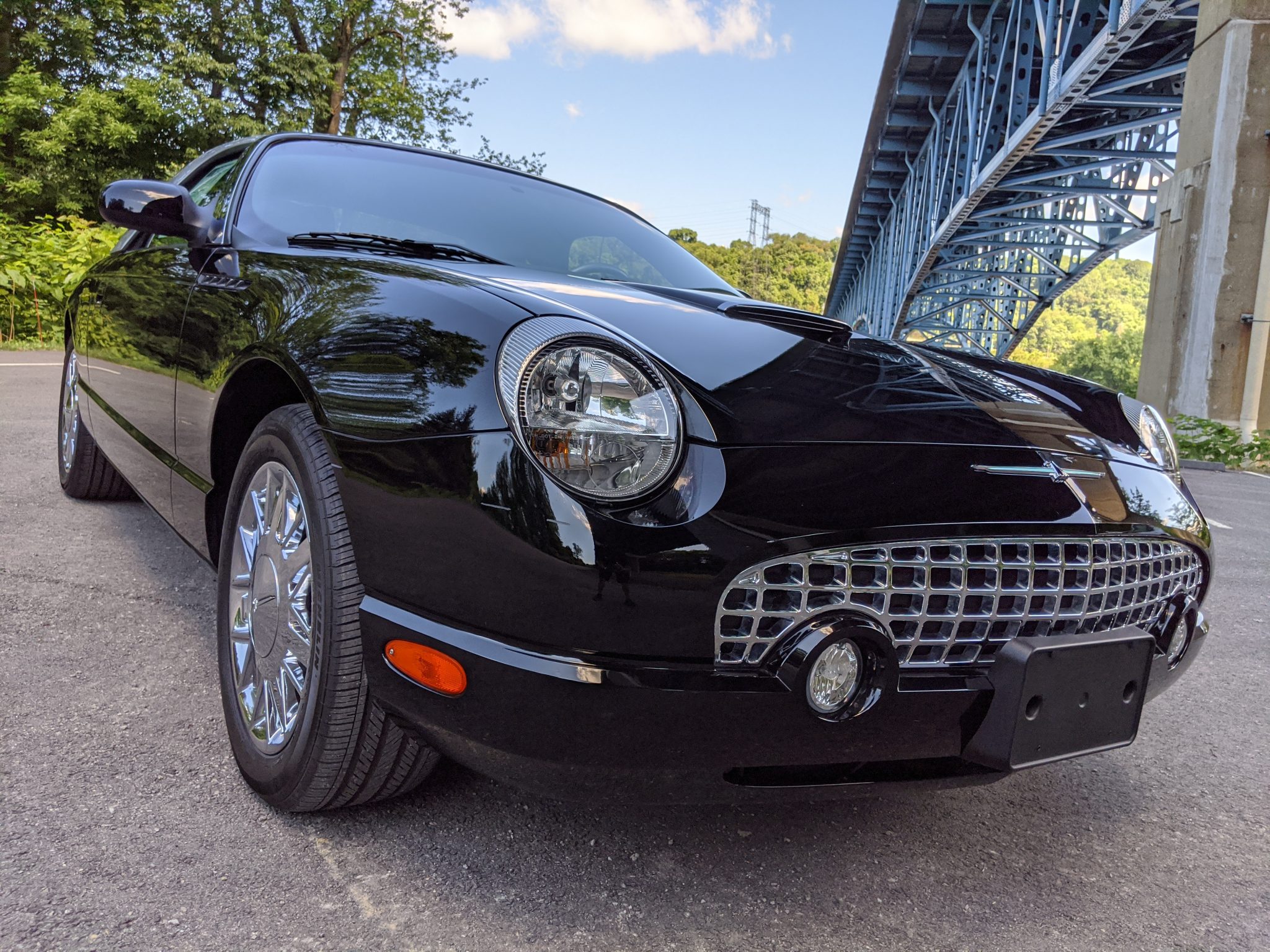 Chrome-finished 17″ wheels are mounted with 225/50 Michelin Pilot HX MXM4 tires showing 2001 date codes. Braking is handled by four-wheel discs with silver-finished calipers.