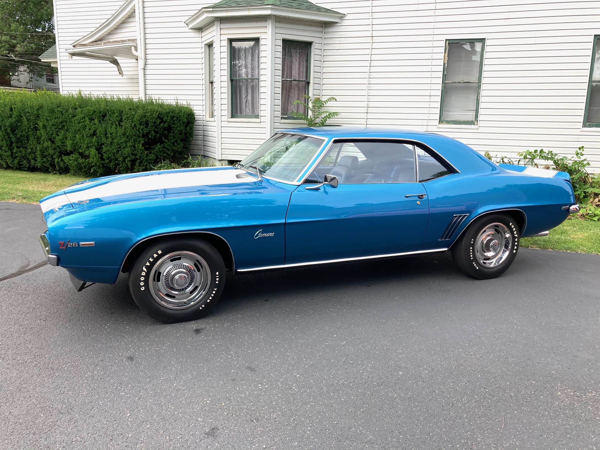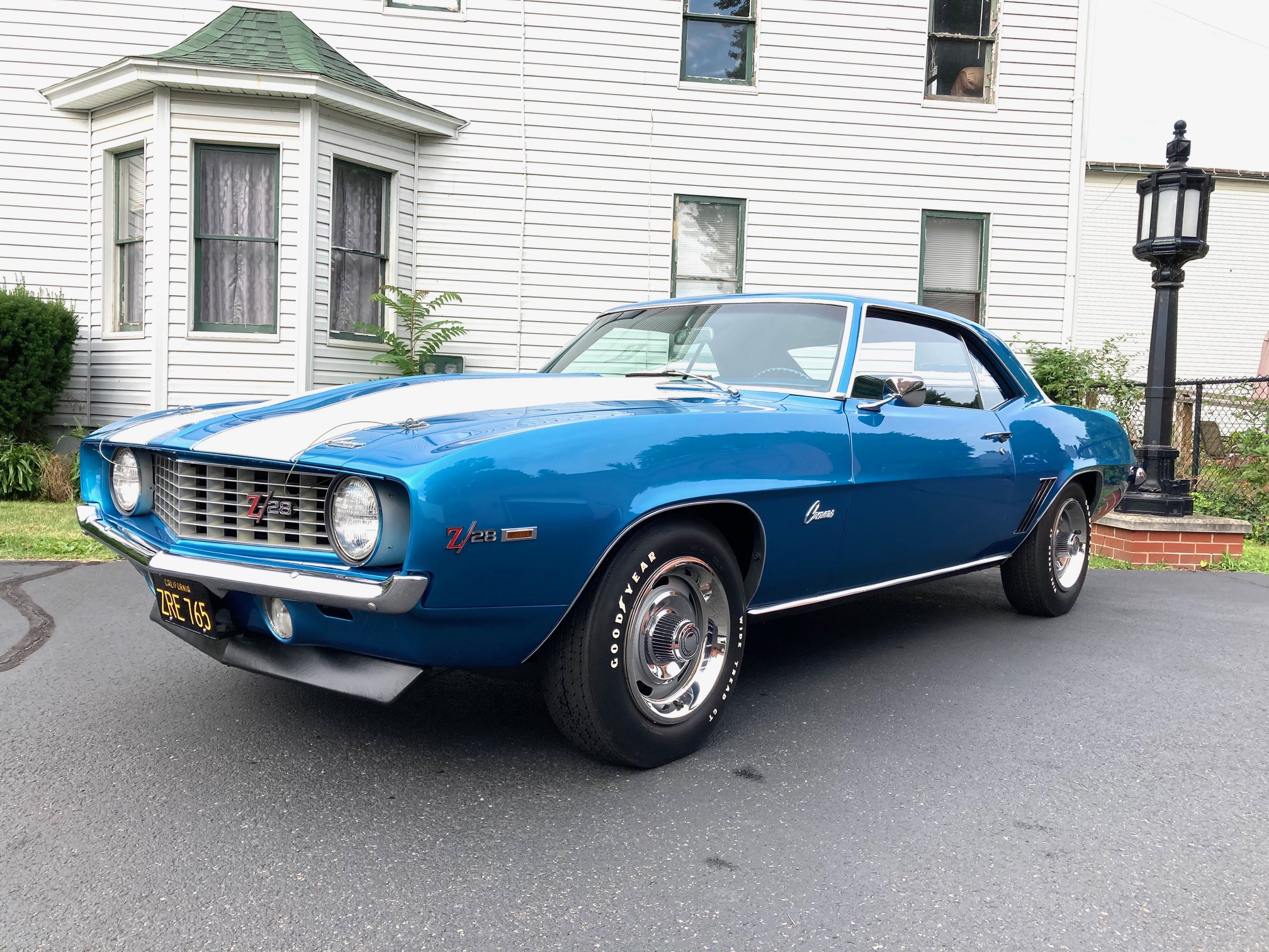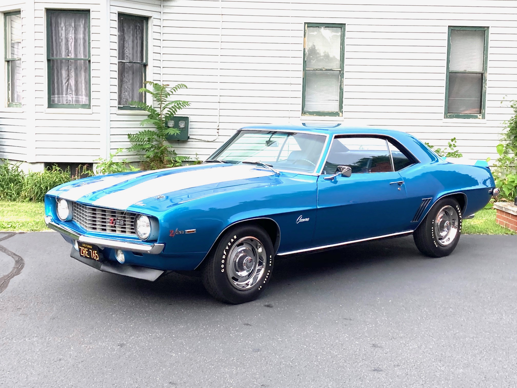 Steel 15″ Rally wheels wear chrome hubcaps, beauty rings, and period-style Goodyear Wide Tread GT bias-ply tires. Vacuum-assisted front disc brakes were a factory option, adding $64 to the purchase price in 1969.