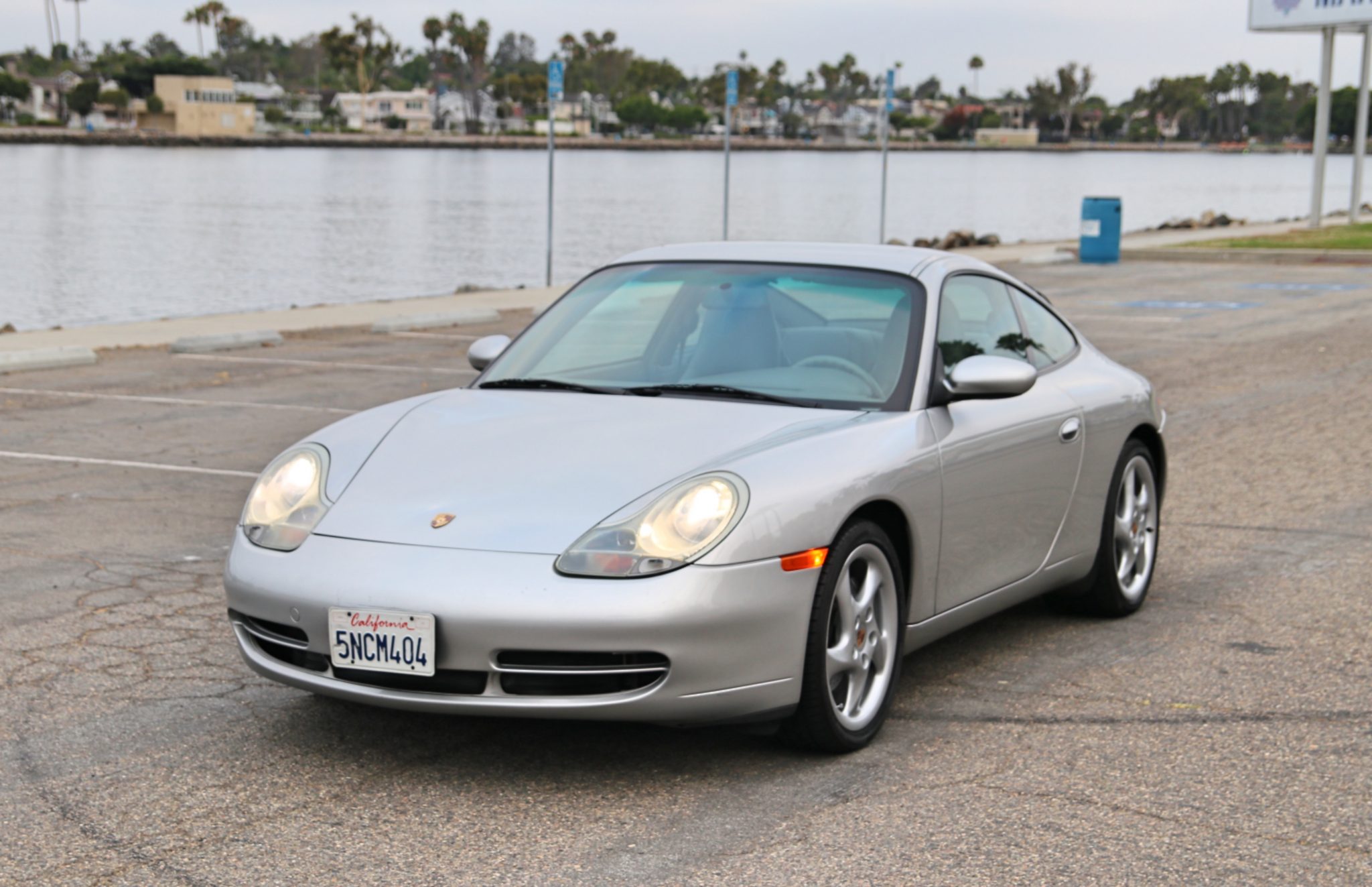 Optional 18″ Turbo-look wheels are fitted with colored Porsche-crest center caps and wrapped in Bridgestone Potenza RE970AS Pole Position tires measuring 225/40 up front and 265/35 out back that show 2014 date codes. Braking is provided by four-wheel discs with cross-drilled rotors and silver-painted calipers.