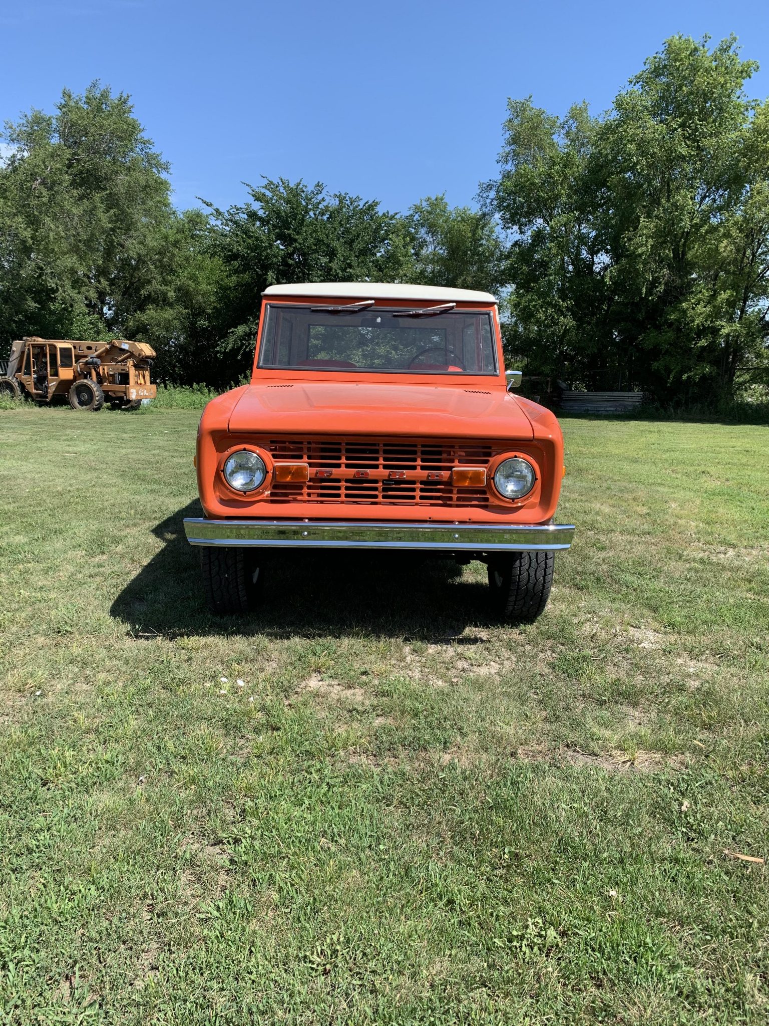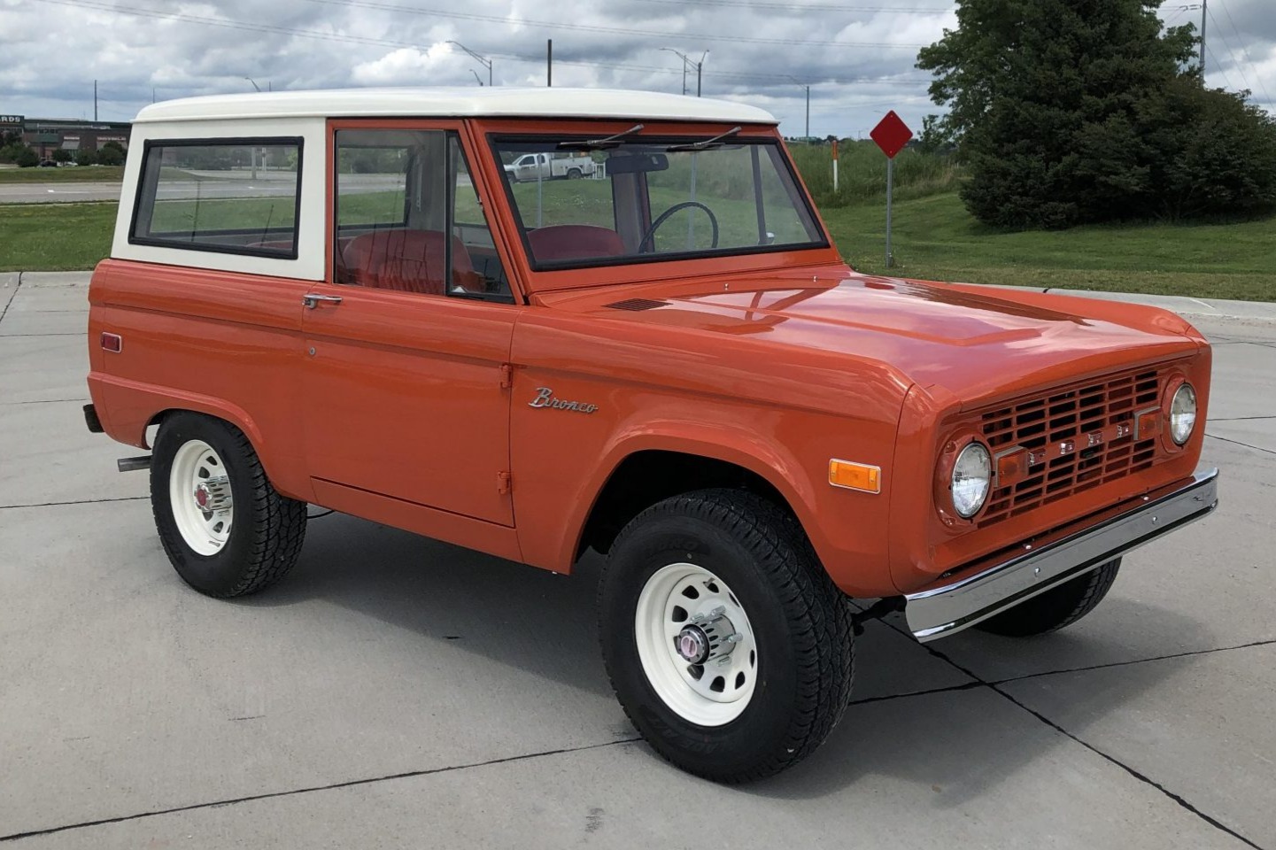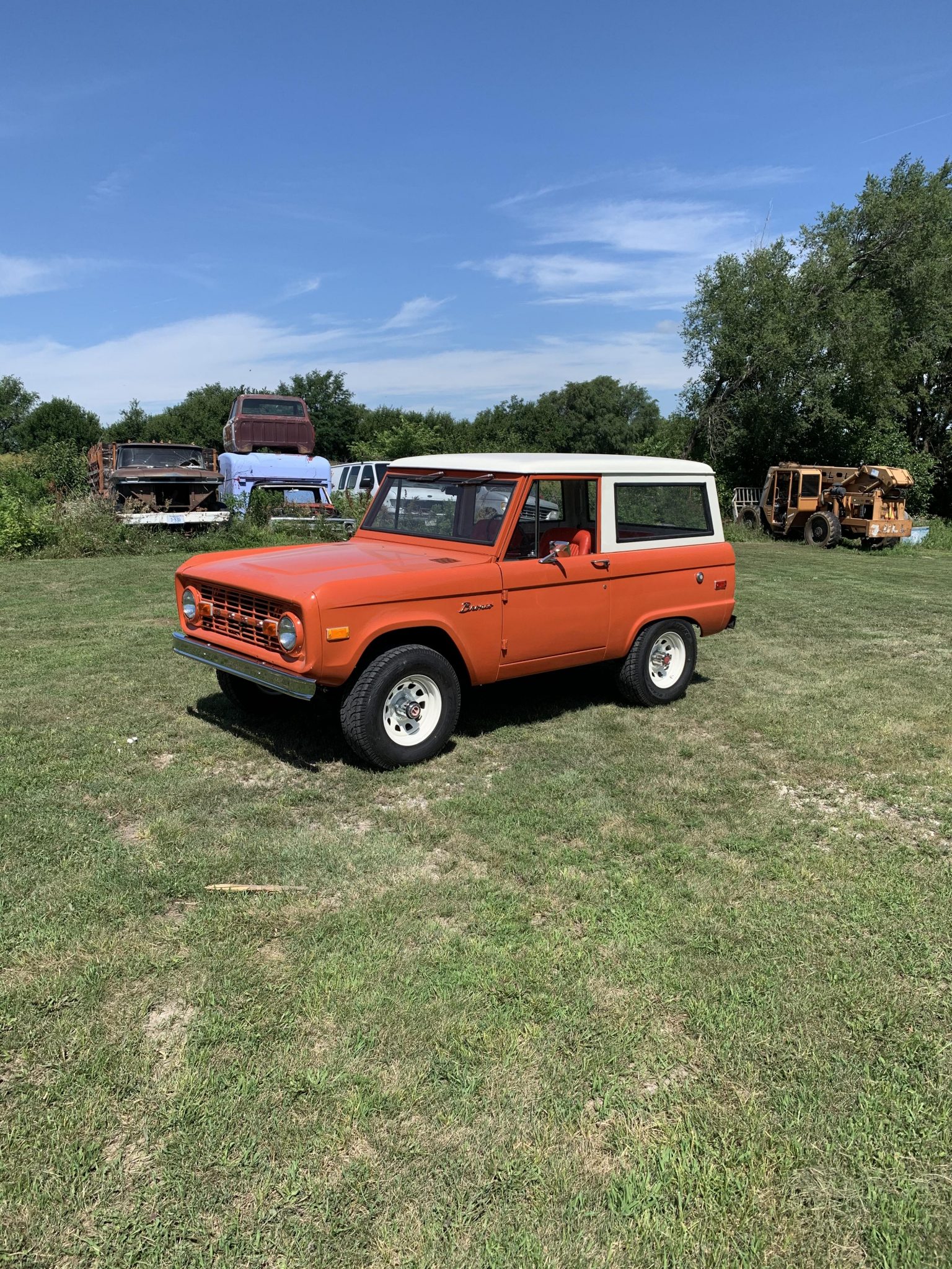 White-painted 15″ steel wheels are mounted with 30″x9.5″ Atturo Trail Blade all-terrain tires. The shocks, steering stabilizer, and front wheel bearings have been replaced according to the seller, as have the brake drums, shoes, and associated hardware.
