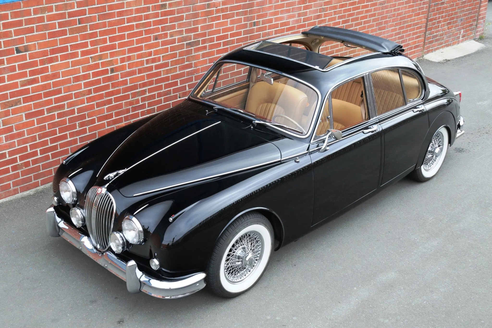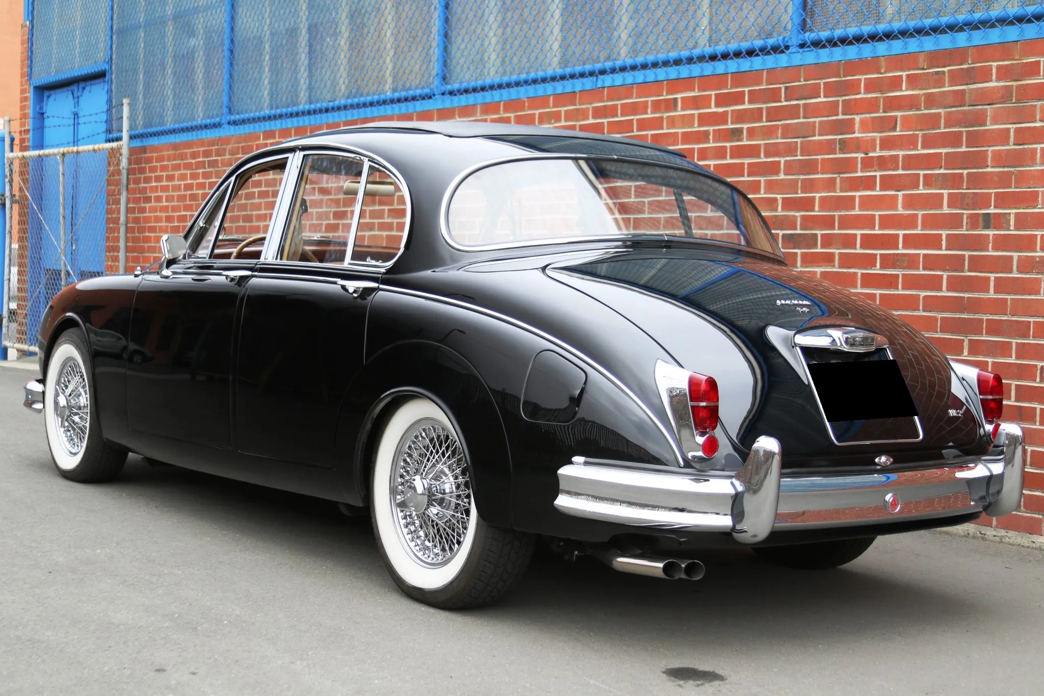 Accessories include a single driver-side mirror and rear fender skirts. Chrome 15″ knock-off wire wheels are mounted with Firestone wide-whitewall tires. A matching spare wheel is fitted in the trunk along with a factory tool kit. Woodhead shocks were installed during the 1990s refurbishment along with replacement front coil and rear leaf springs. Braking is handled by Dunlop discs at all four corners.