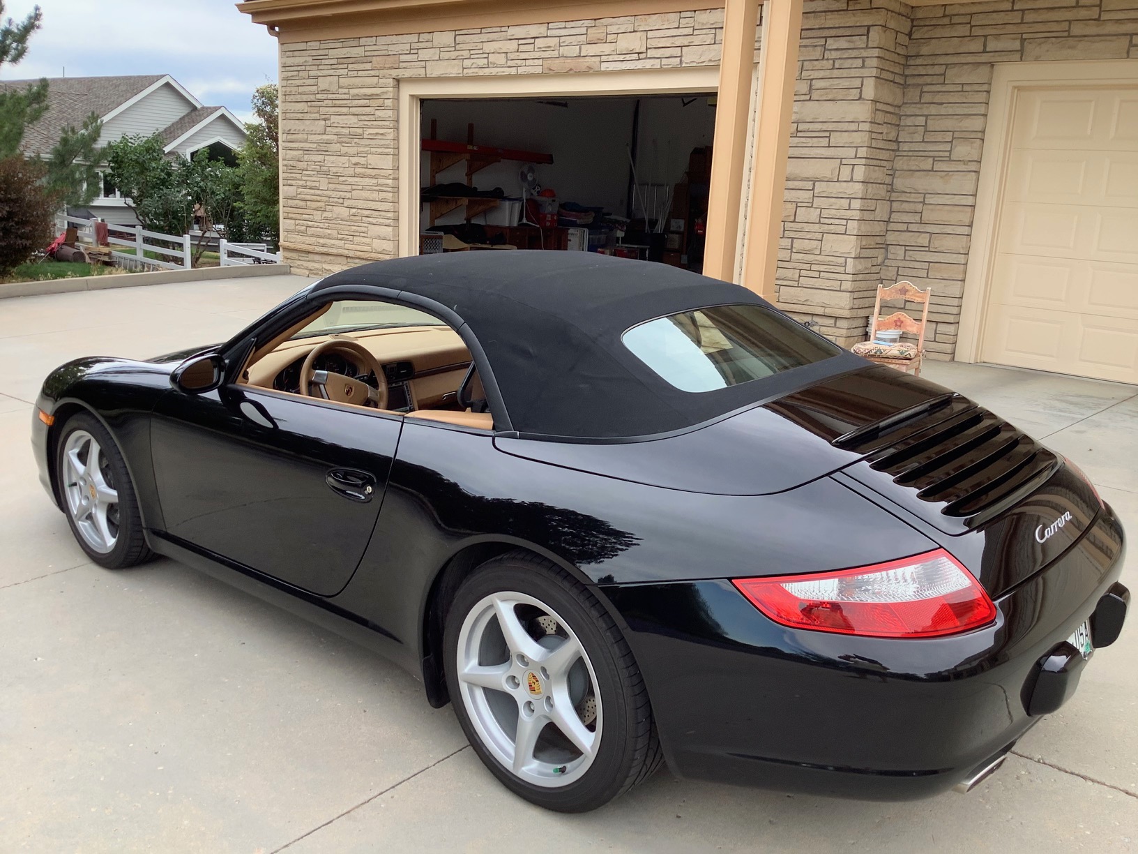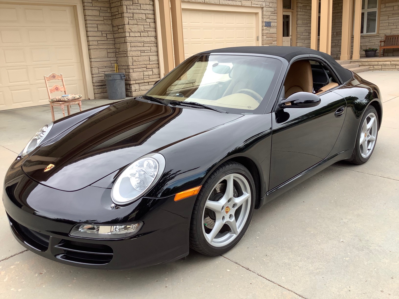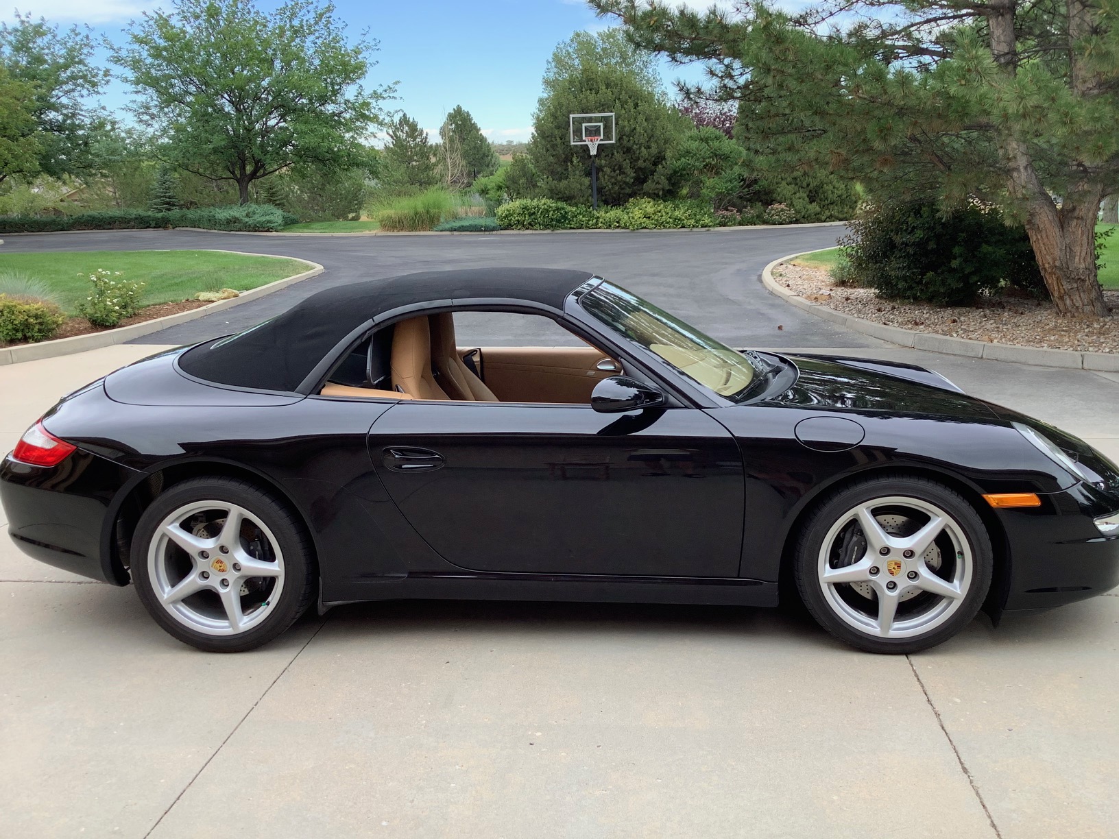 Factory 18″ wheels wear colored Porsche crest center caps as well as 235/40 and 265/40 Bridgestone Potenza RE050A tires that show date codes from 2005. Braking is provided by black Porsche-branded calipers and cross-drilled rotors at all four corners.