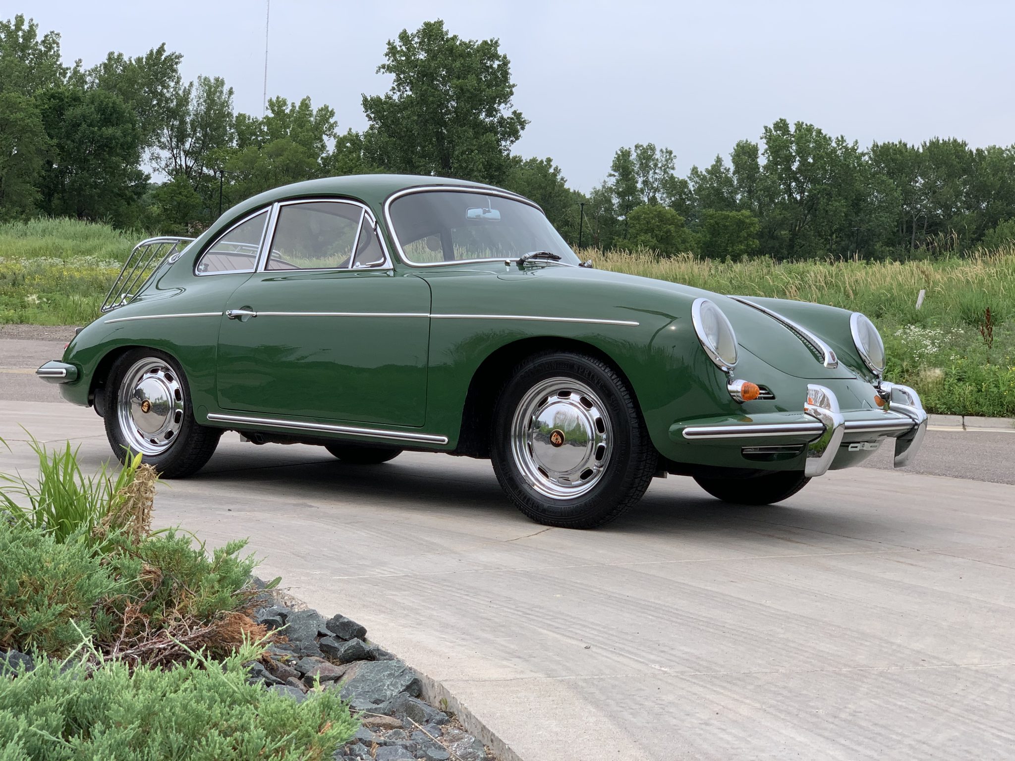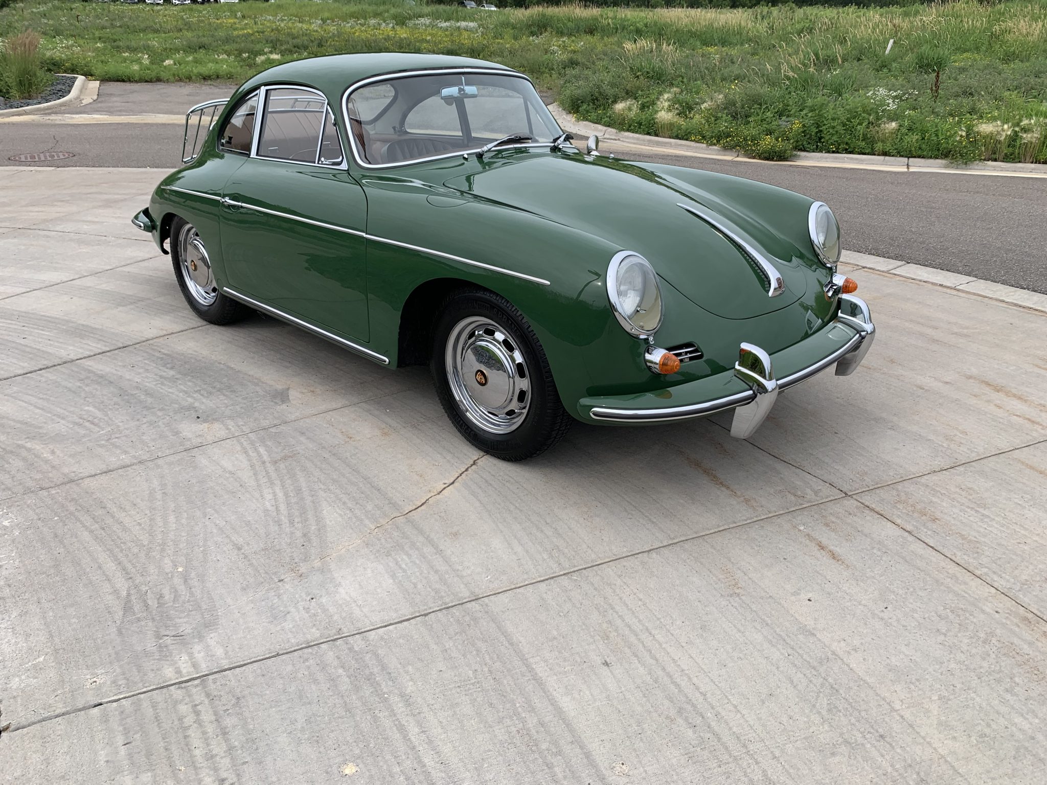 Polished 15″ ventilated steel wheels are said to show 3/1964 and 11/1965 stampings, and they are mounted with 165-series Vredestein Sprint+ S80 tires with 2008 date codes. Four-wheel disc brakes were standard on the later 356. A dual-reservoir master cylinder has been added, and the brake system was bled in May 2019.