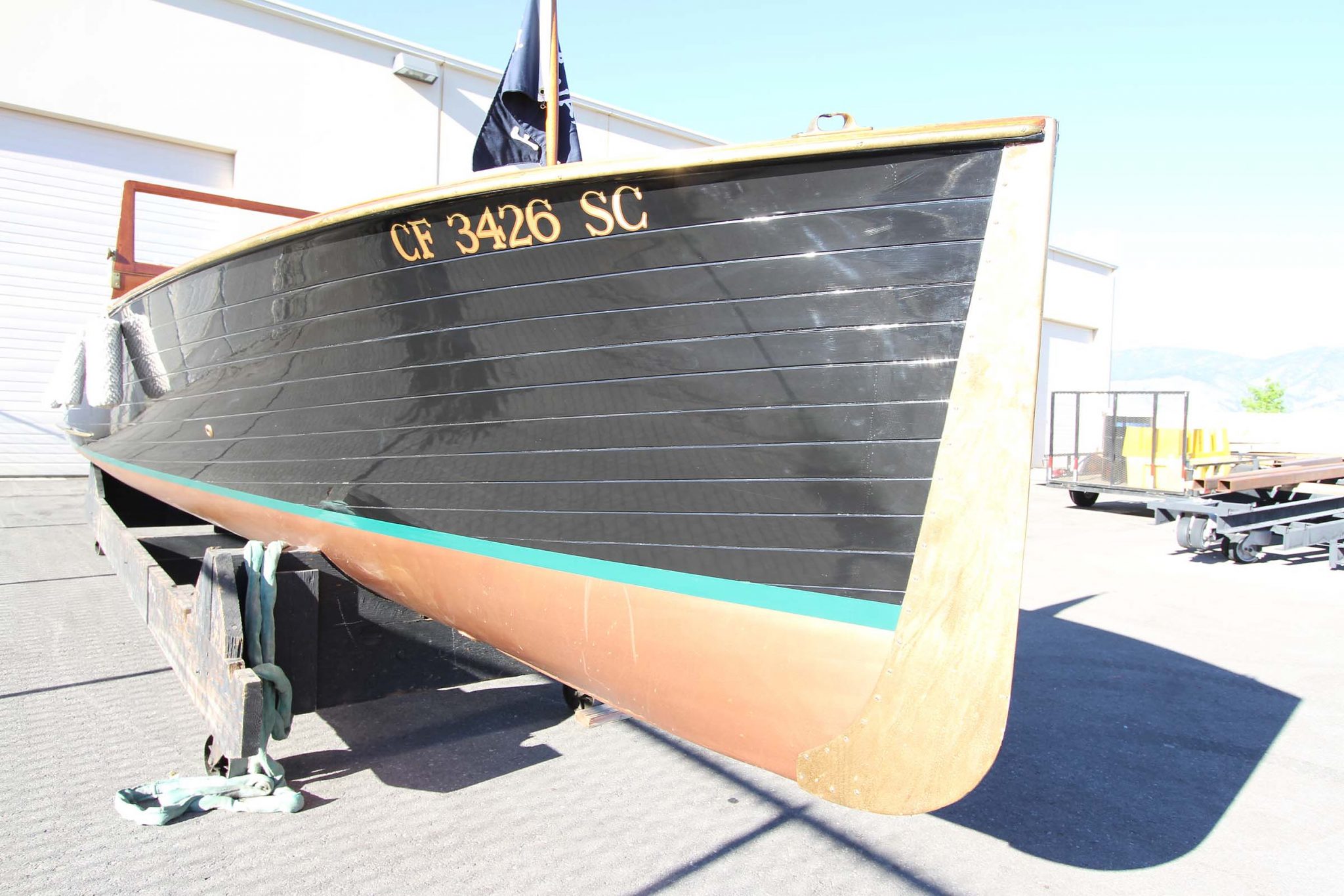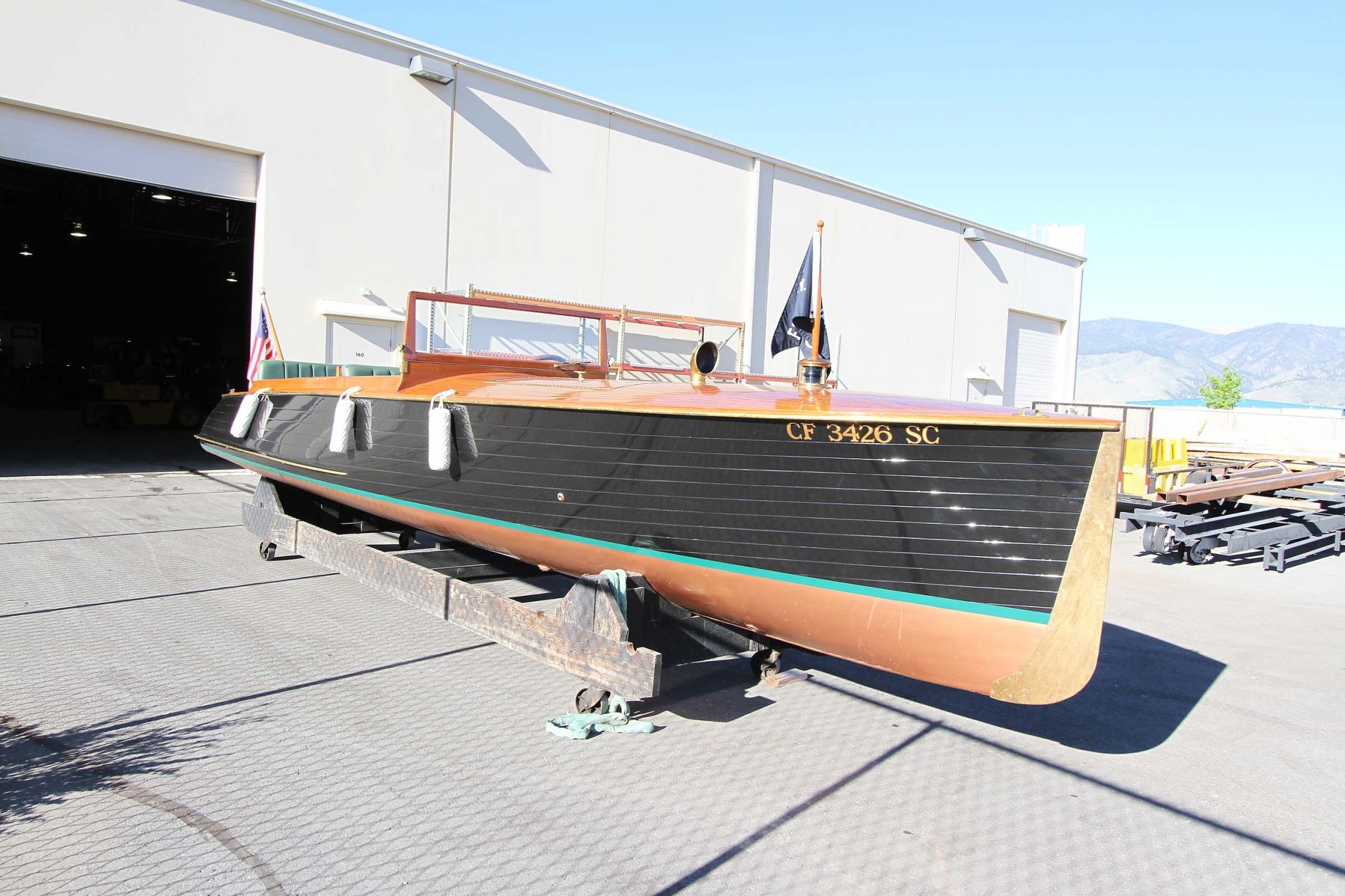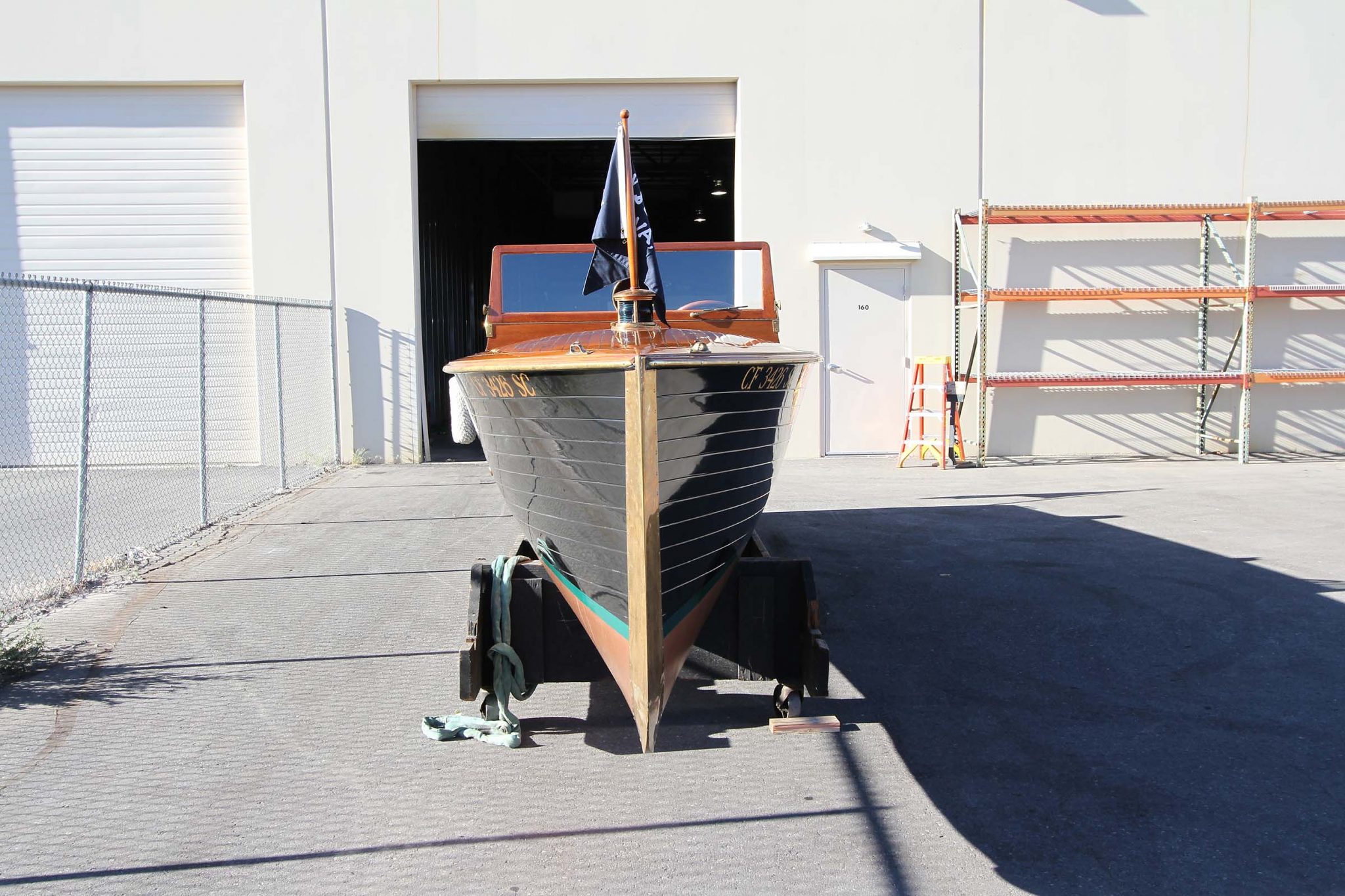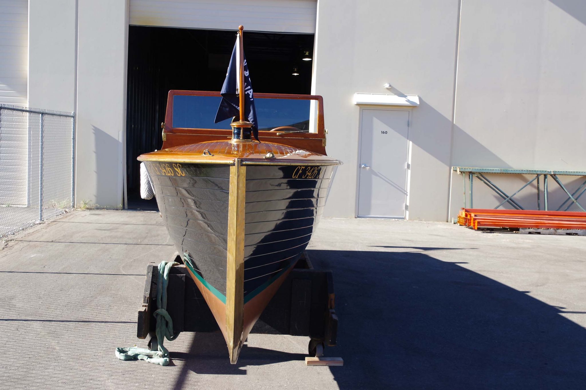 The vessel measures 24′ in length and features a 6′ 6″ beam and a 1′ 8″ draft. It was restored in 1983 at Sierra Boat Company, and invoices attached in the gallery outline more than $17k in refurbishment work carried out by Western Runabouts in 2001. This included refinishing the wood surfaces and polishing the copper hardware.