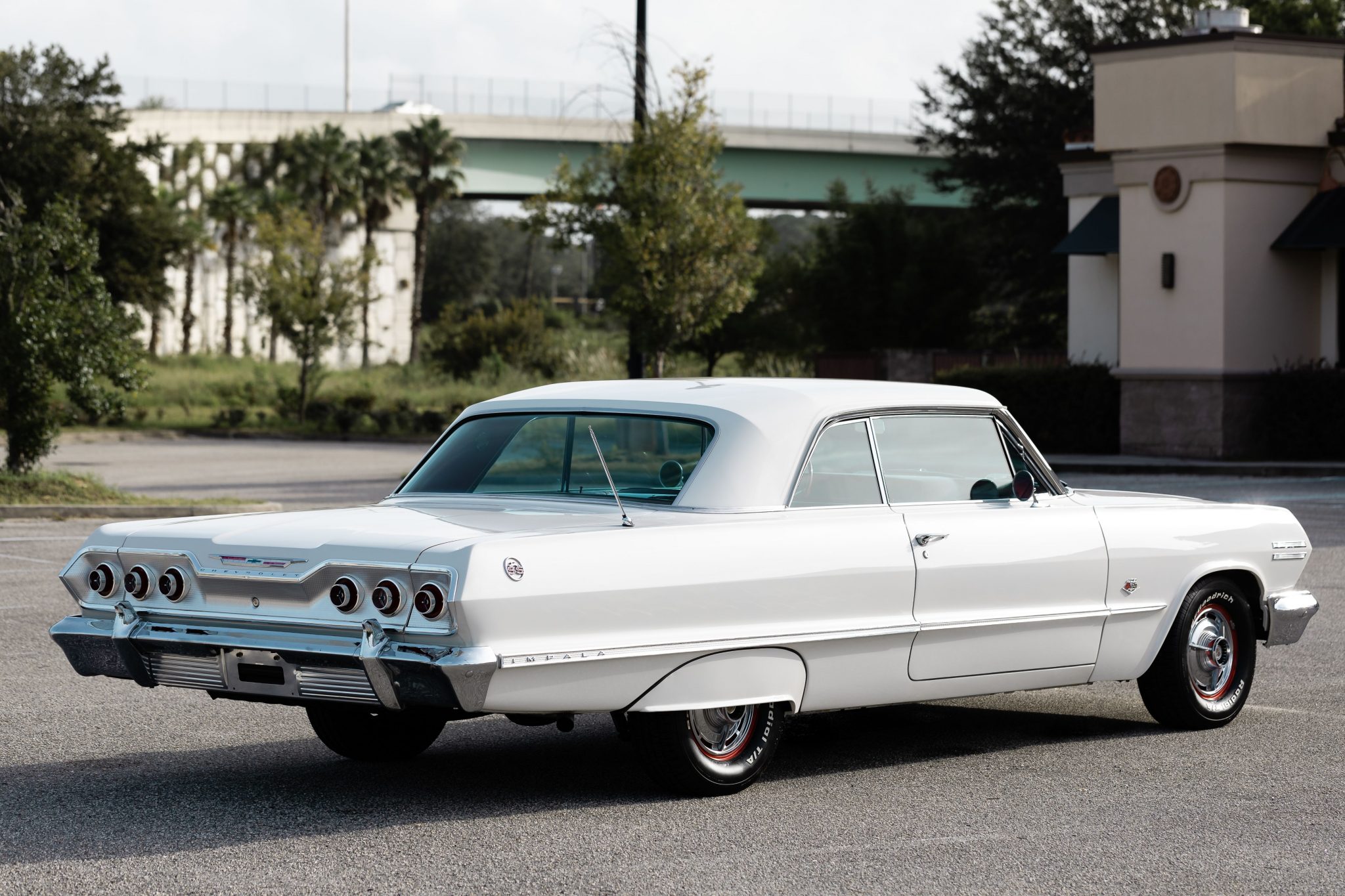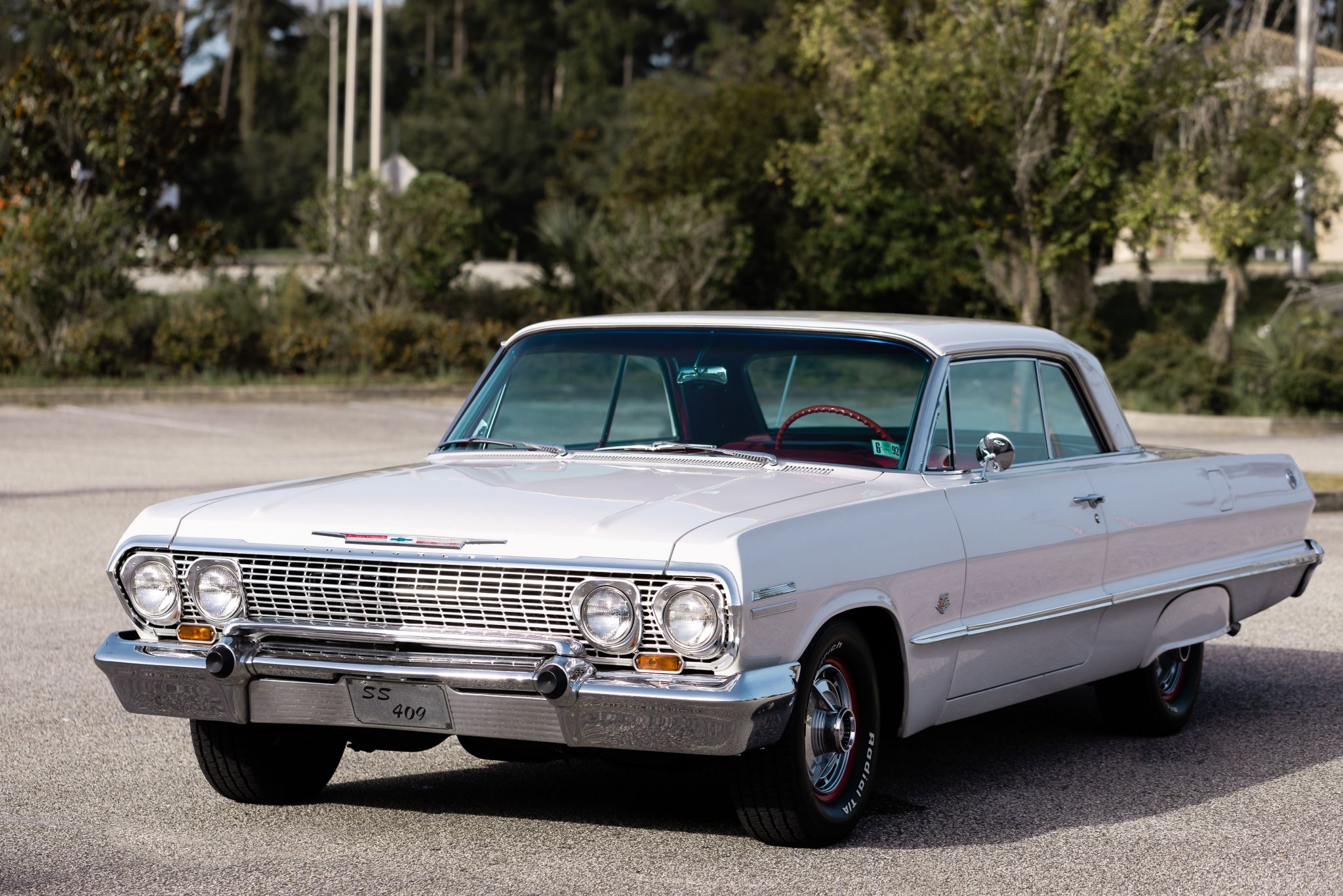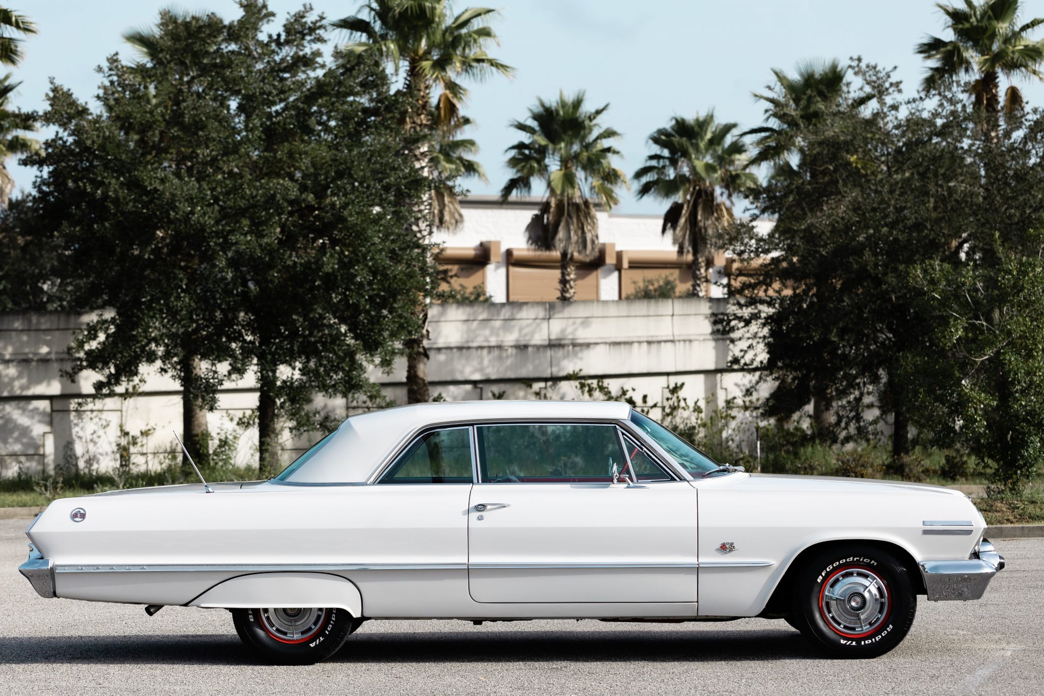 The red-painted 14” steel wheels feature polished SS-branded covers and are wrapped in white-letter BFGoodrich Radial T/A tires sized 225/70. A full-size spare is found in the trunk, and stopping power is provided by front discs with rear drums.