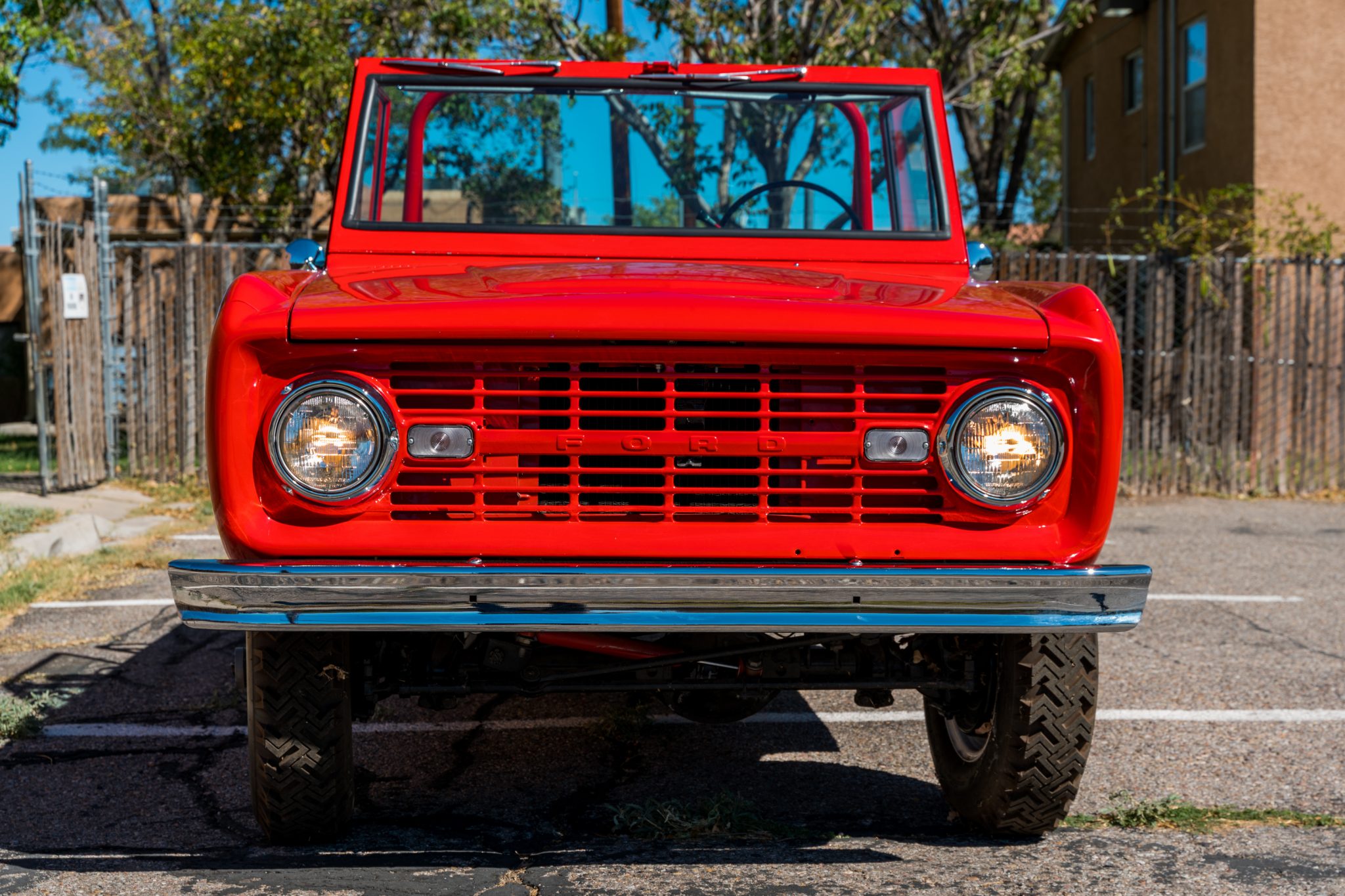 White 15″ steel wheels wear Power King ExtraTraction tires showing 2017 date codes. The truck is equipped with manually locking front hubs and four-wheel drum brakes.