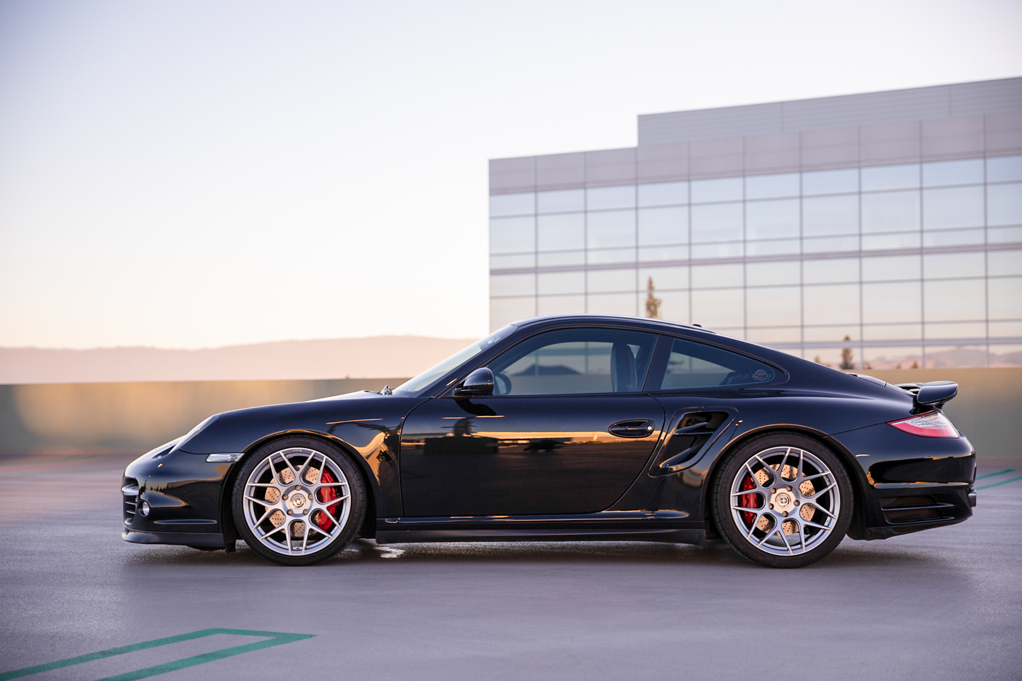 The 19″ HRE wheels are mounted with titanium lug nuts and wear 235/35 and 305/30 Michelin Pilot Super Sport tires. Modifications include a TPC Racing Dynamic Suspension Control (DSC) module, Global Motorsports Group (GMG) lowering springs, GT3 front lower control arms, Rennline rear toe links, and EBC Redstuff ceramic brake pads. An axle boot was replaced in April 2019. The factory wheels and suspension components are included with the car along with a set of used Pagid brake pads.