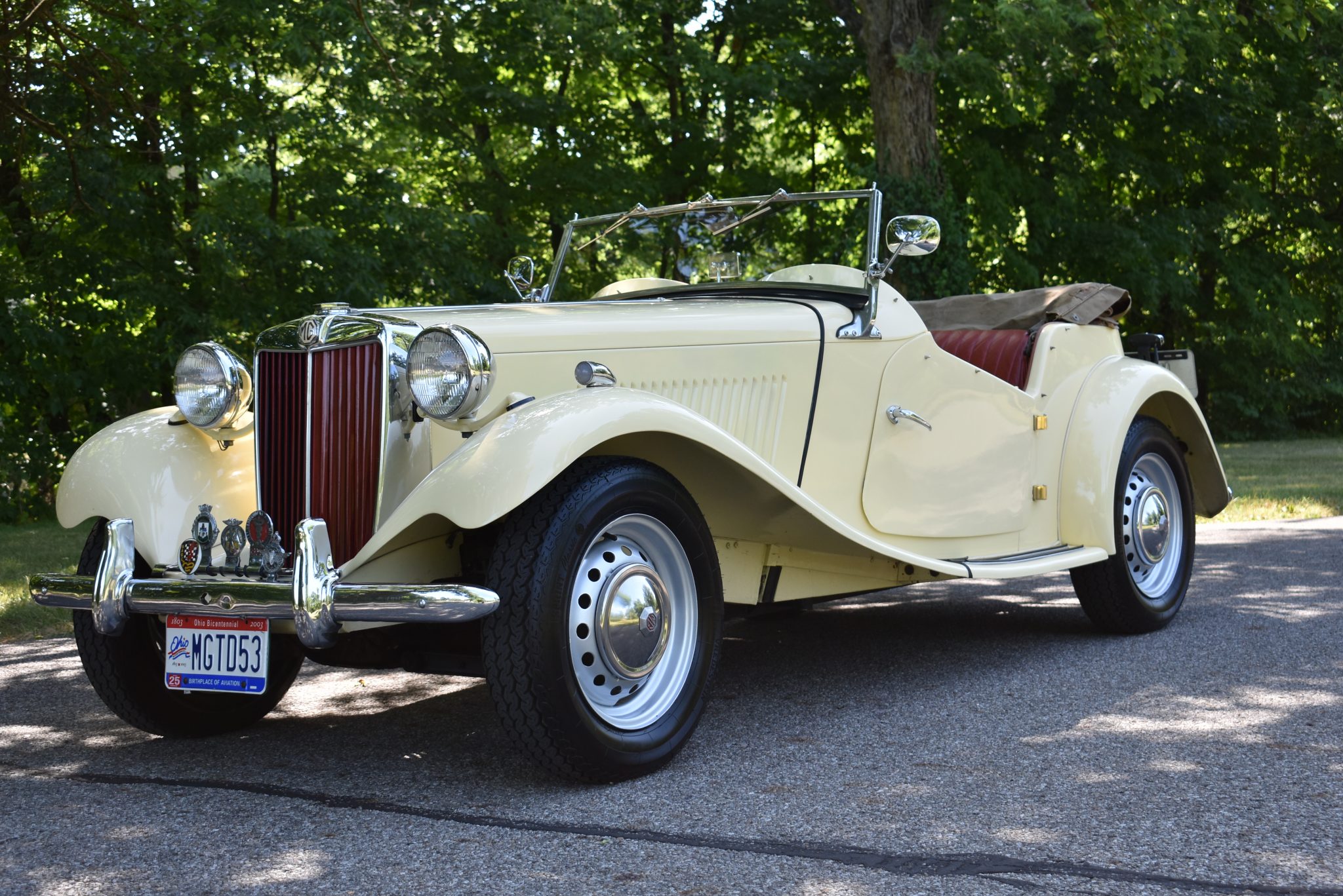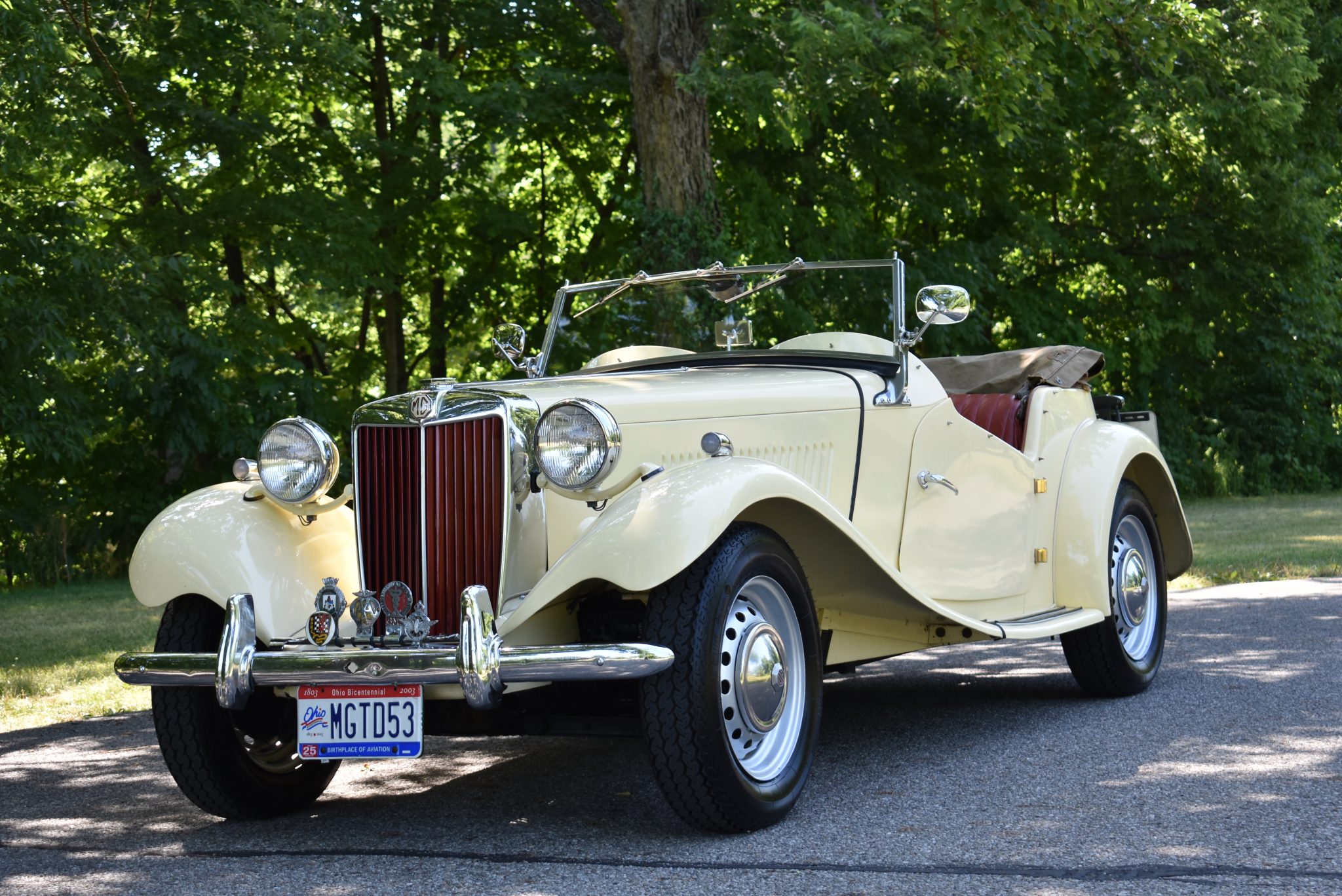 The steel wheels were refinished in silver and fitted with Vredestein Spring Classic tires in 2017. Chrome MG-branded hub caps are fitted all around, including on the rear-mounted spare.