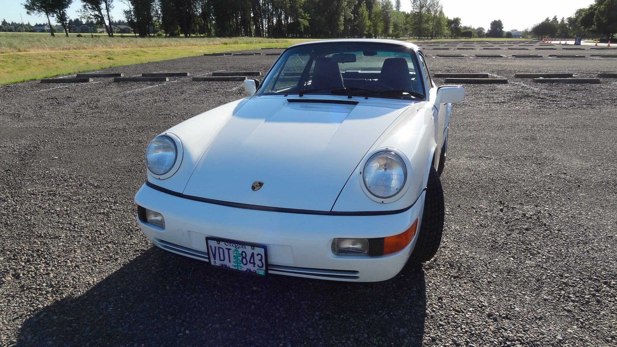 Factory 16” wheels are wrapped in 205/55 and 225/50 Kelly Charger tires that are in need of replacement due to age. Stopping power is provided by four-wheel discs and black calipers with white Porsche lettering up front.