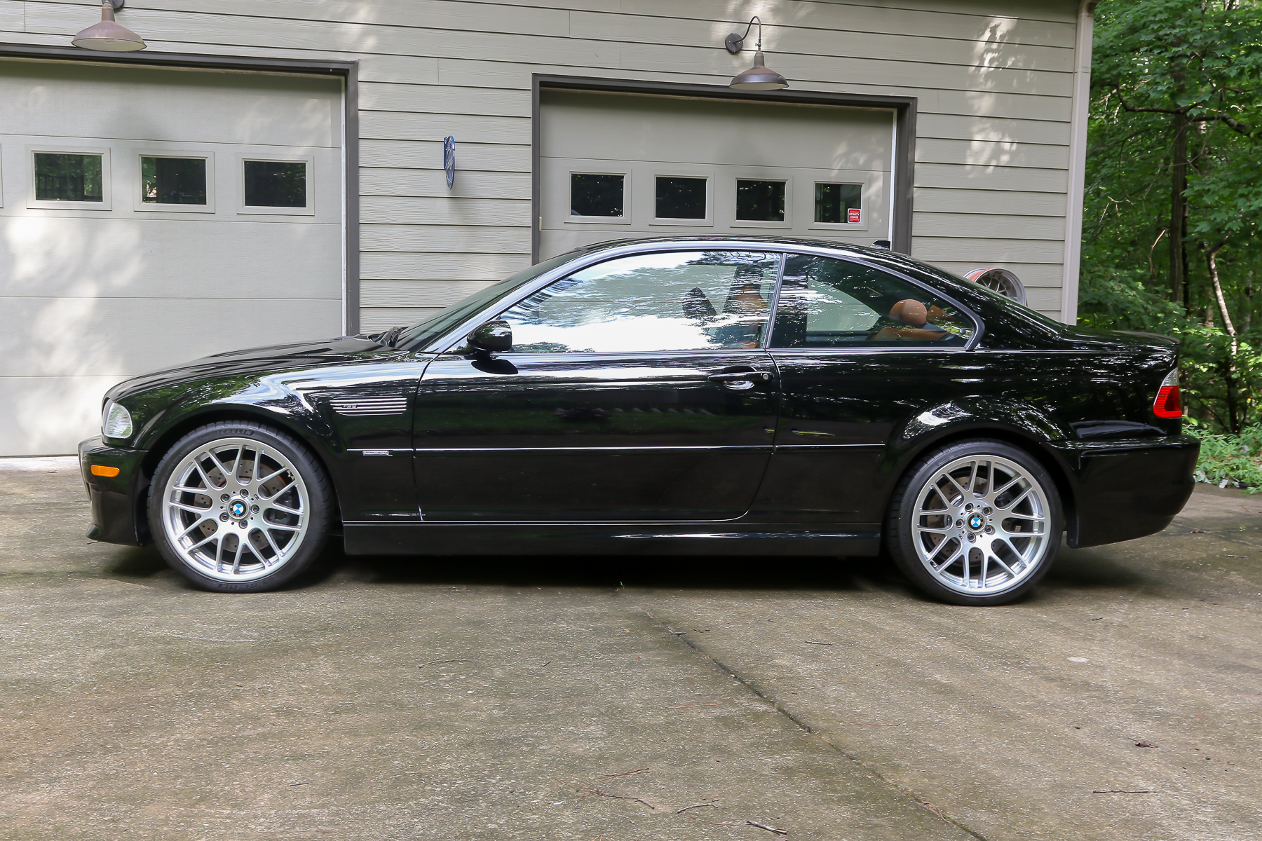 Factory 19″ BBS wheels wear 225/40 front and 255/35 rear Michelin Pilot Sport 4S showing 2019 and 2020 date codes. Competition Package features include cross-drilled brake rotors, a quicker-than-standard steering ratio, and revised Dynamic Stability Control programming. The seller states that new ZCP rotors, ceramic brake pads, and stainless steel braided hoses were installed in July 2020. An August 2020 inspection notes that the left front and right rear wheels are bent on the inner lip, and the invoice indicates that the bend did not affect balancing.