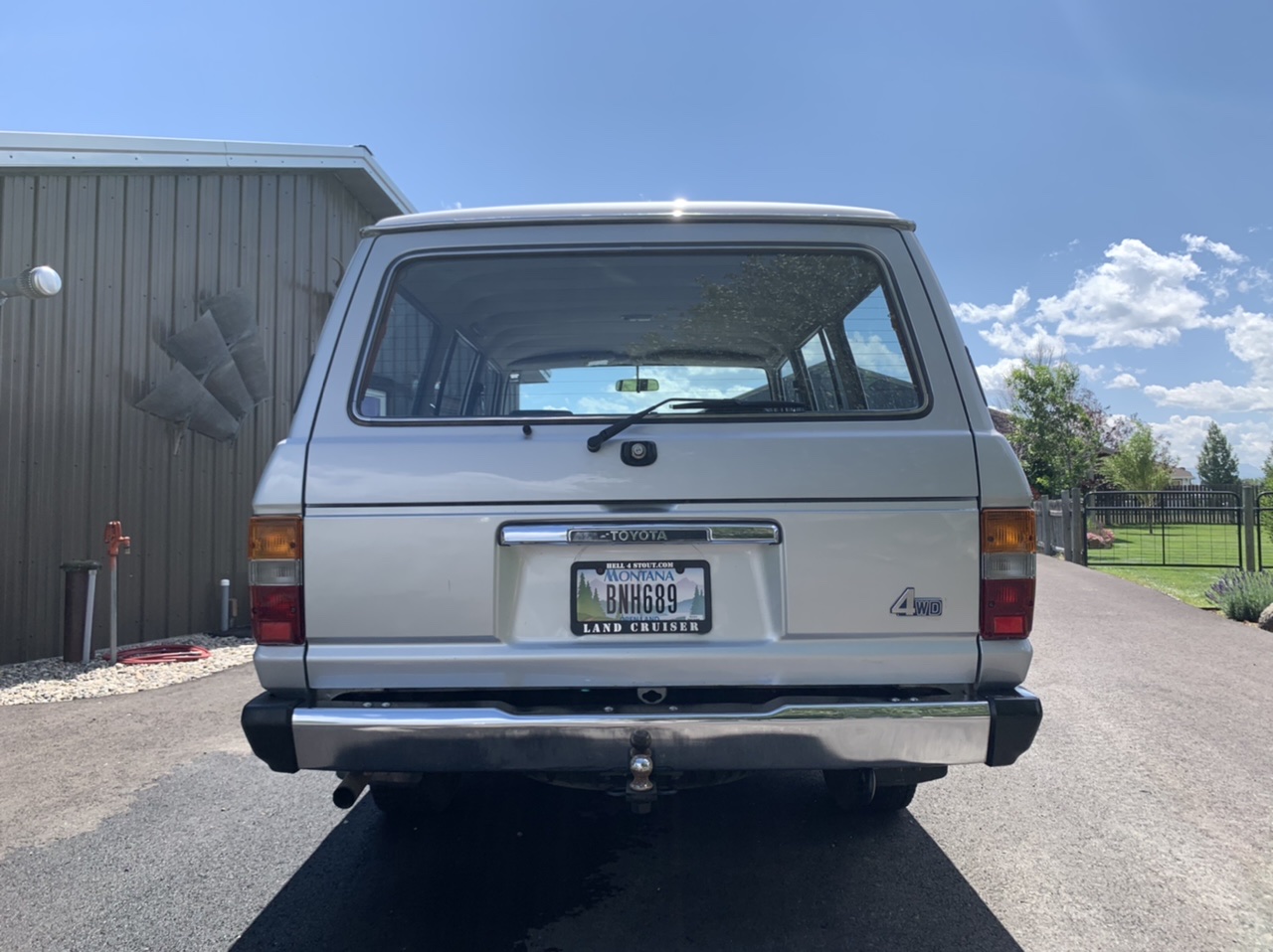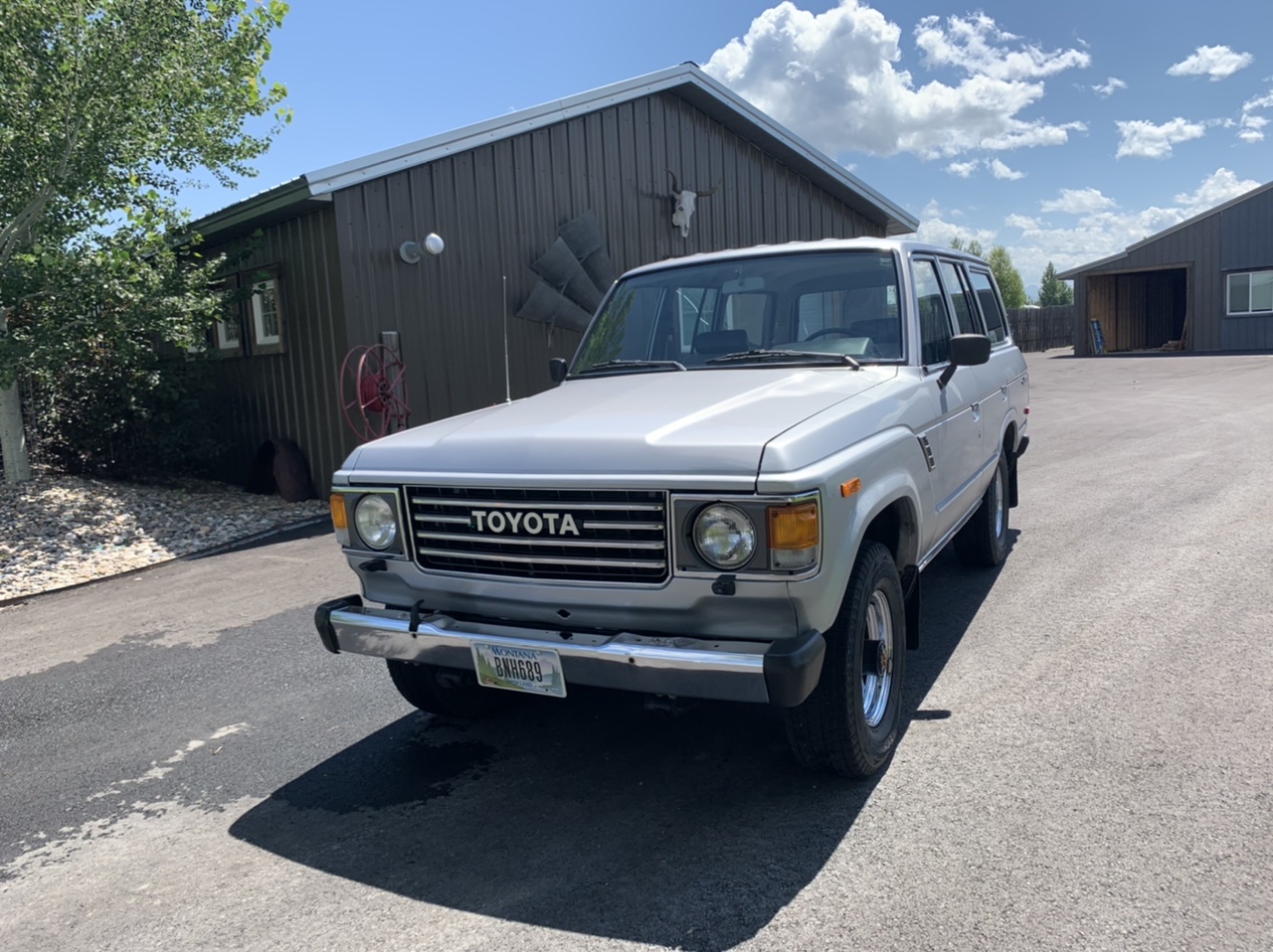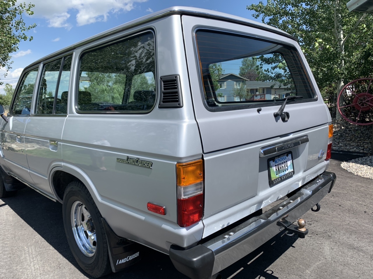 Polished 15″ steel wheels wear Bridgestone Blizzak tires, and a matching full-size spare is mounted behind the rear axle. The front axles were reportedly refurbished in June 2018 with replacement bearings, seals, and gaskets.