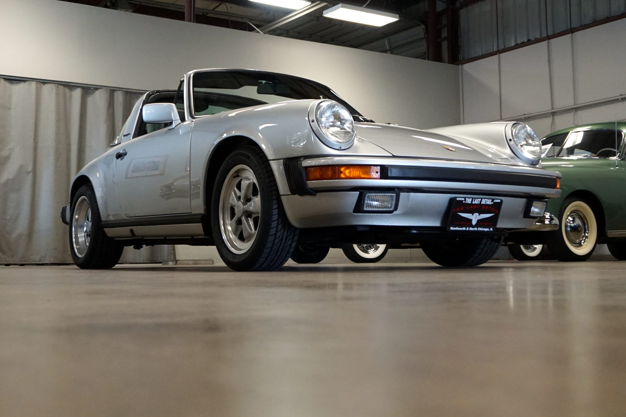 Staggered-width 16″ Fuchs wheels with color-matched spokes are wrapped in 205/55 and 225/50 Uniroyal Tiger Paw tires.