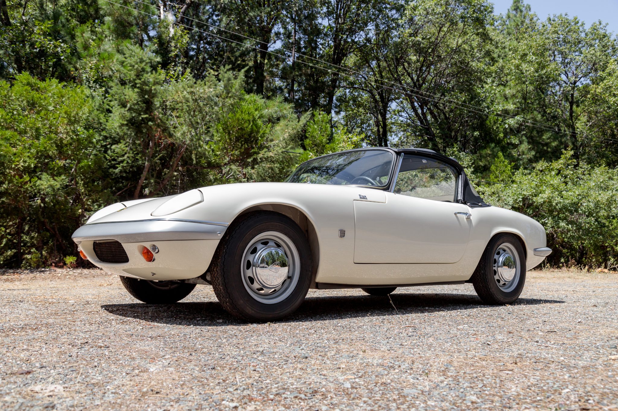 Ventilated 13″ steel wheels wear chrome Lotus-stamped covers and are mounted with 155-series Michelin XAS tires, which the seller mounted in June 2020. The suspension and brakes were overhauled by the previous owner, at which point replacement factory control arms were installed.