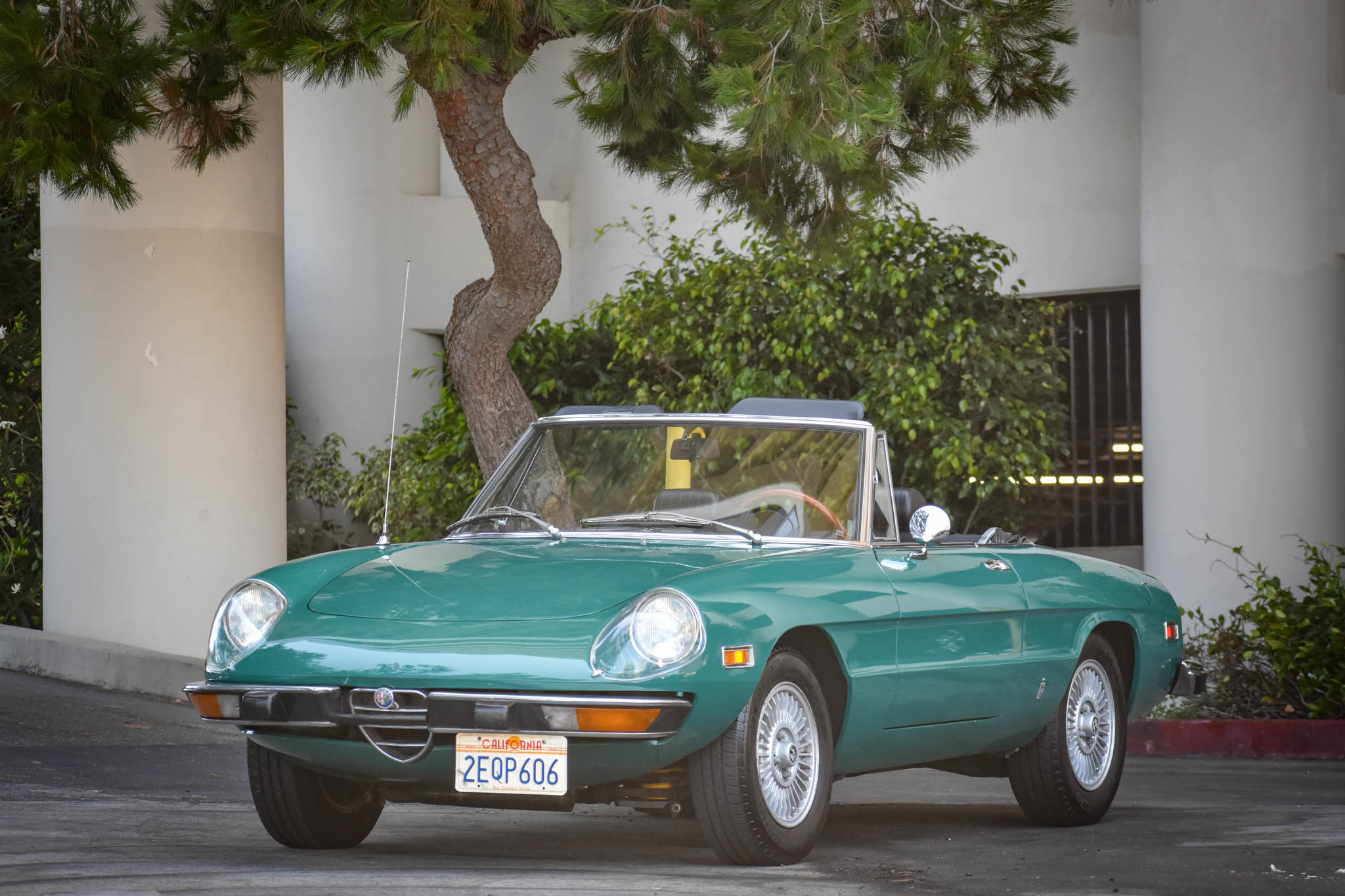 Silver 14″ Campagnolo wheels wear Alfa Romeo center caps and were fitted with 185/70 Michelin Defender tires in 2015. The suspension was overhauled with new springs, bushings, and dampers in 2001 at 65k miles, and new front lower control arm bushings were installed in 2016. The convertible top has been replaced and is shown both raised and lowered in the image gallery.