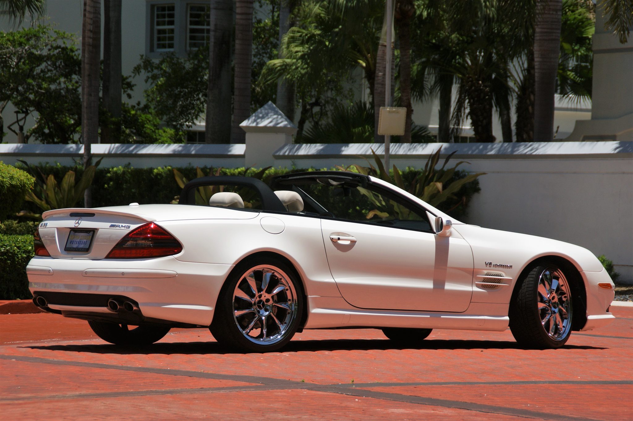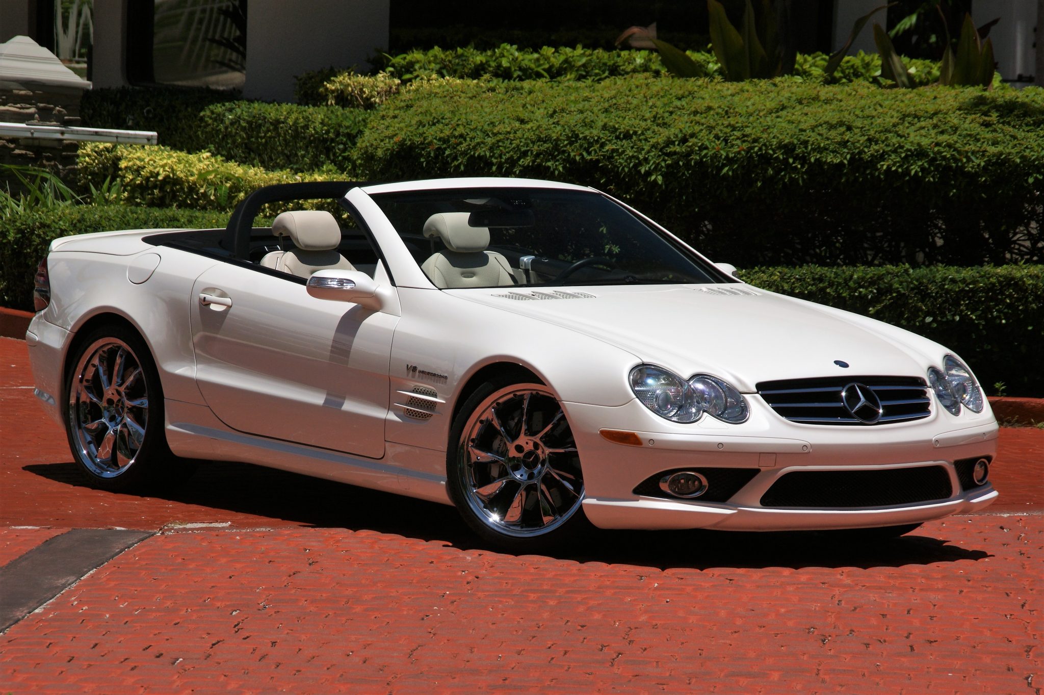 Chrome 20″ nine-spoke wheels have been added and are mounted with Continental ExtremeContact tires. The AMG Compound Braking System features cross-drilled rotors fitted with silver AMG-branded calipers, and the car is equipped with Active Body Control and traction control.