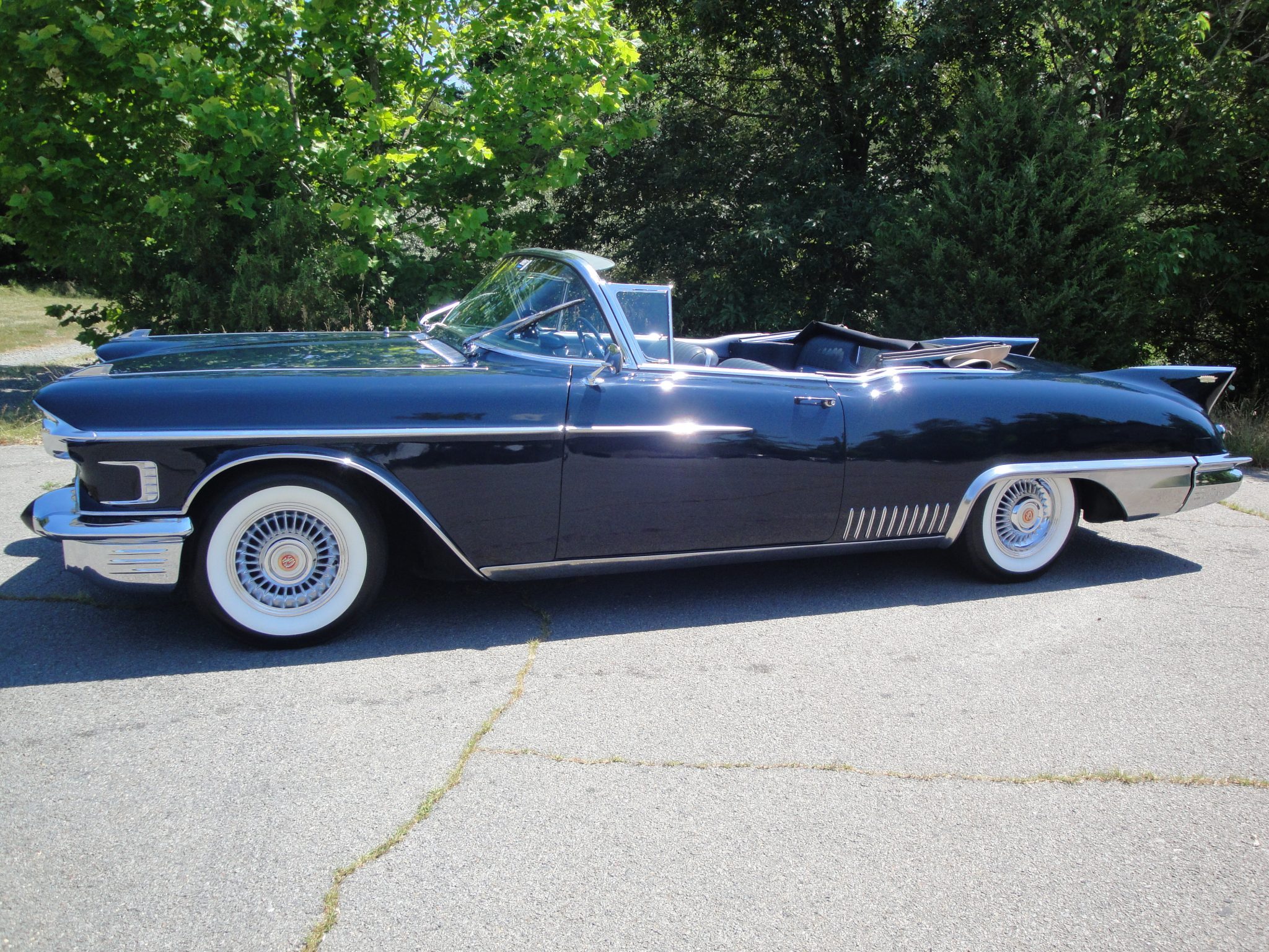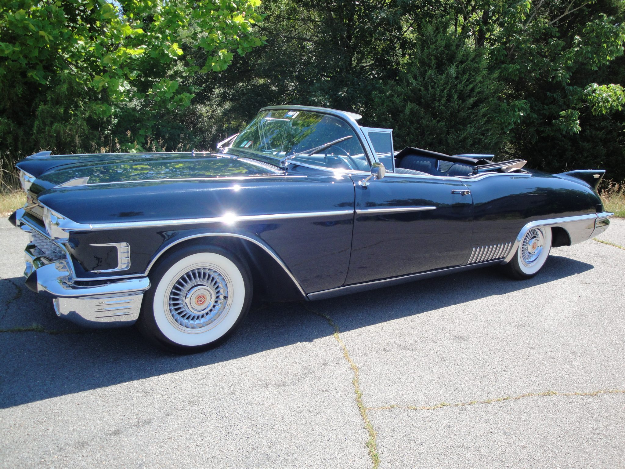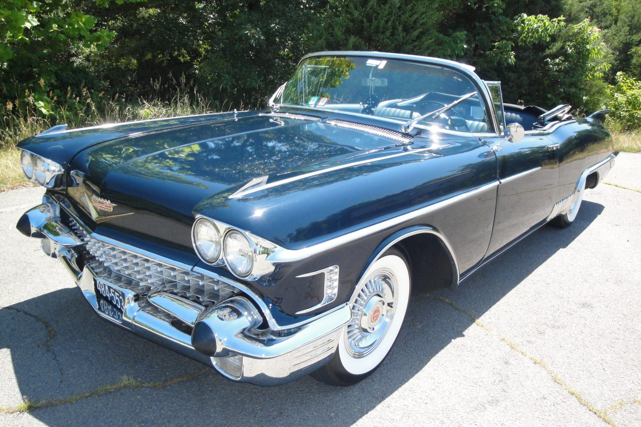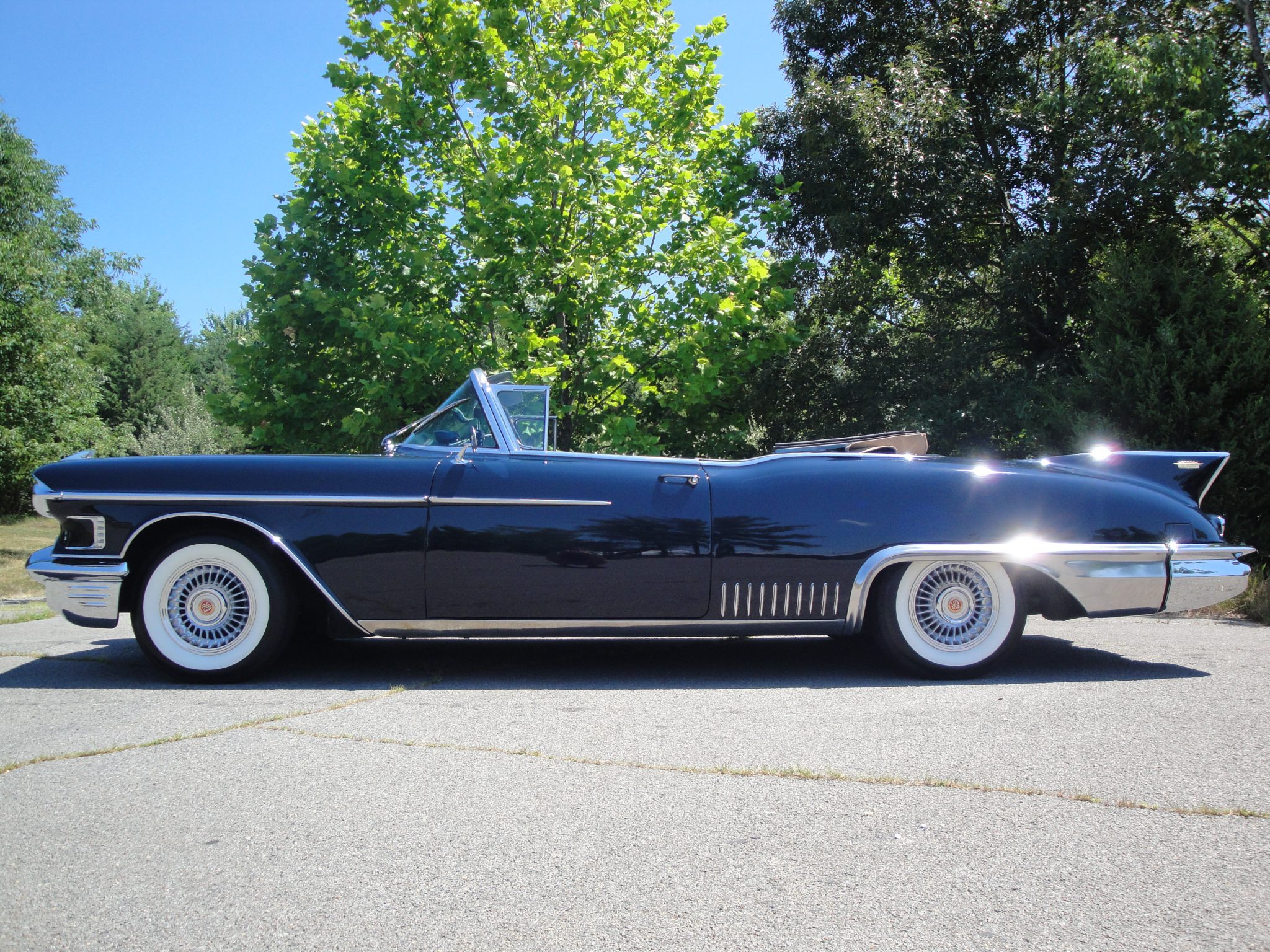 Factory Sabre-Spoke wheels measure 15″ in diameter and are fitted with wide whitewall tires. The Eldorado utilizes a coil-spring front suspension with a live rear axle on semi-elliptical leaf springs. Braking is managed by four-wheel power-assisted drums.