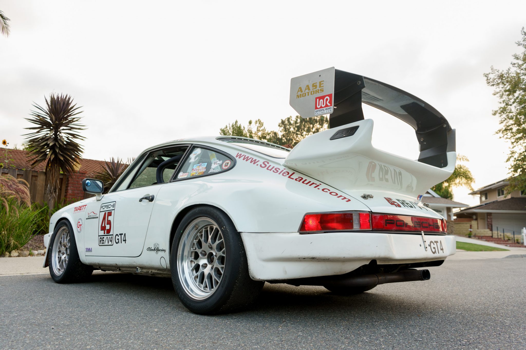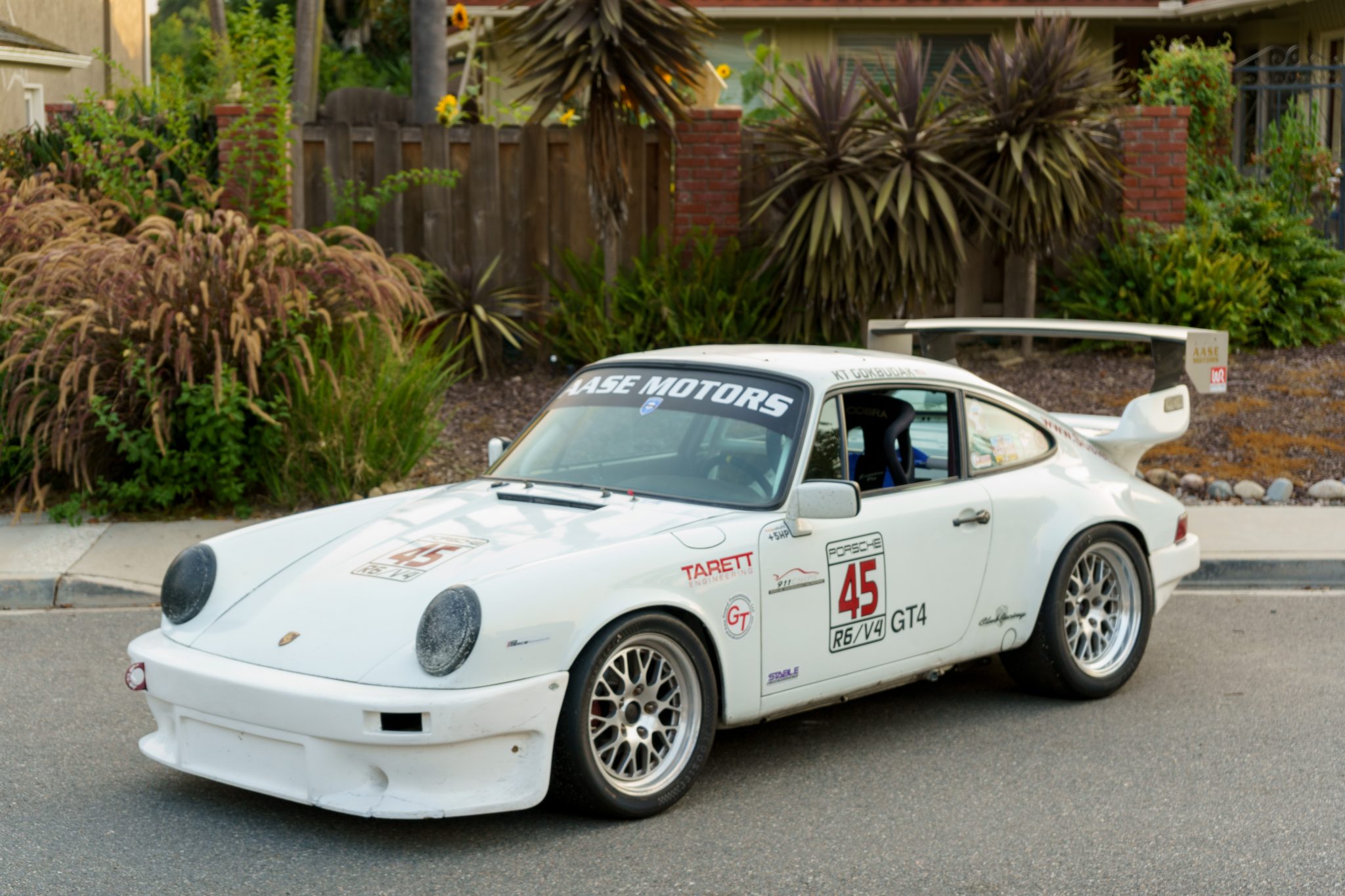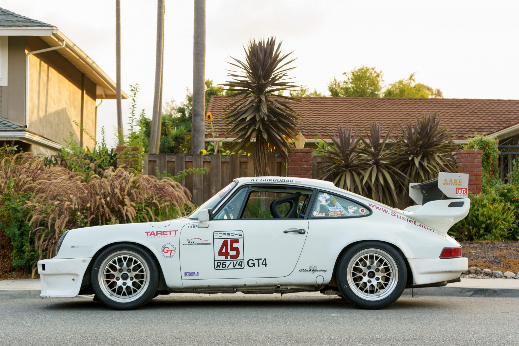 Fikse 17″ wheels measure 7″ up front and 9″ out back and wear Hoosier racing slicks. Suspension modifications include a front strut bar, Bilstein dampers, raised front spindles, Elephant Racing adjustable front camber plates, and Tarett Engineering sway bars. A battery cut-off switch is accessible from the front trunk.