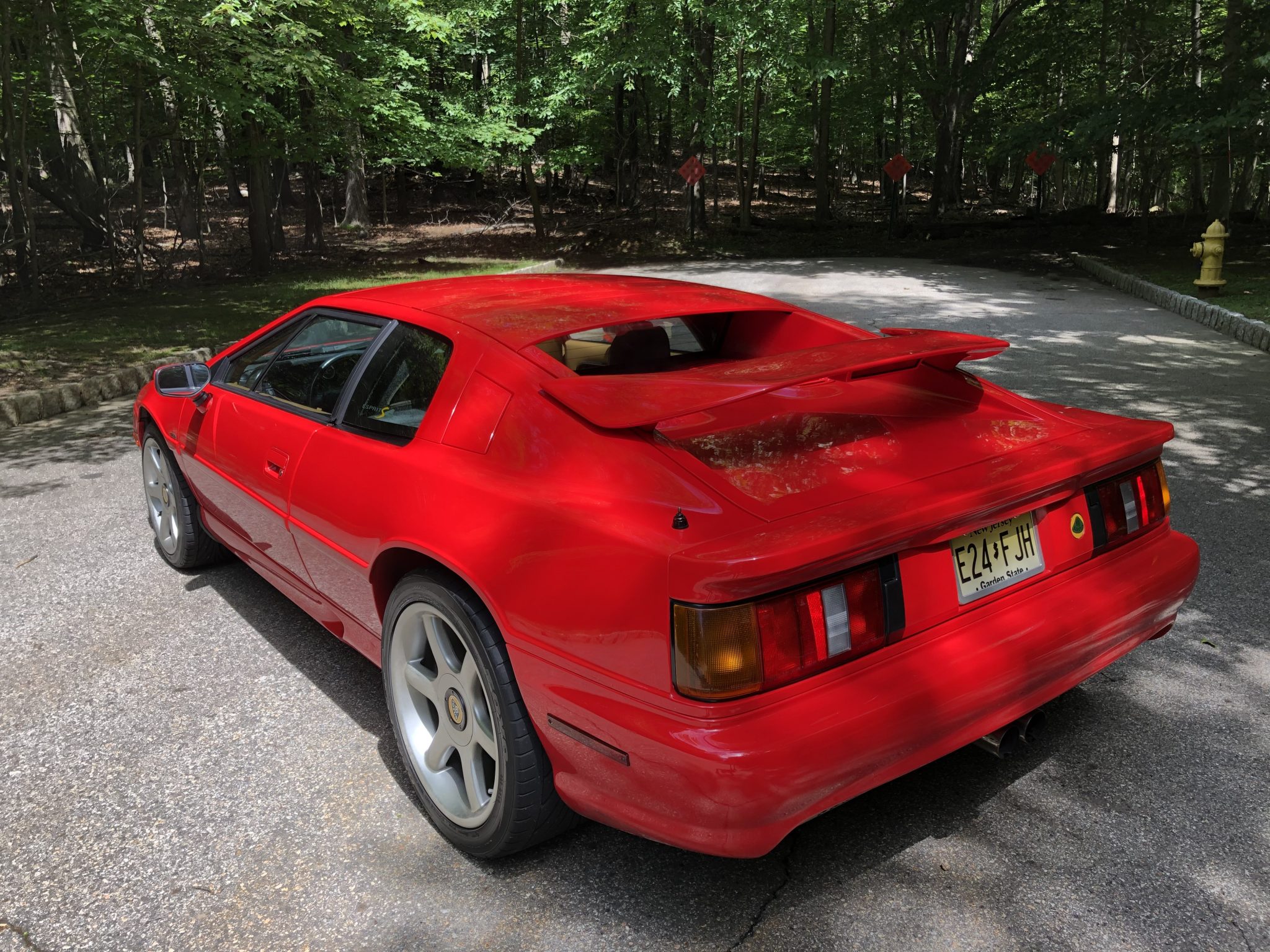 Staggered OZ Racing Saturn wheels from a V8 Esprit measure 17″ in diameter up front and 18″ out back and wear a set of Toyo Proxes T1R tires that show date codes from 2005. Spax adjustable shocks are fitted, and drilled and slotted front rotors with replacement pads were added in 2015.