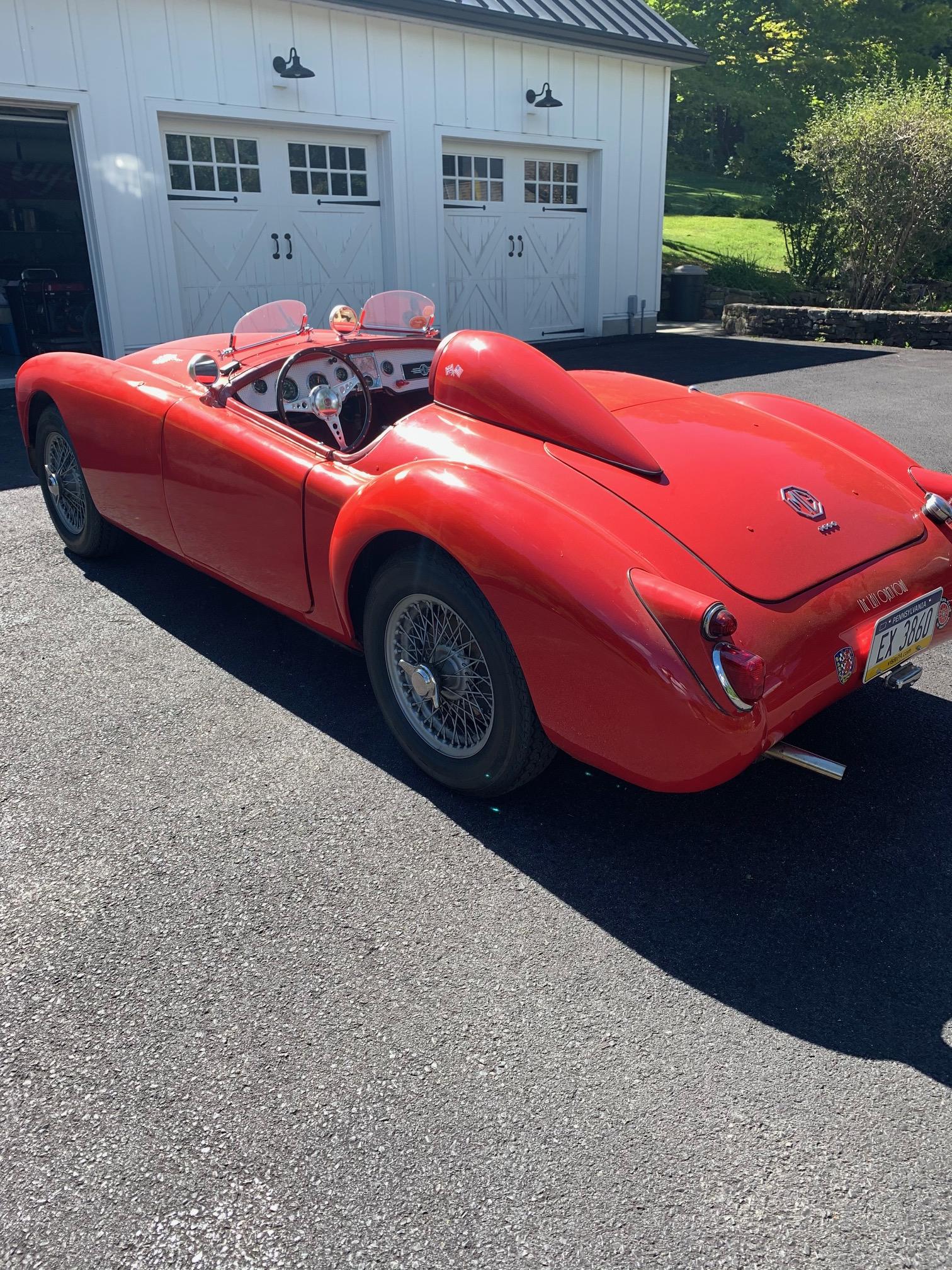 Silver-painted 15″ wire wheels wear two-eared knock-off spinners and are mounted with 165HR-15 Vredestein Sprint Classic tires that the seller installed. Work since 2018 is said to have included rebuilding the front brake calipers and rear wheel cylinders, replacing brake pads and shoes, and flushing the brake fluid.