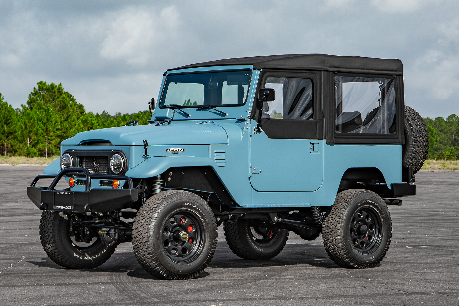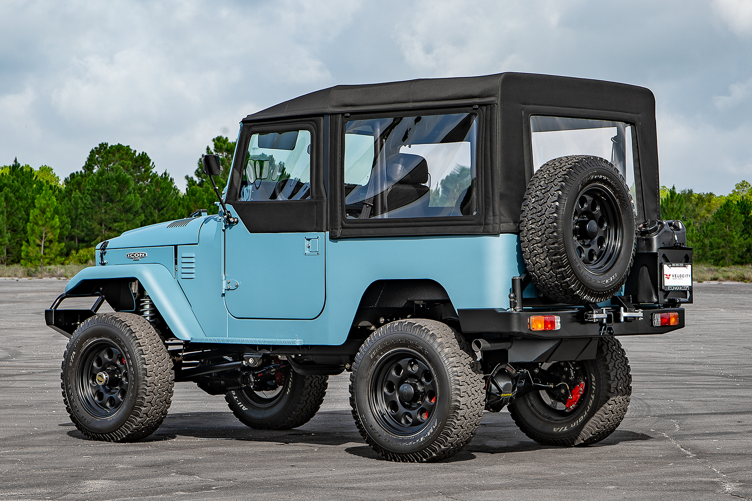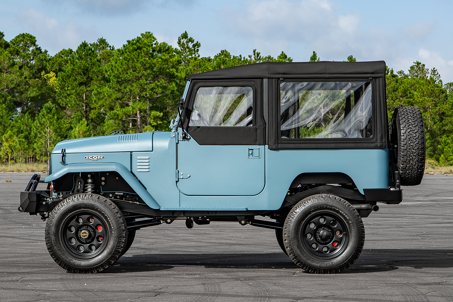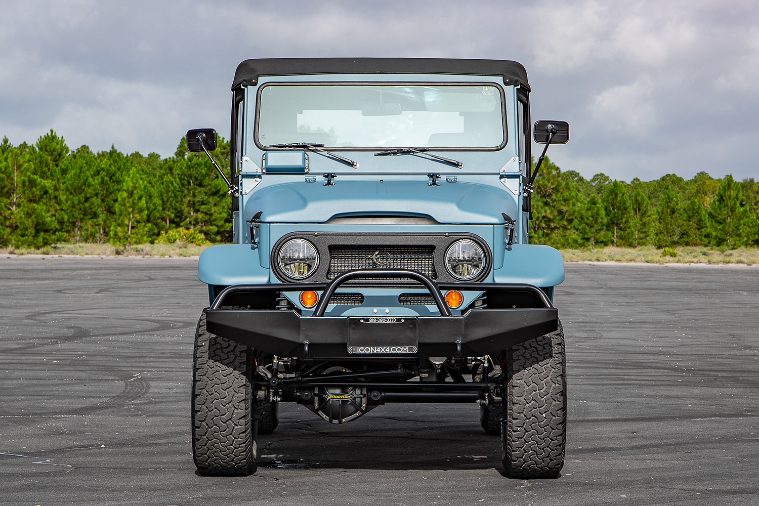 Satin black 17″ Black Rock wheels are wrapped in 265/70 BFGoodrich All-Terrain T/A tires. Braking is handled by four-wheel discs with slotted rotors and red “ICON”-scripted calipers. The truck rides on custom four-link front and rear suspension with Fox coilovers at all four corners.
