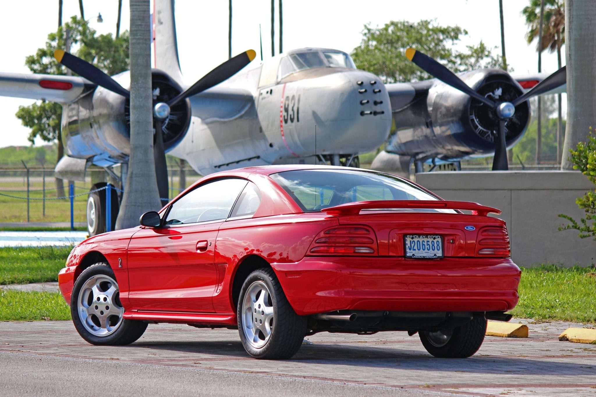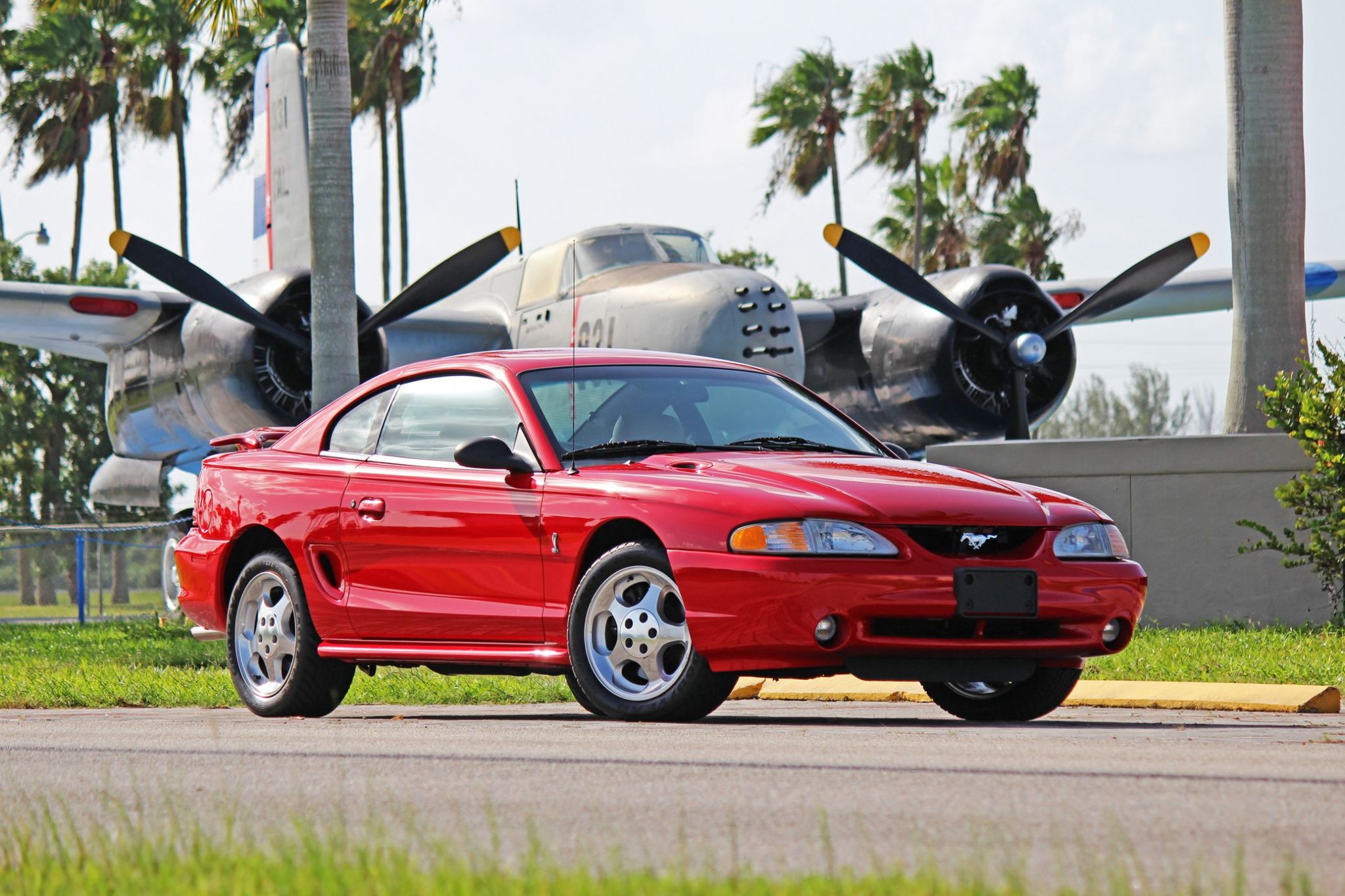 Factory 17″ Cobra wheels wear 255/45 Goodyear Eagle GS-C tires. Spring and damper rates were softened slightly from the contemporary GT, and a thicker sway bar was fitted in the rear to counter understeer. Braking is provided by dual- and single-piston front and rear brake calipers over vented rotors that measure 13″ up front and 11.4″ out back.