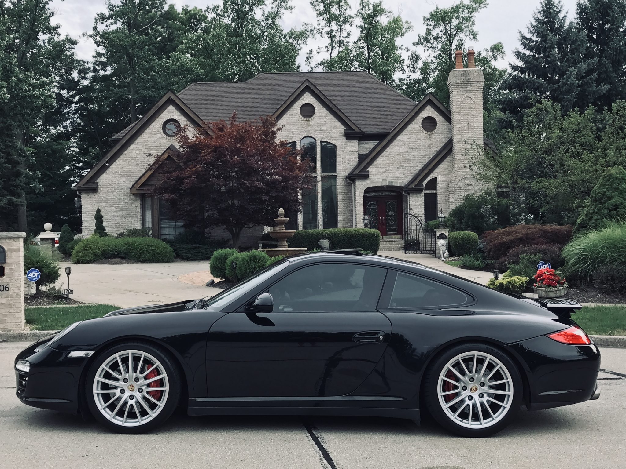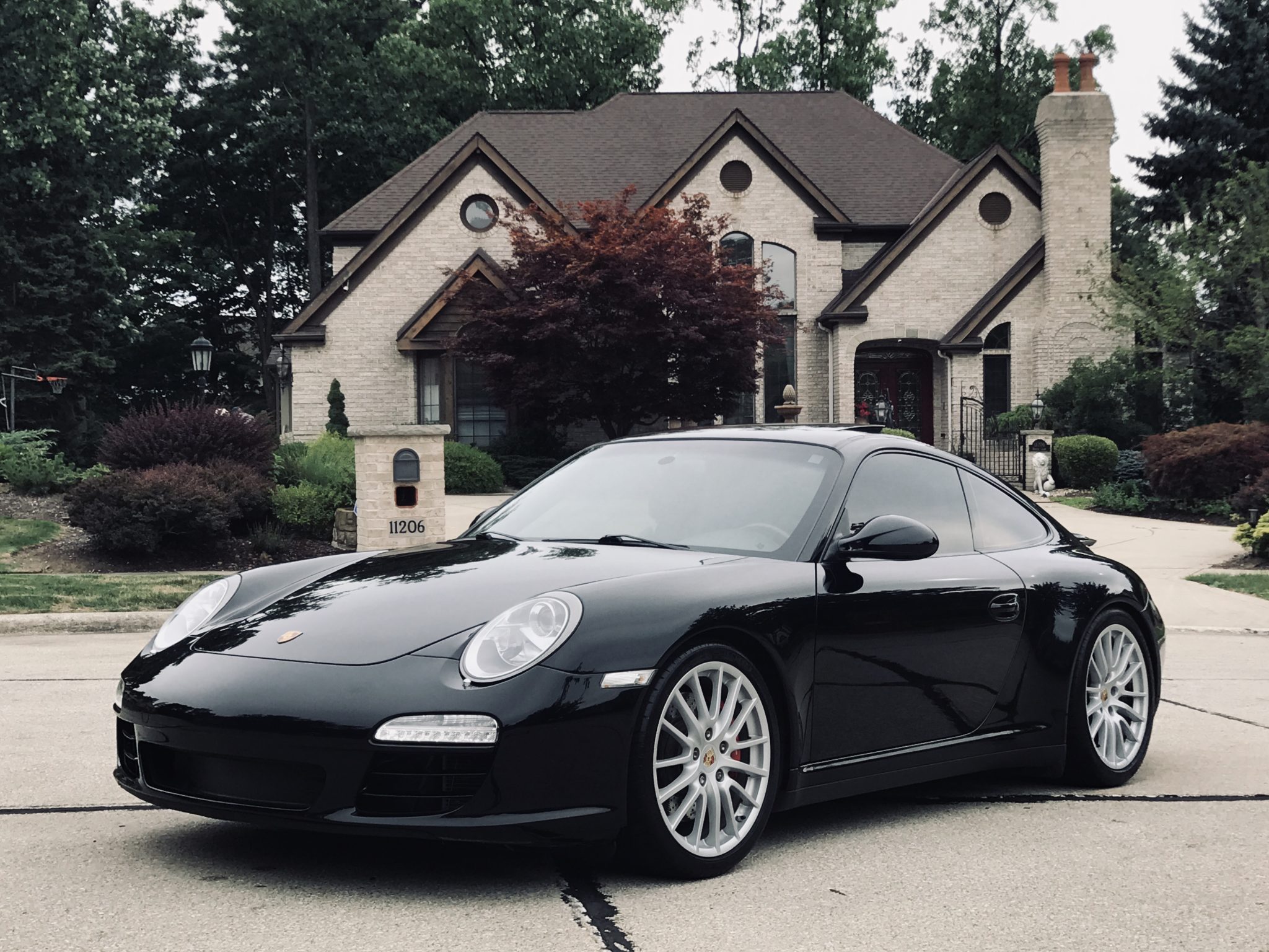 Sport Design 19″ wheels feature center caps with colored Porsche crests and wear Michelin Pilot Sport 4 tires measuring 235/35 up front and 305/30 out back, which the selling dealer states were recently installed. The suspension is modified with H&R springs and front and rear sway bars, and additional equipment includes red-finished calipers and cross-drilled rotors all around.