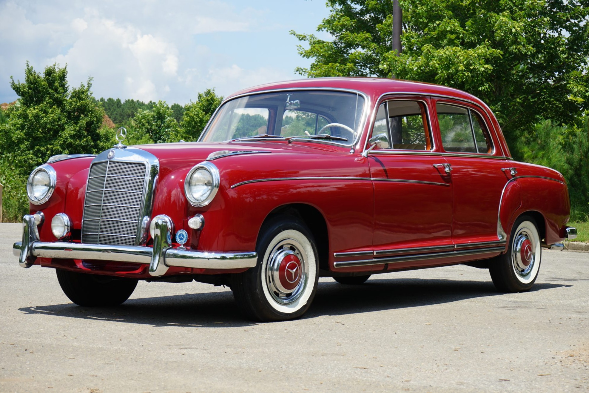 The 13” steel wheels wear chrome covers with body-colored centers. The selling dealer states that the whitewall tires are in need of replacement.