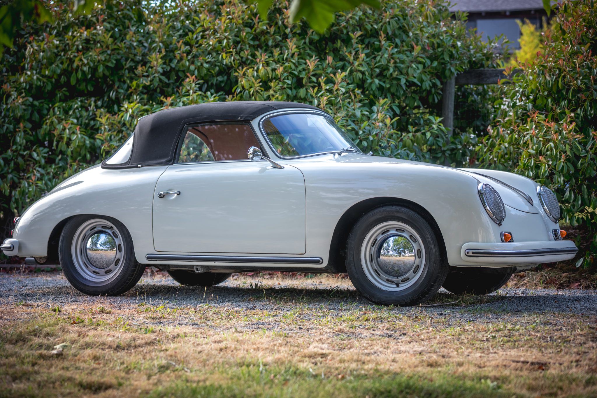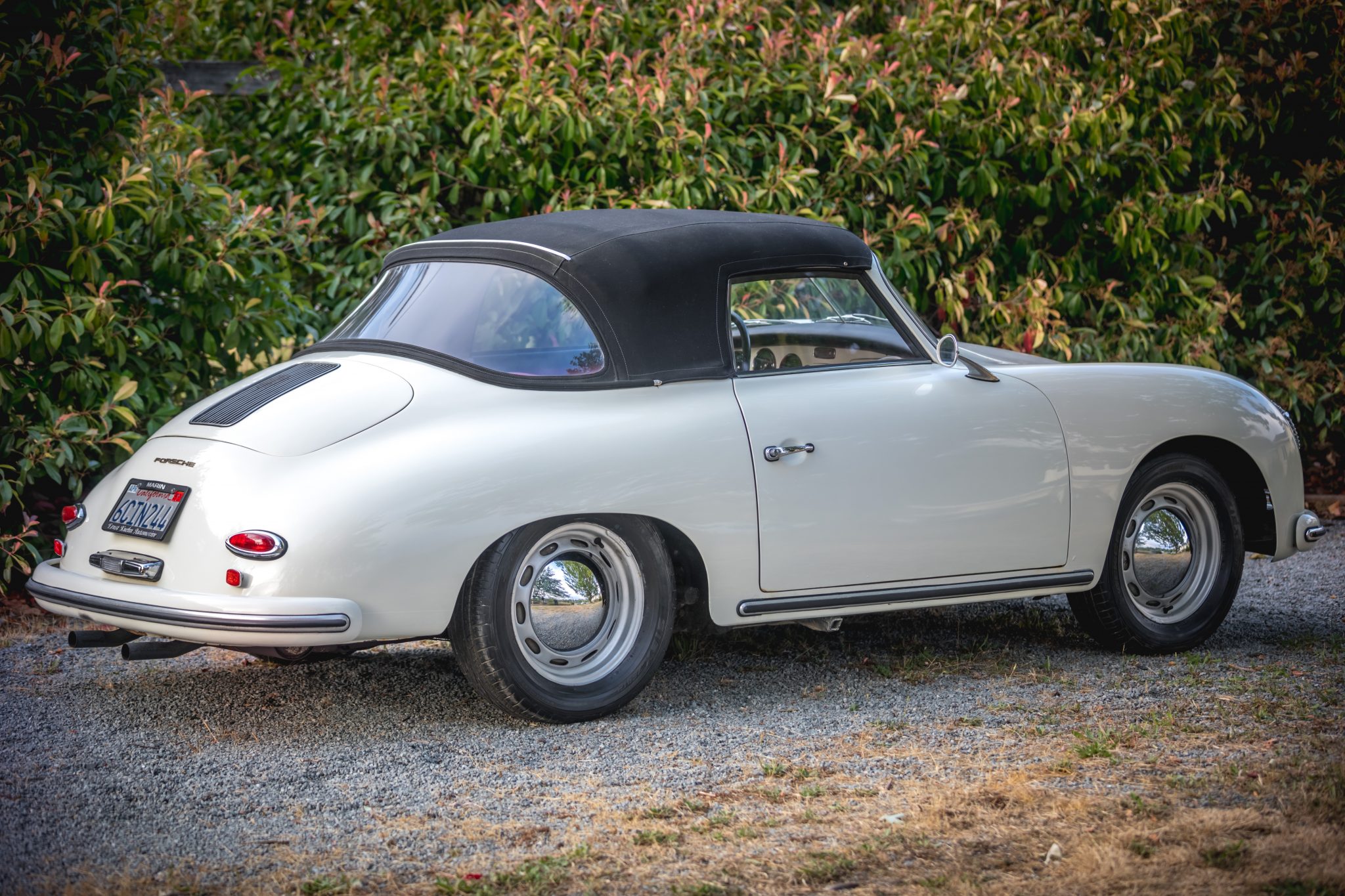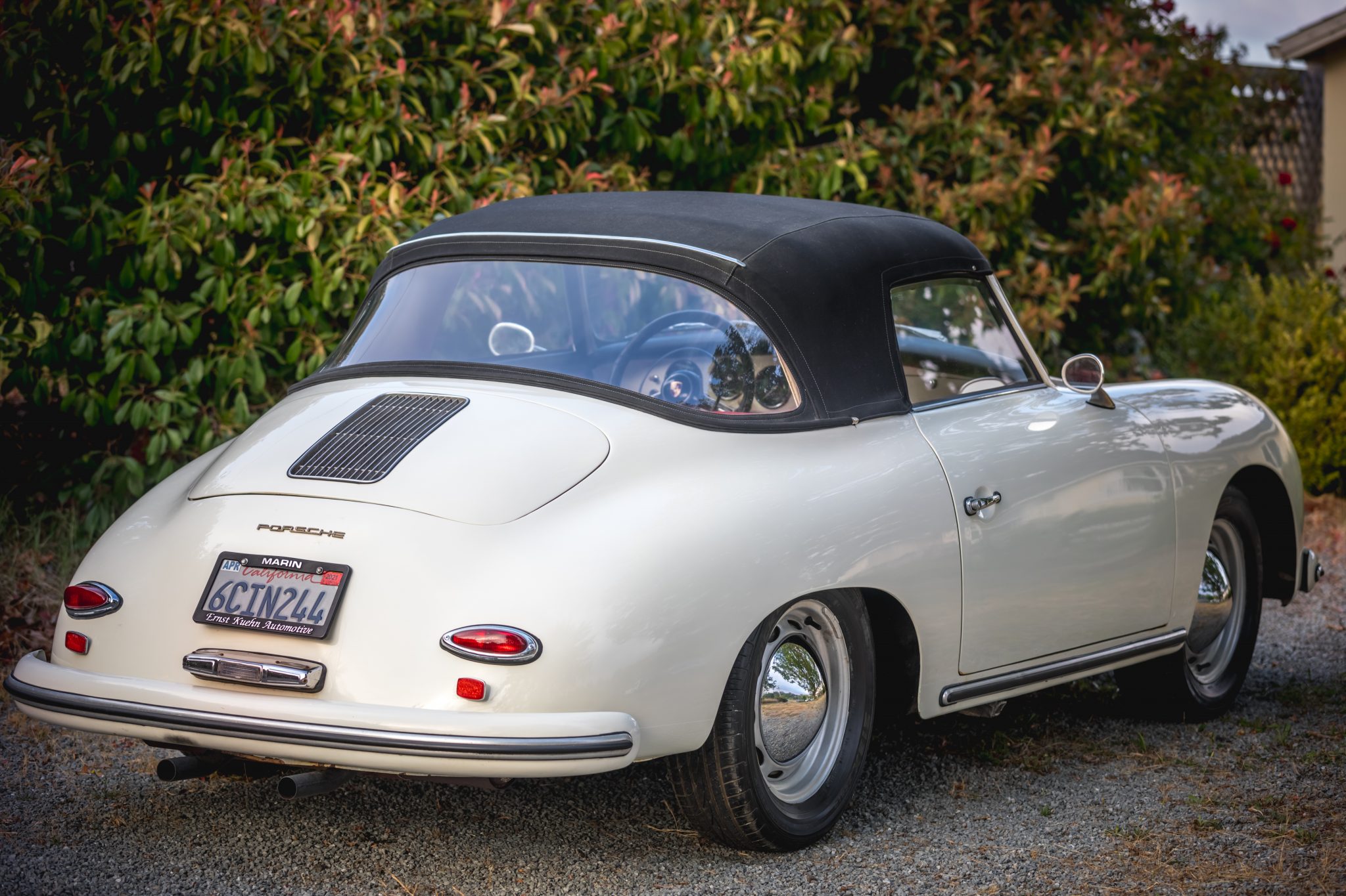 The black convertible top features a vinyl rear window and was installed during the 1989 restoration. Ventilated 15″ steel wheels wear chrome hubcaps and 195/65 Falken Ziex ZE912 tires. A chrome spare with Nexen rubber is housed in the front trunk. The seller describes a hard pedal as well as pulling to one side under braking.