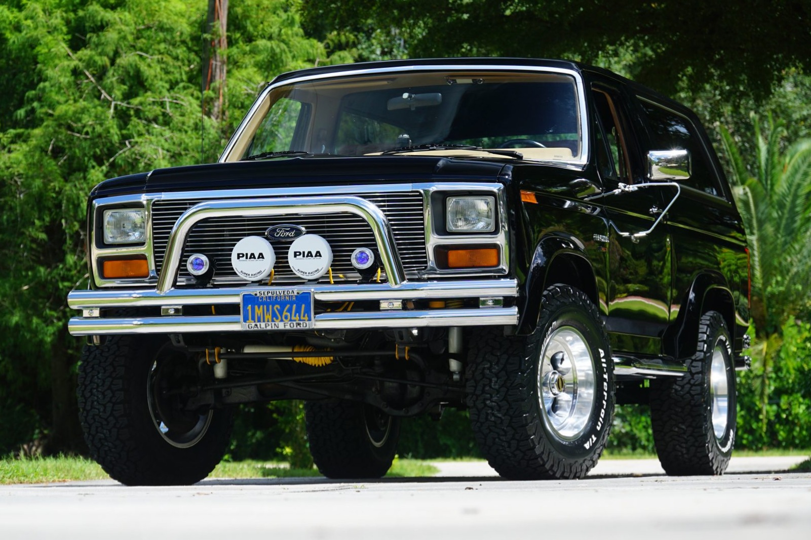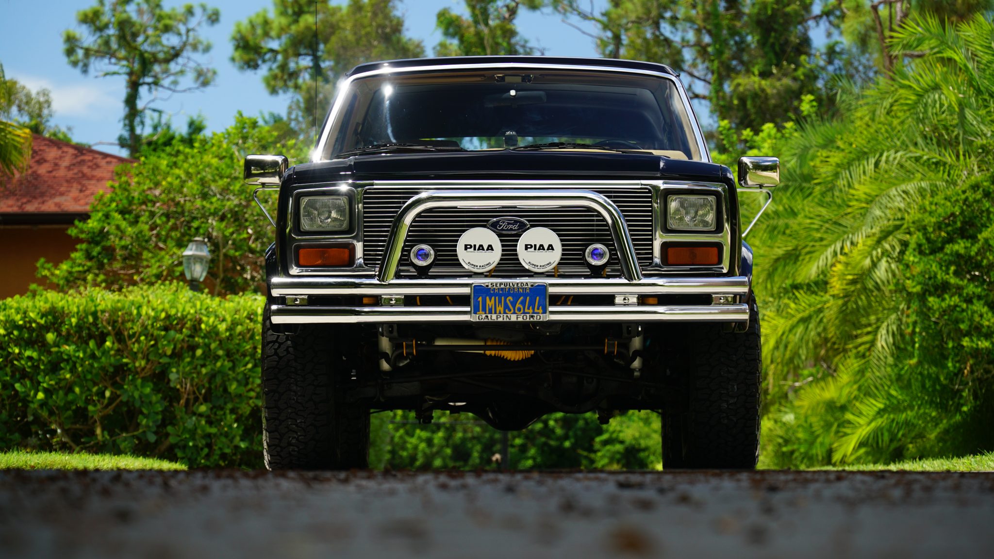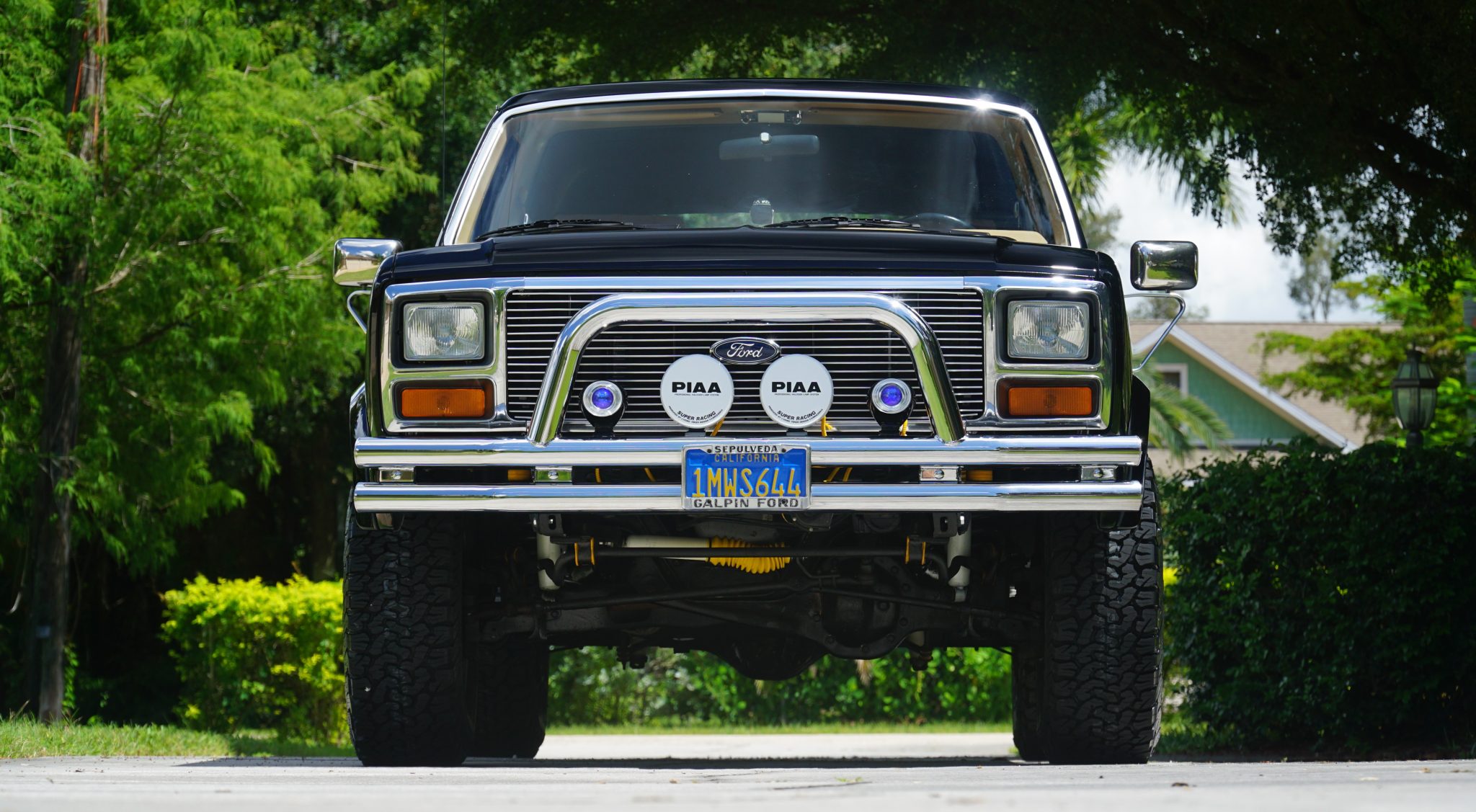 U.S. Mags Indy 17″ polished wheels are wrapped in 305/55 BFGoodrich All-Terrain T/A K02 tires that show 2019 date codes. A swing-out rear tire carrier houses a matching wheel and tire. Gabriel shocks are fitted, along with polyurethane body and suspension bushings. Braking is handled by front discs and rear drums.