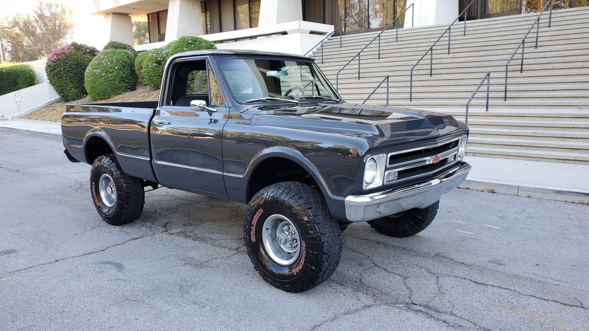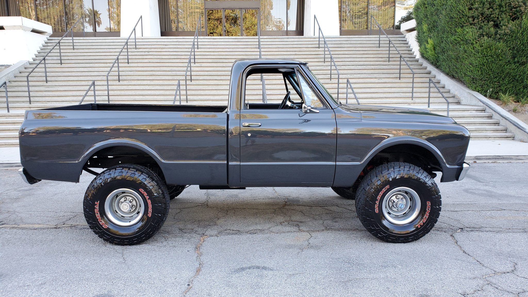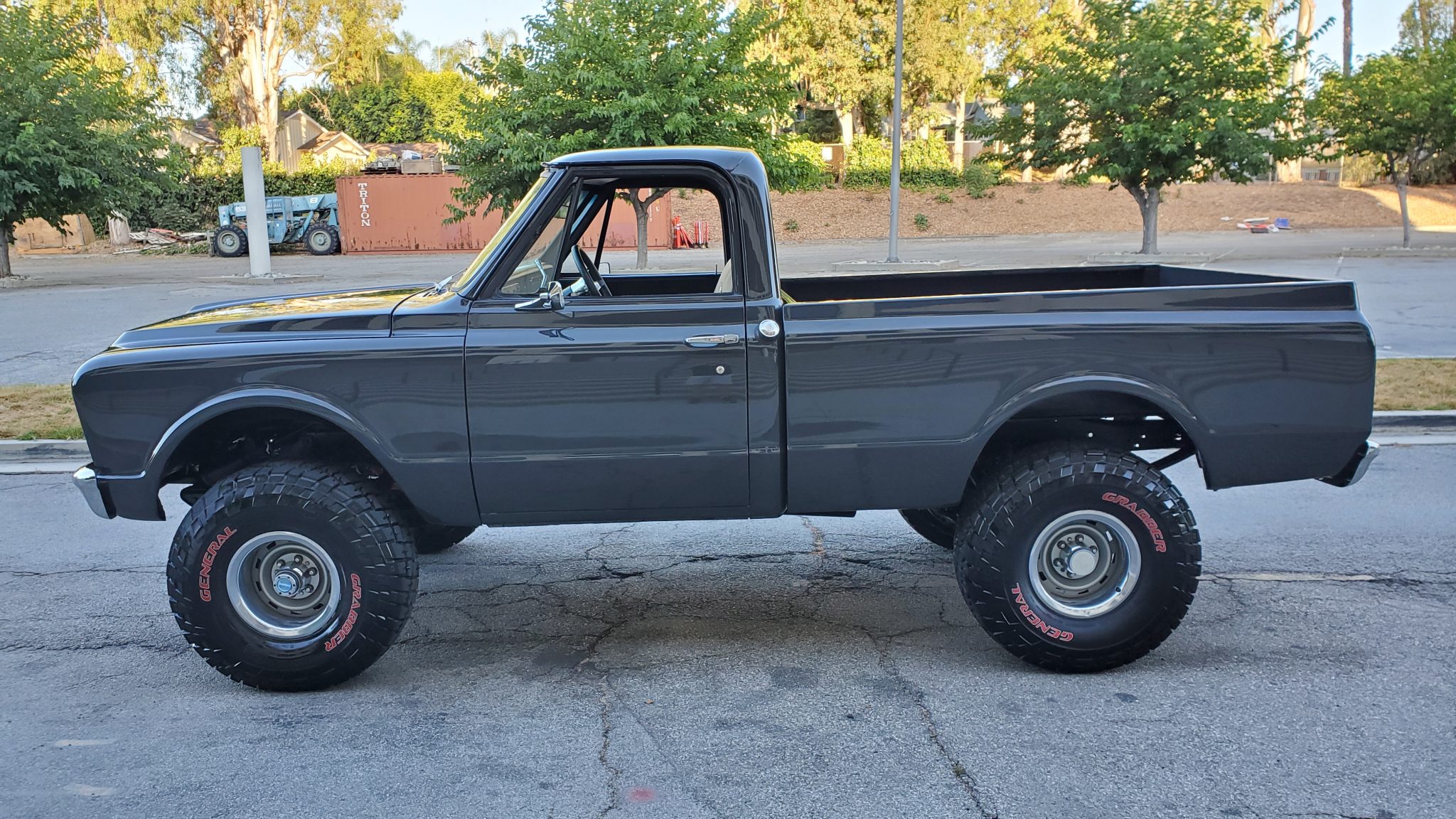 The truck was lifted to accommodate the 15″ steel wheels wearing 33″ General Grabber tires. Fitted equipment includes front disc brakes, manually locking front wheel hubs, and a Posi-traction 12-bolt rear end. Recent work is said to have included a rebuild of the steering box and the installation of a replacement brake master cylinder and booster assembly, rear brakes, brake lines, rear axle seals, and a rear differential cover.