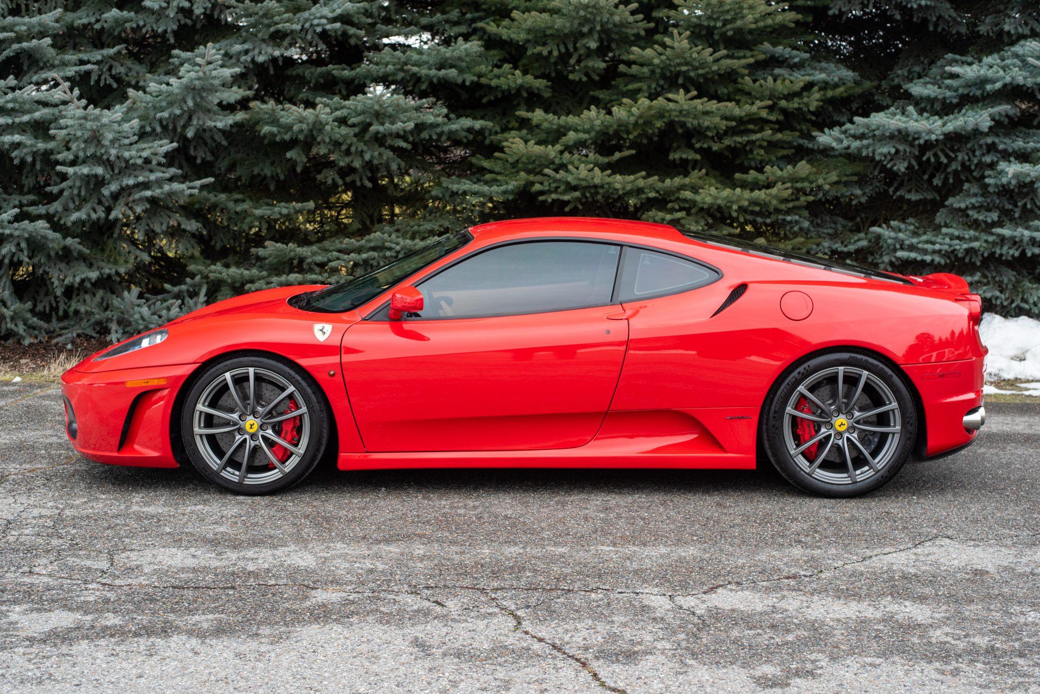 The car was previously fitted with center-lock wheels, which were replaced in 2020 with 19″430 Scuderia wheels that are fitted to the vehicle with titanium lug bolts. The Michelin Pilot Sport Cup 2 tires measure 235/35 up front and 285/35 out back. Stopping power is provided by red-painted brake calipers fitted over optional carbon-ceramic rotors at each corner. A brake fluid exchange was performed in May 2019 and a four-wheel alignment was completed in September 2020. A video showcasing the wheels and the carbon-ceramic brakes can be seen here.