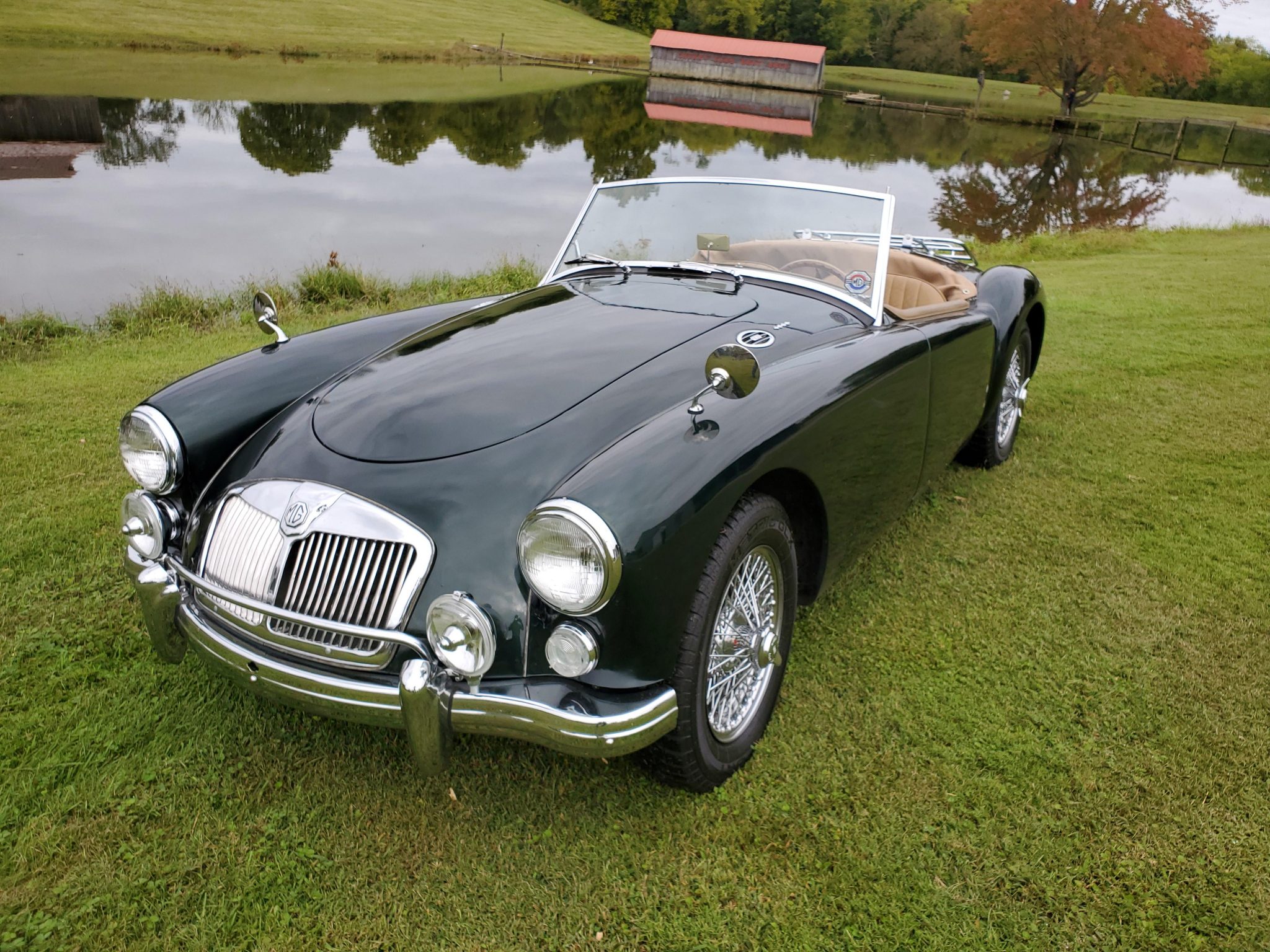 Chrome 15″ wire wheels are fitted with two-eared knock-off nuts and Metric GLX Sport tires. Braking is provided by discs up front and drums at the rear.