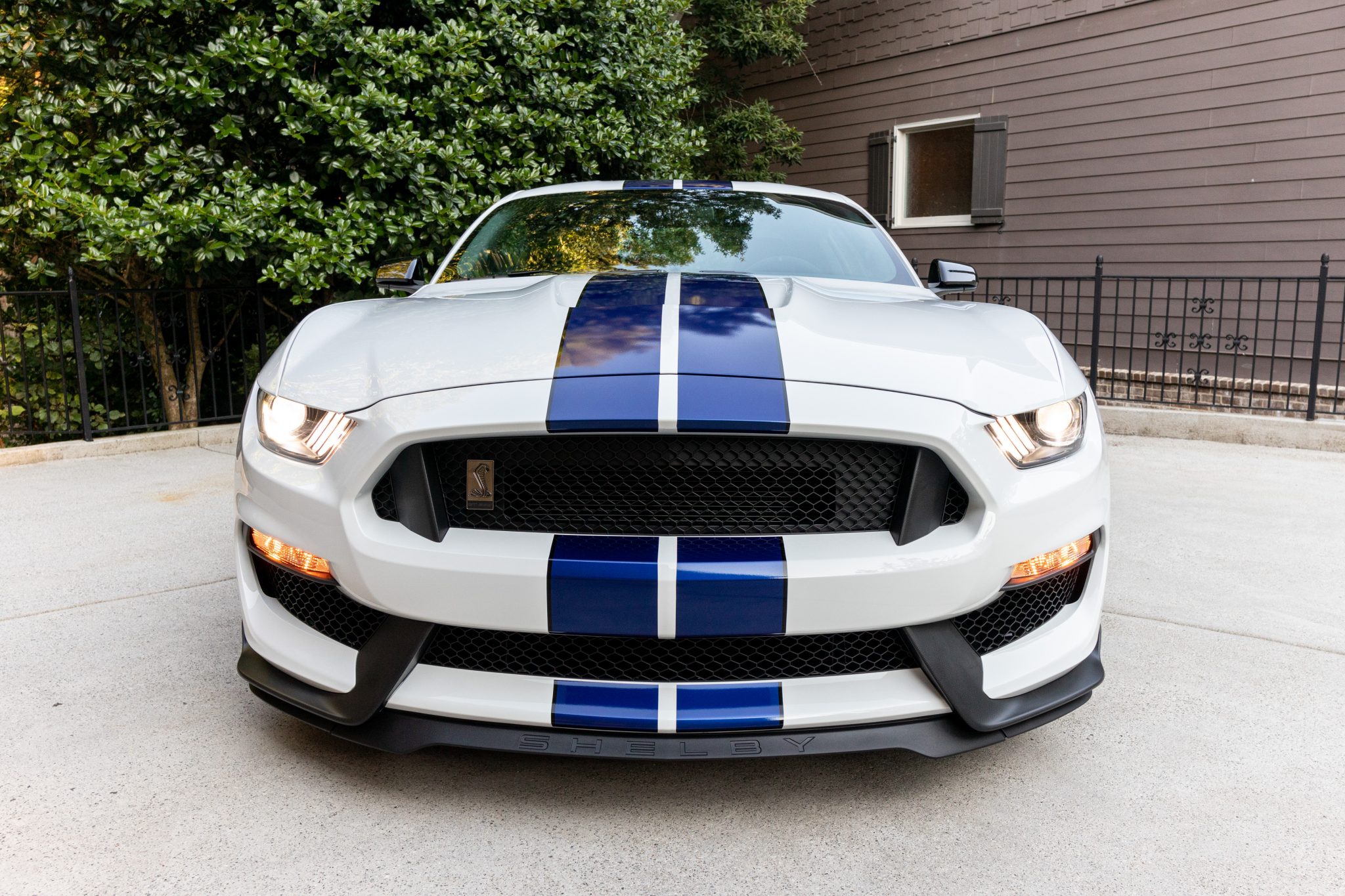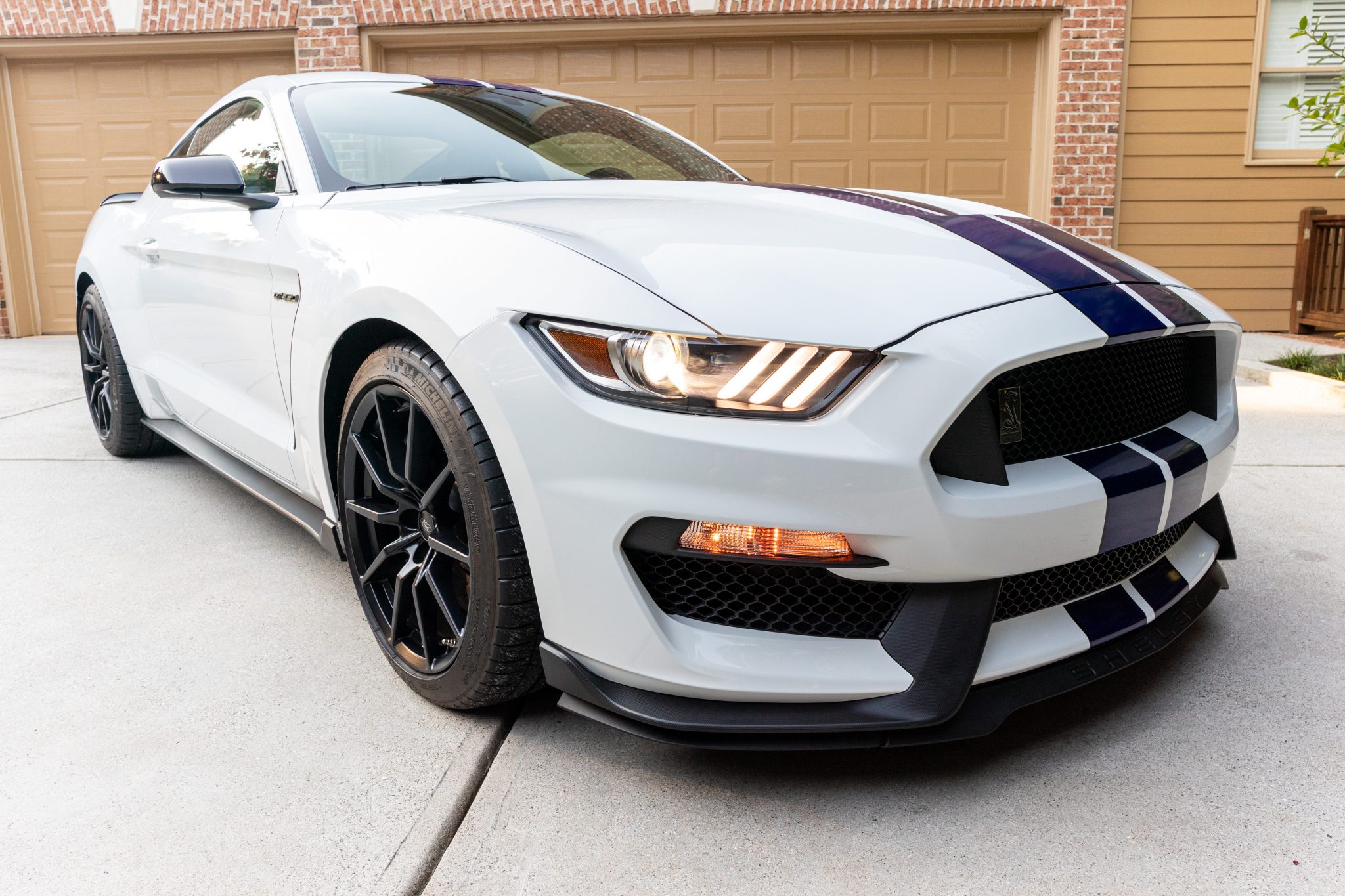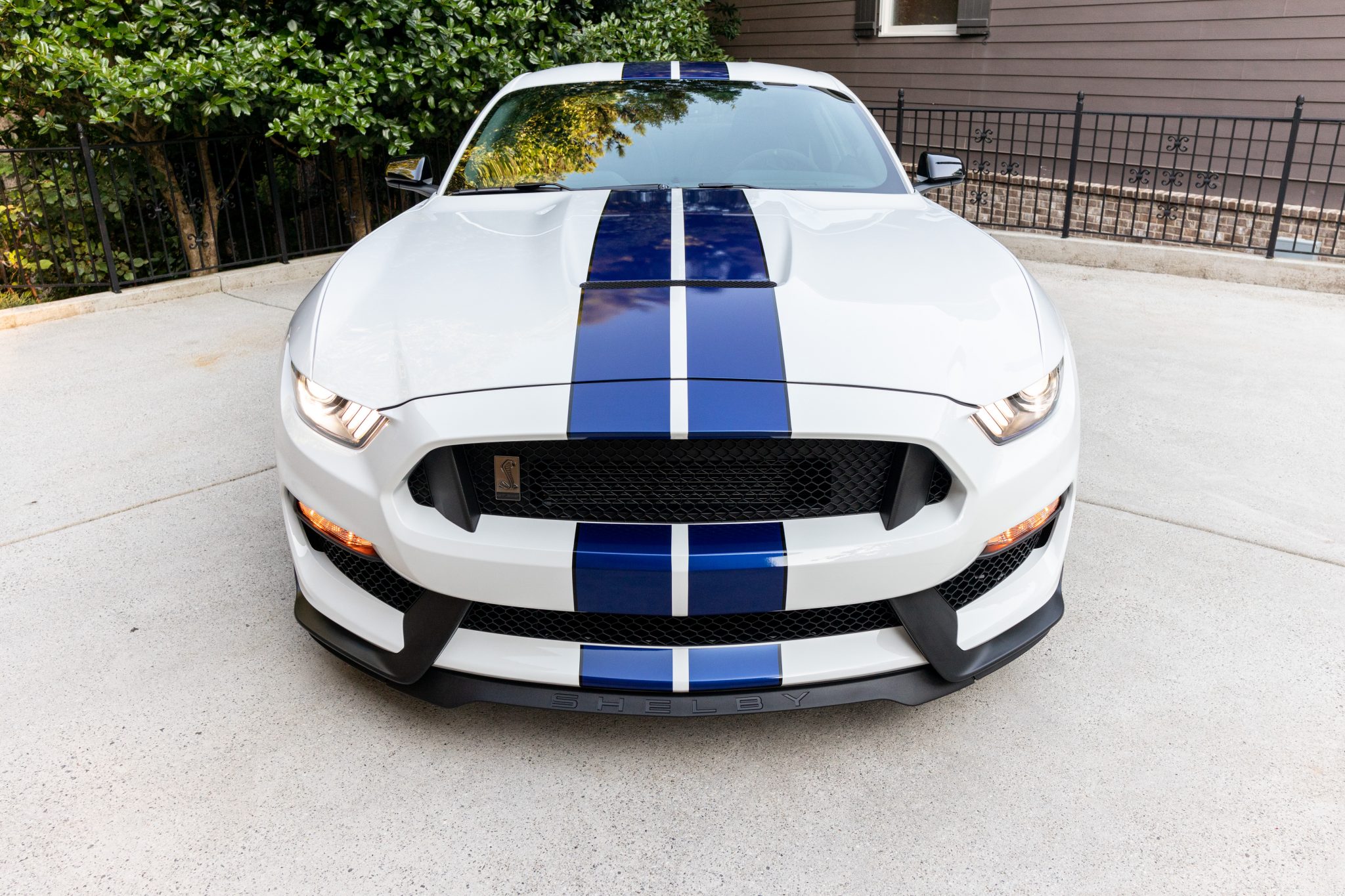 Oxford White w/Blue Racing Stripes
