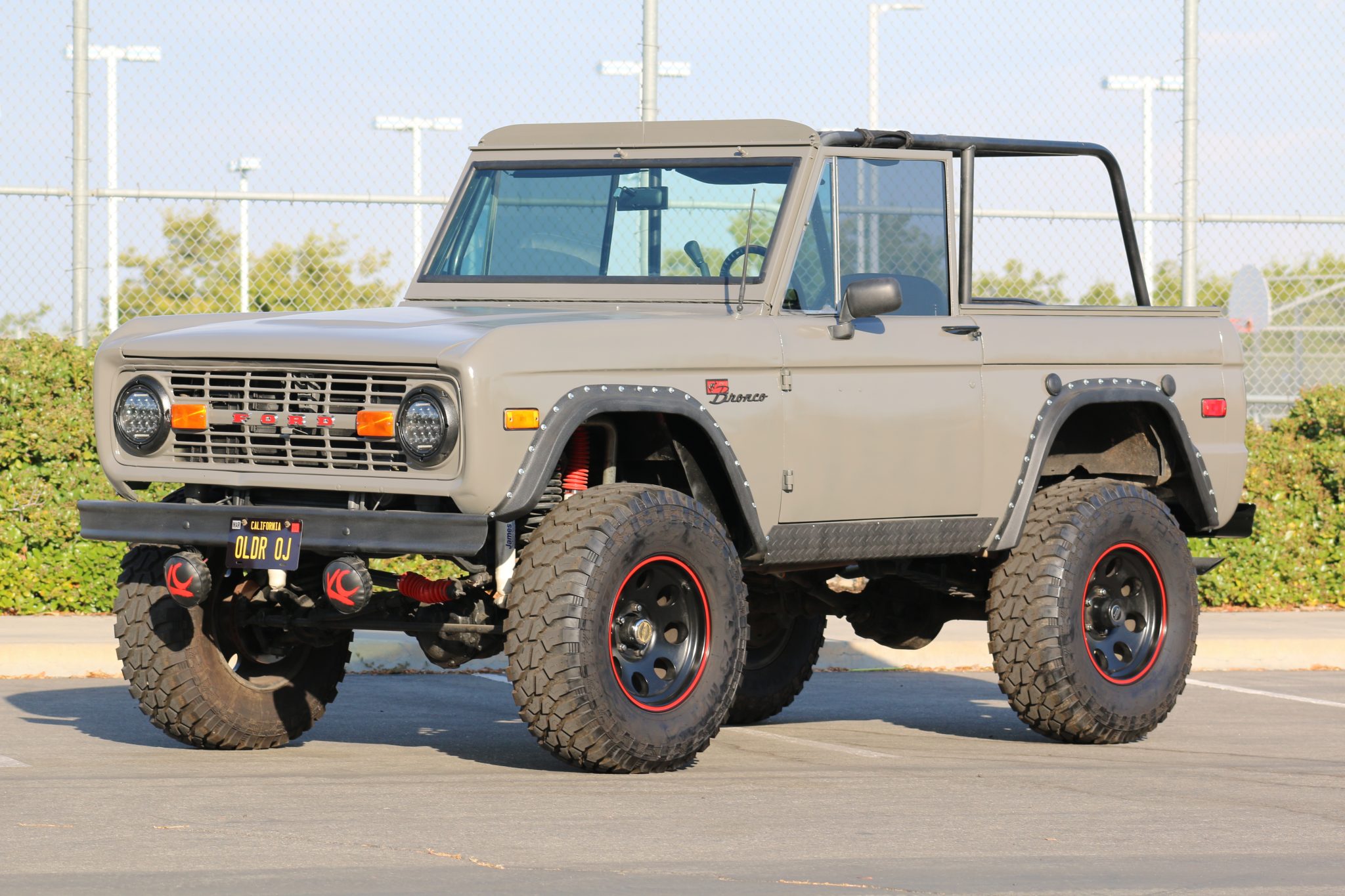 The truck has reportedly been lifted 5.5″ using a kit from Wild Horses to clear 35″ Kpatos FM523 M/T tires on black 17″ American Racing Baja wheels, which are mounted on 2″ spacers. Equipment includes power steering as well as power-assisted front disc and rear drum brakes. A Rampage soft top with tinted vinyl windows is said to be included in the sale.