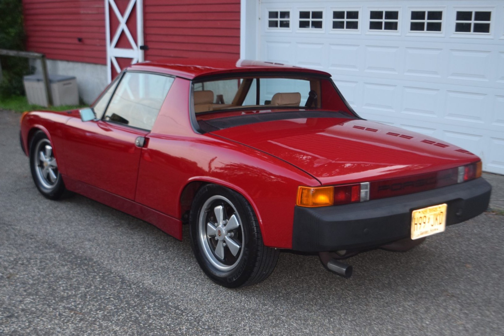 Polished 15″ Fuchs wheels with black recesses are mounted on five-lug hubs and wear Michelin Primacy MXV4 all-season radial tires. Bilstein shocks replace the stock versions.