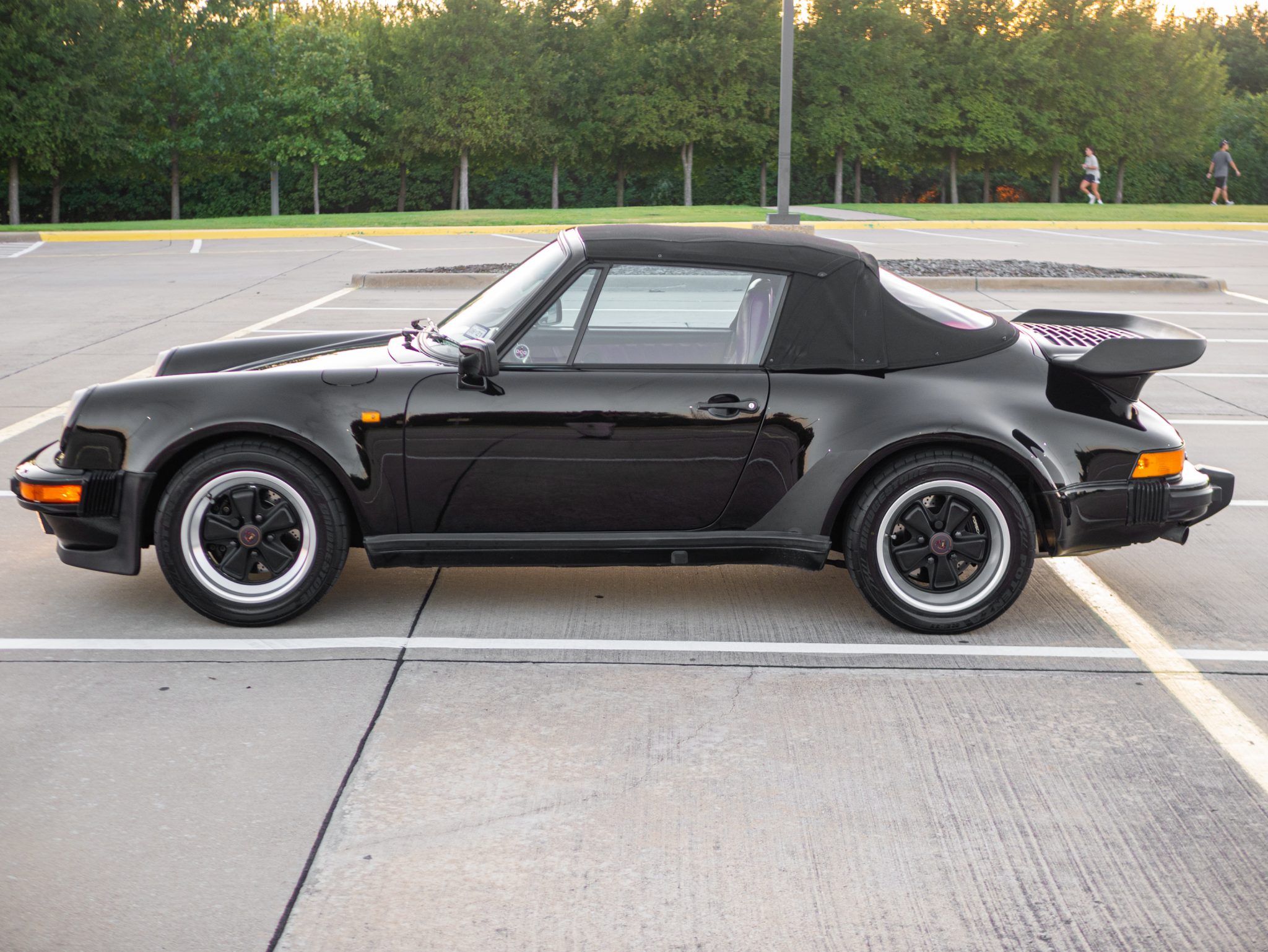 Factory 16″ Fuchs wheels wear 205/55 front and 245/50 rear Bridgestone Potenza RE11 tires, and each corner is highlighted in the gallery. The M491 option also featured suspension and brake components shared with the Turbo, and the shocks were replaced by RAC Performance of Carrollton, Texas in January 2020.