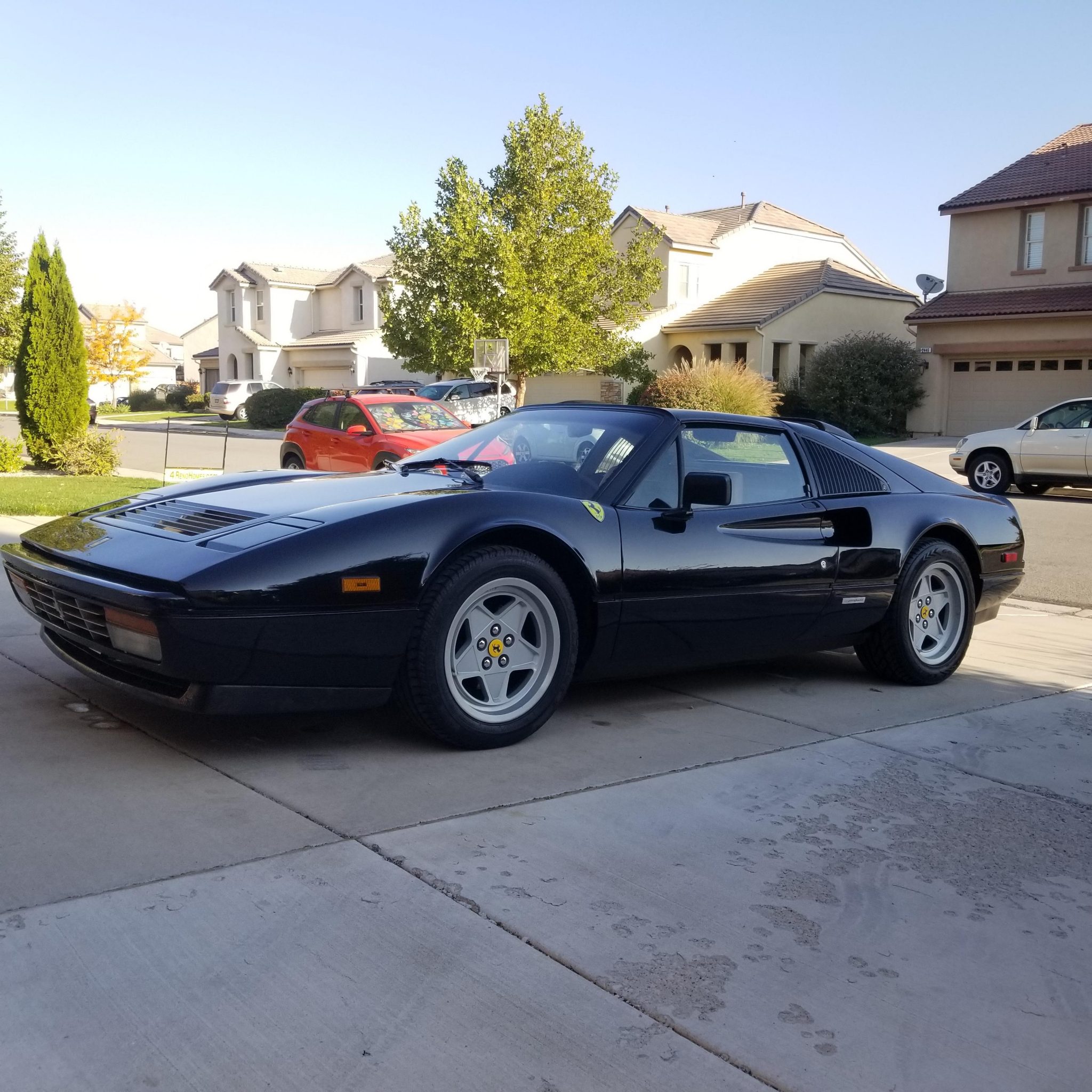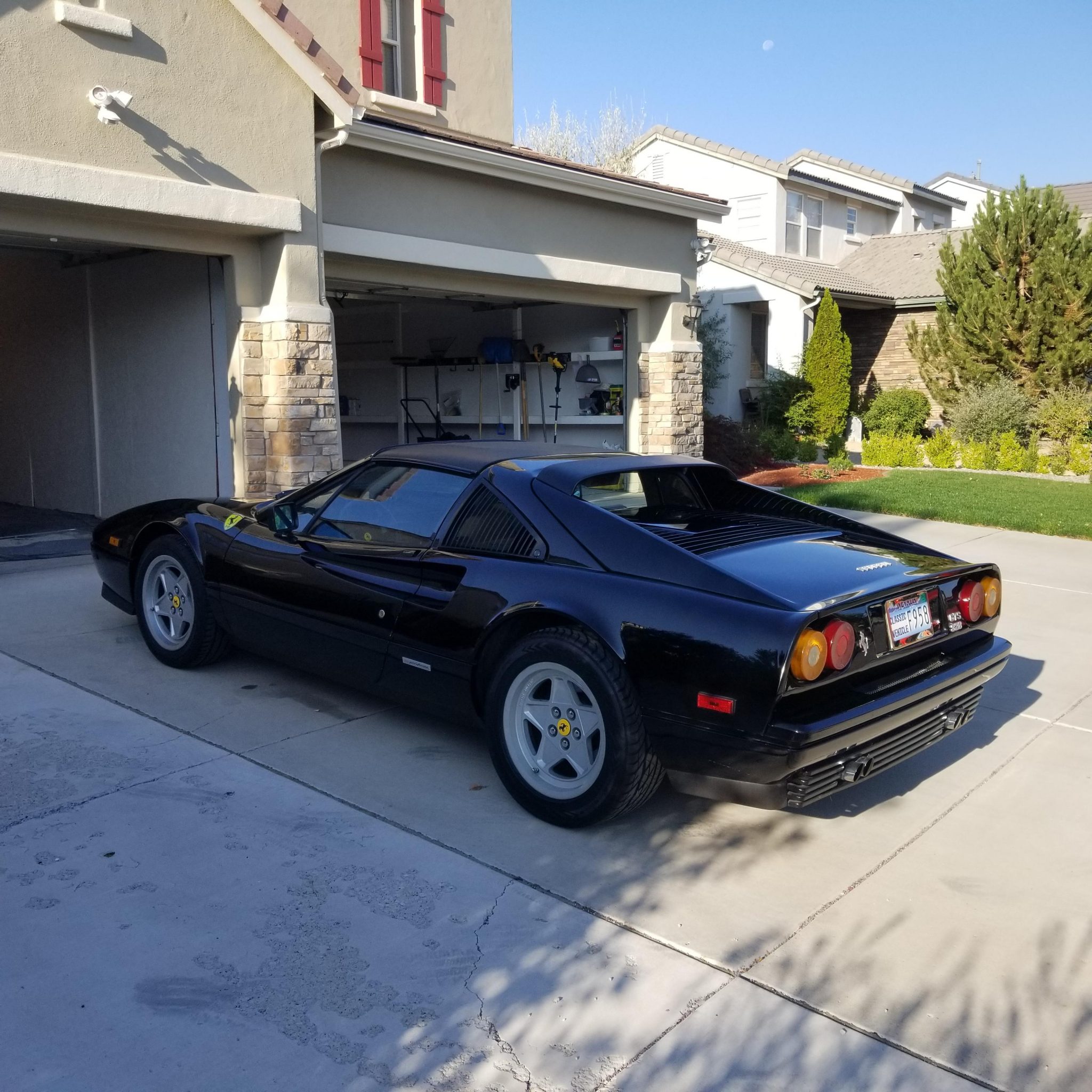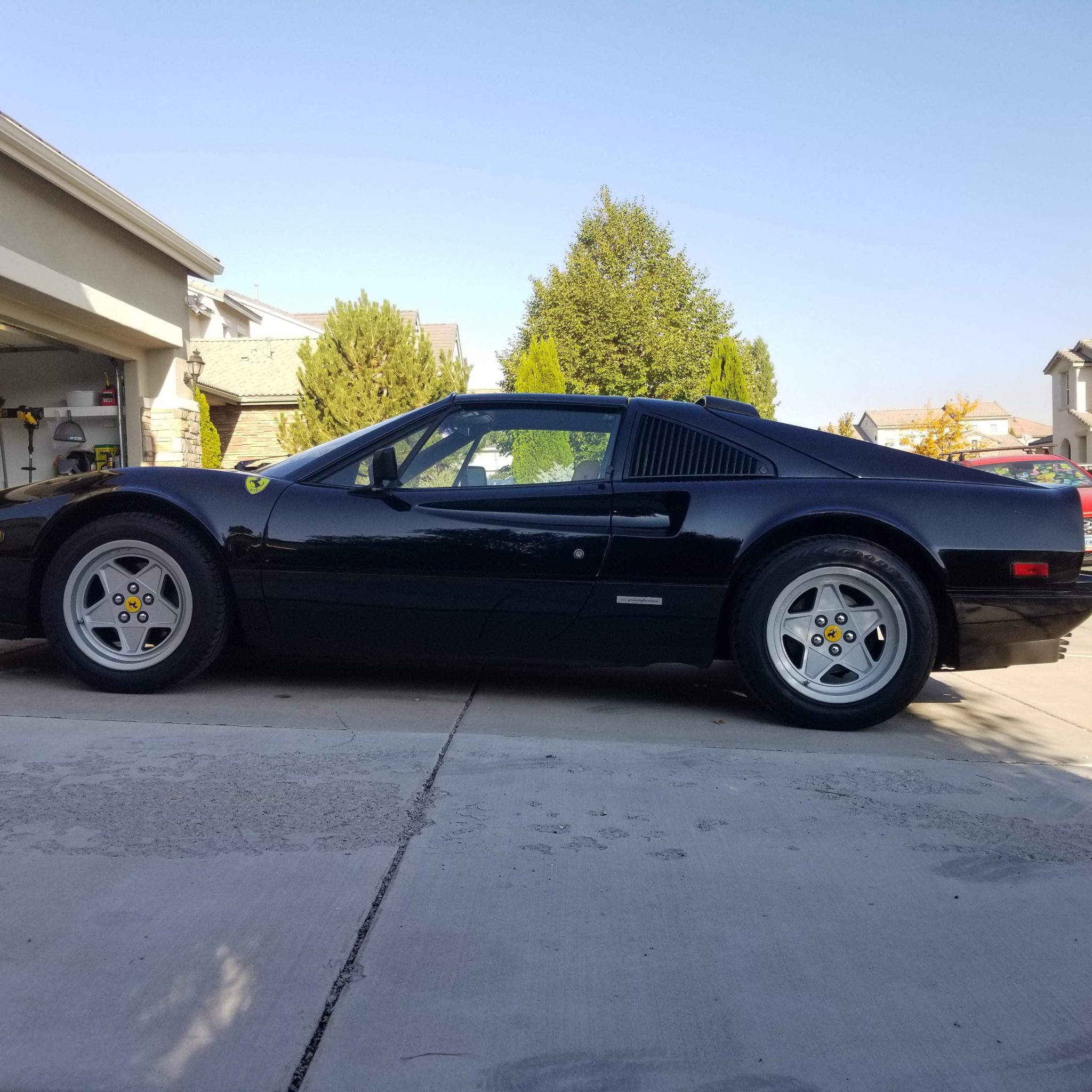 Factory 16″ wheels feature yellow prancing-horse center caps and wear Goodyear Eagle GT tires. Braking is from four-wheel discs, and service in 2019 included rebuilding the front calipers and replacing the master cylinder.
