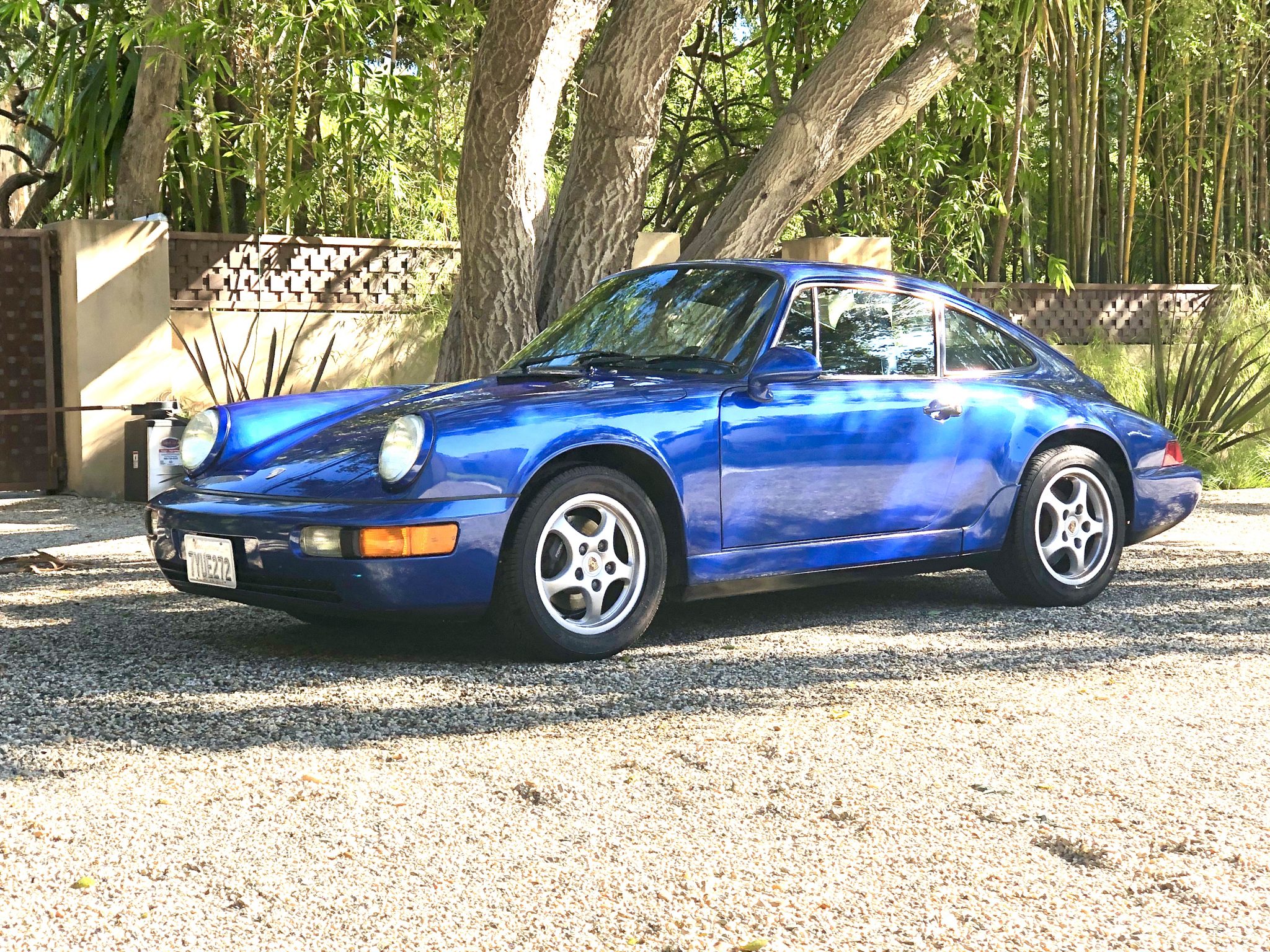Factory 16″ alloy wheels wear colored Porsche crests and are wrapped in Bridgestone Potenza RE960 A/S tires measuring 205/55 up front and 225/50 out back. Braking is handled by four-wheel ventilated discs paired with black-finished calipers with white Porsche script, and the seller states that a brake fluid flush was recently performed.